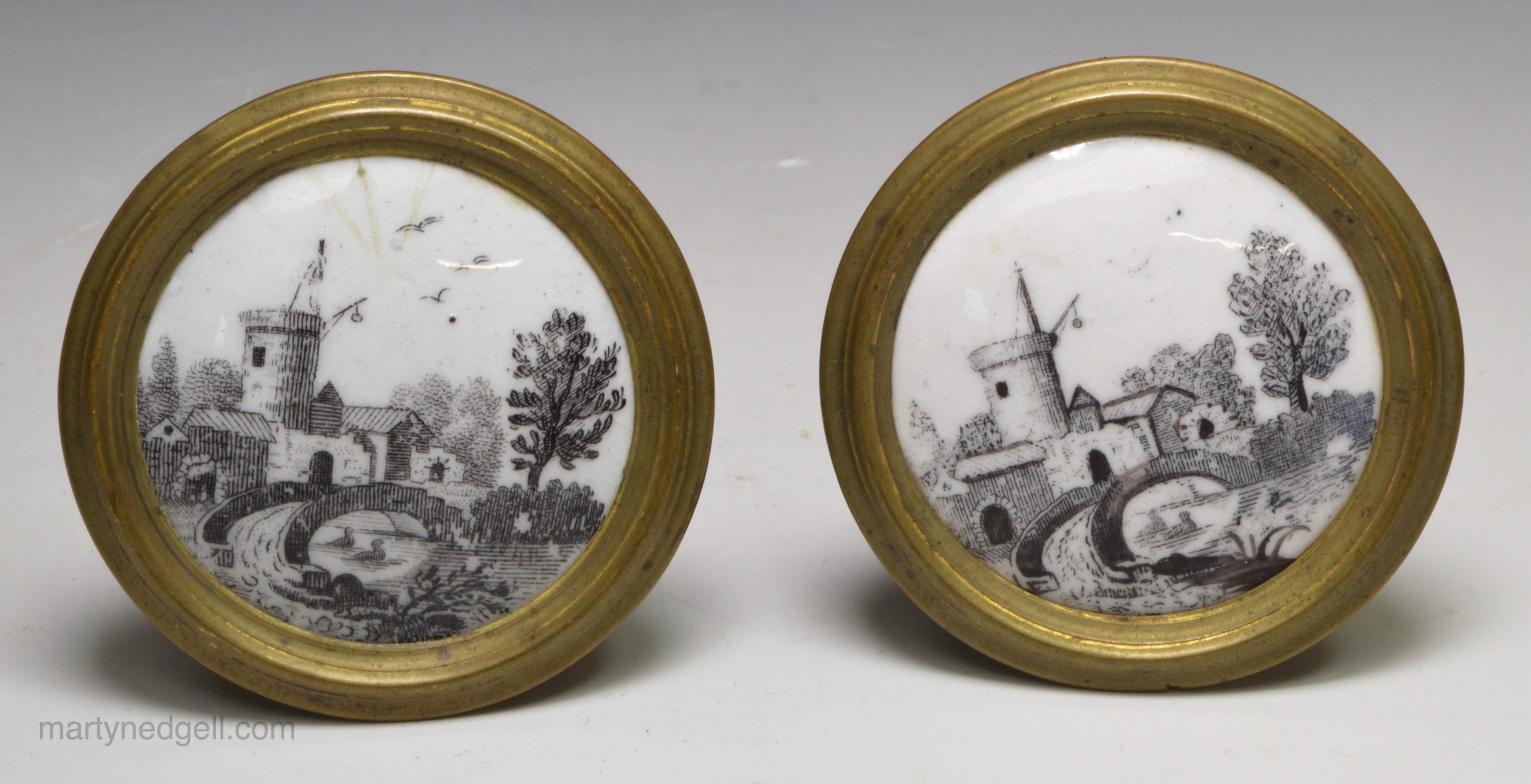 / A pair of Bilston enamel cloak pins, circa 1780