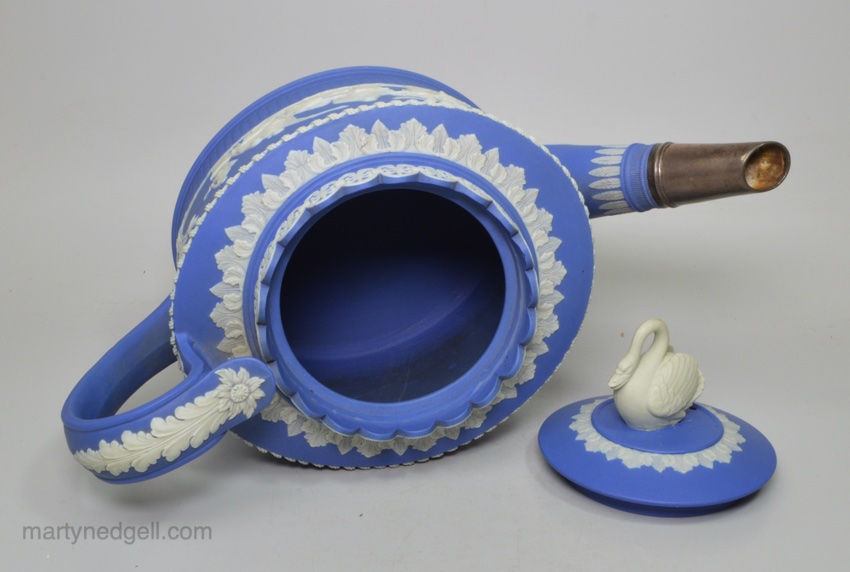 Condition: End of the spout damaged and repaired with a silver ferrel and the swan was broken from the lid and restored