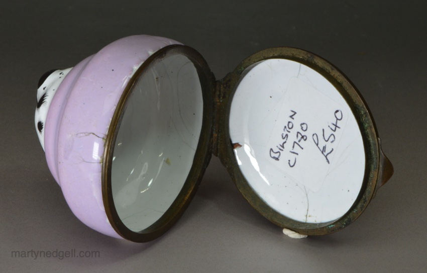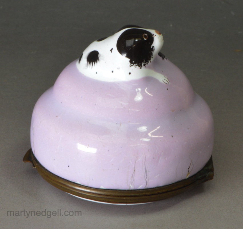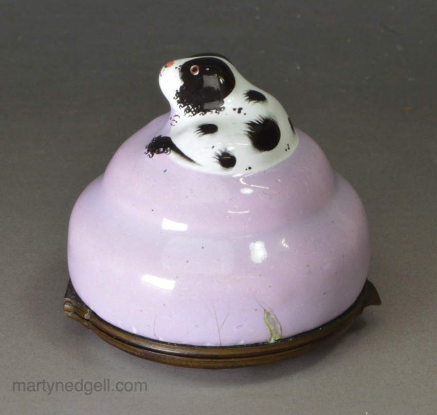 Bilston enamel bonbonniére moulded as a spaniel, circa 1780