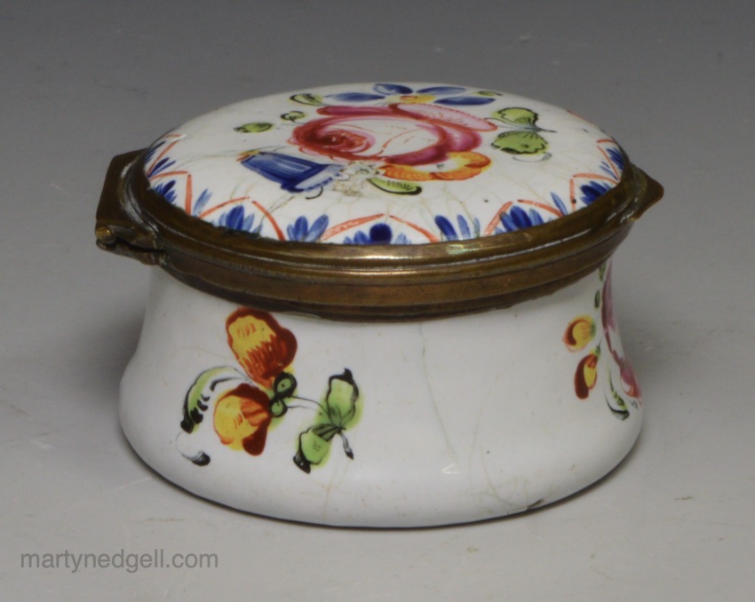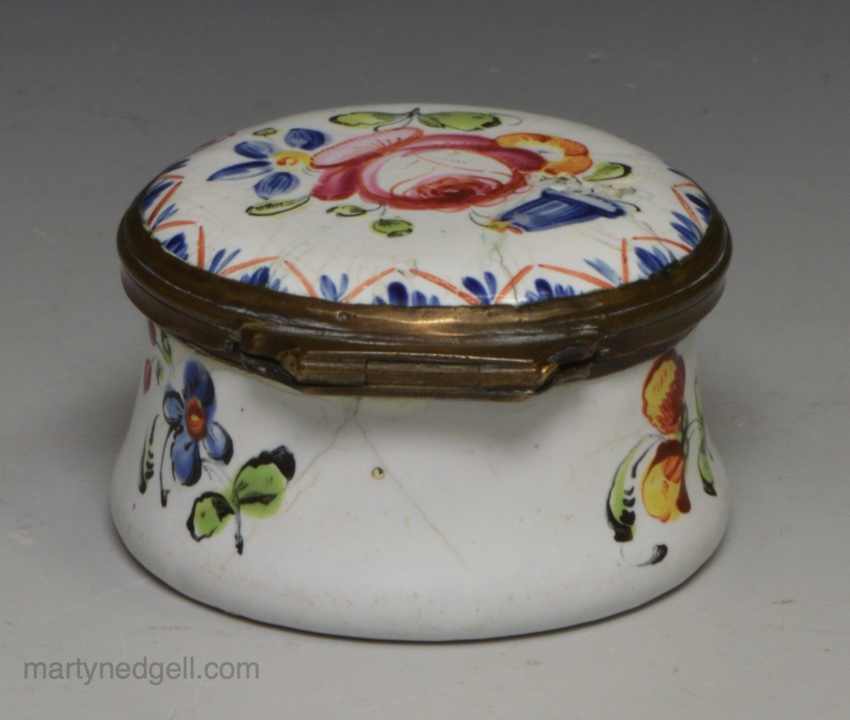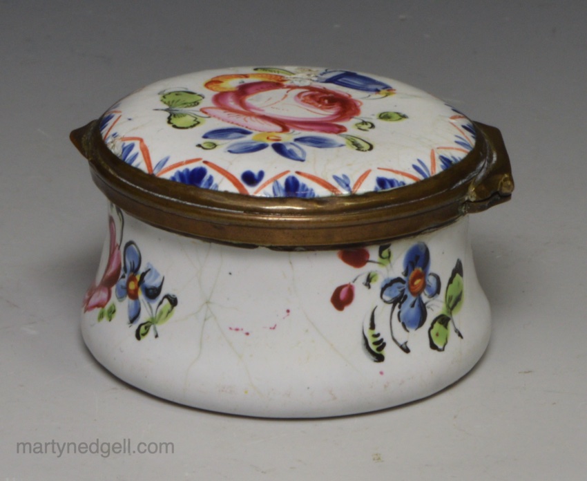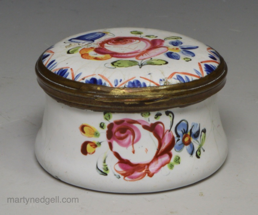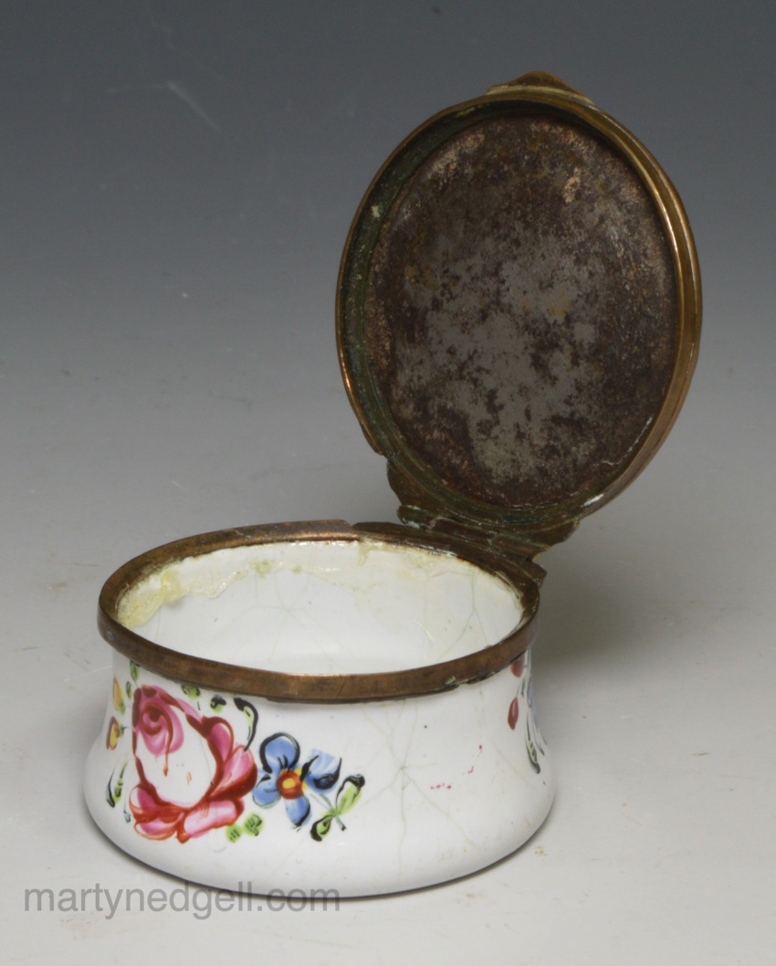 / Bilston enamel patch box decorated in a floral design, circa 1780