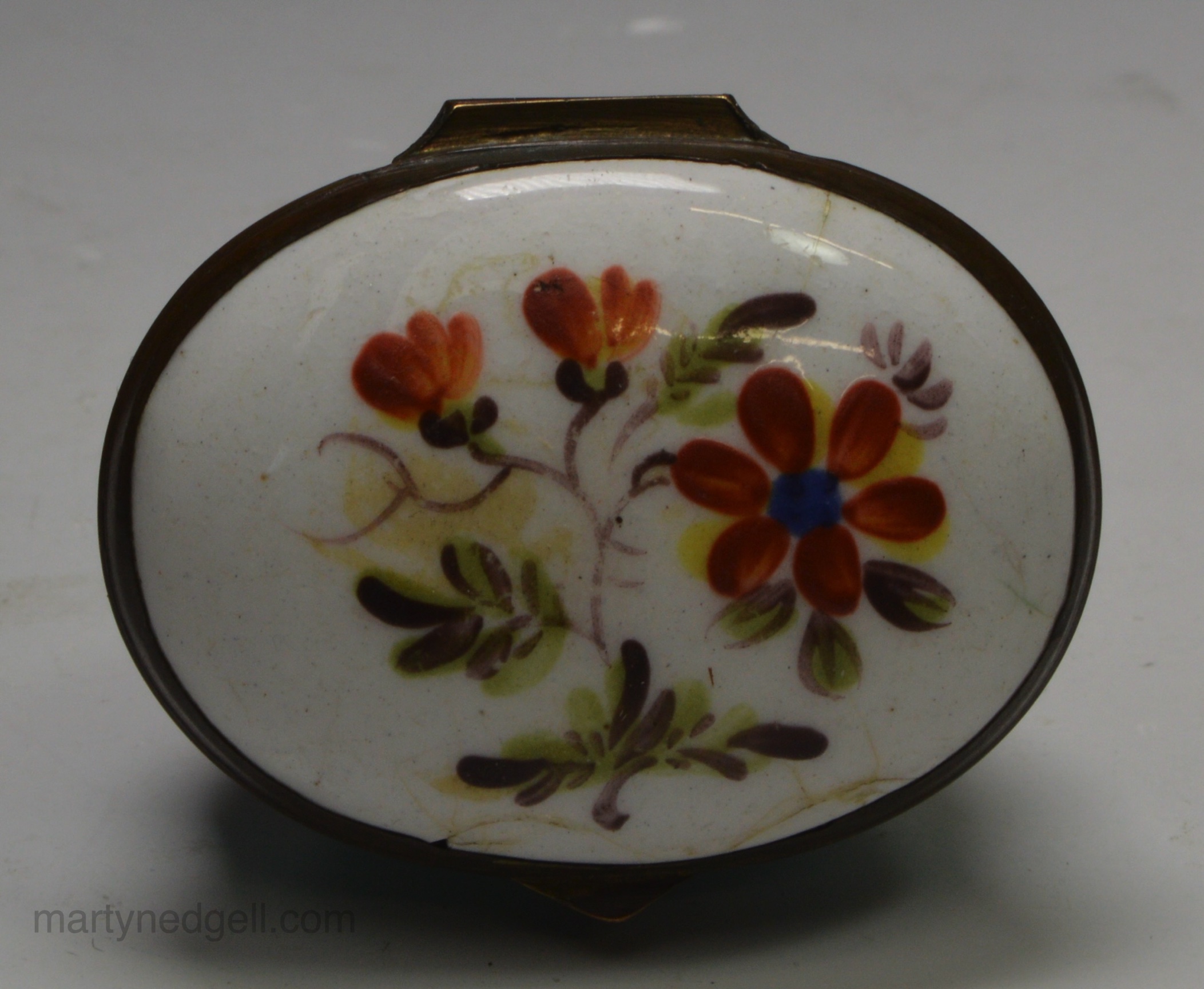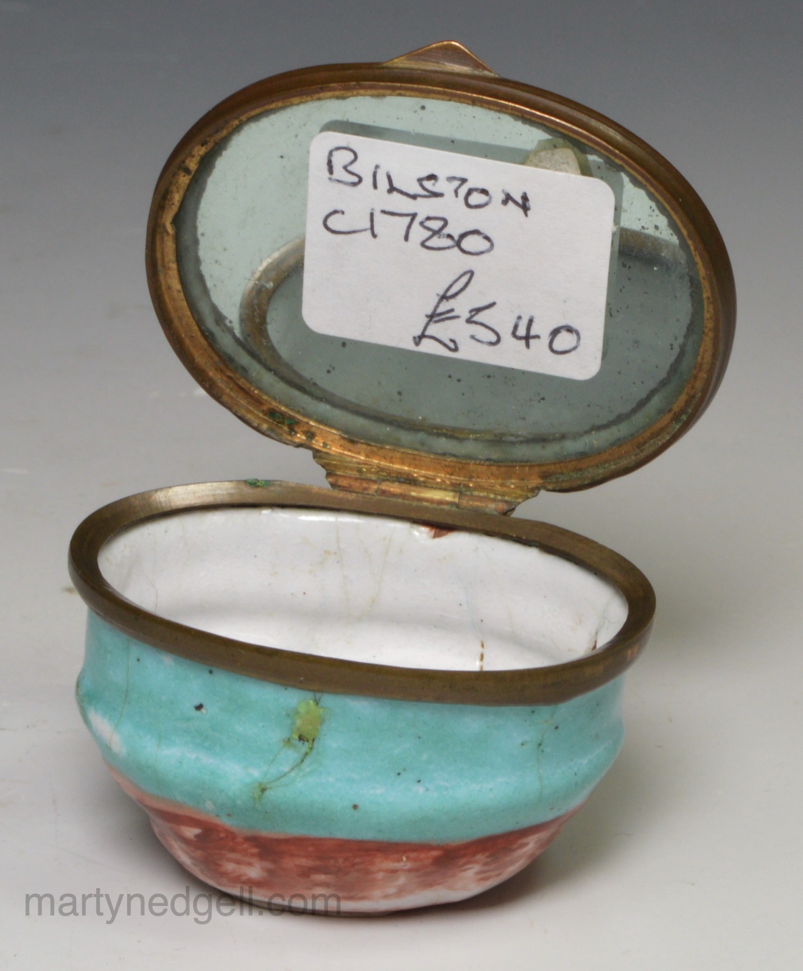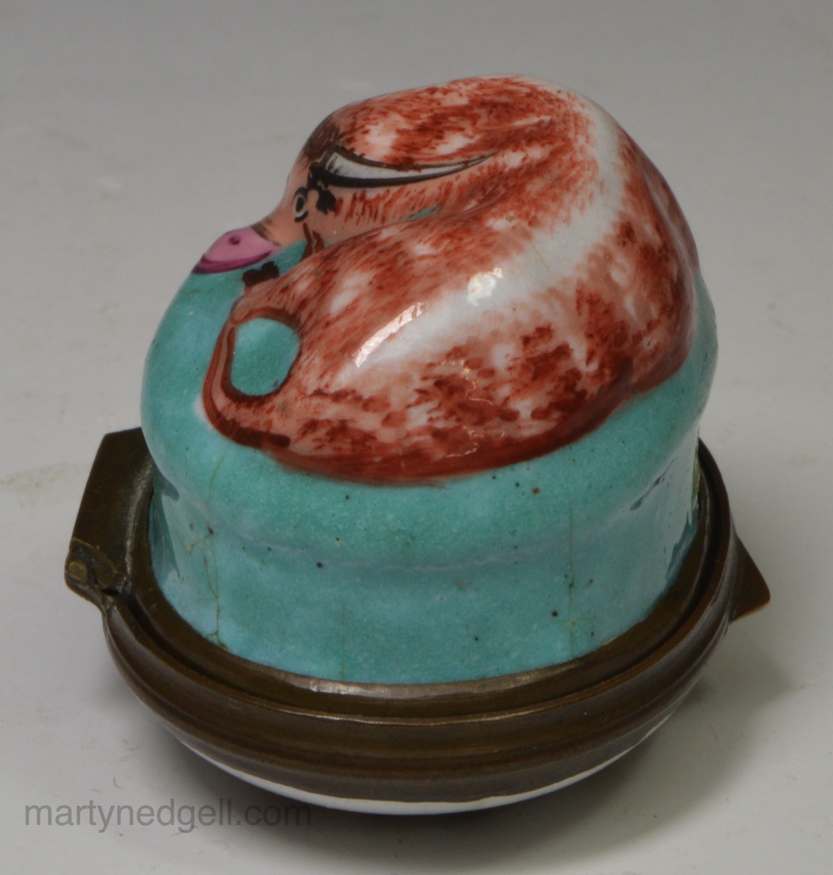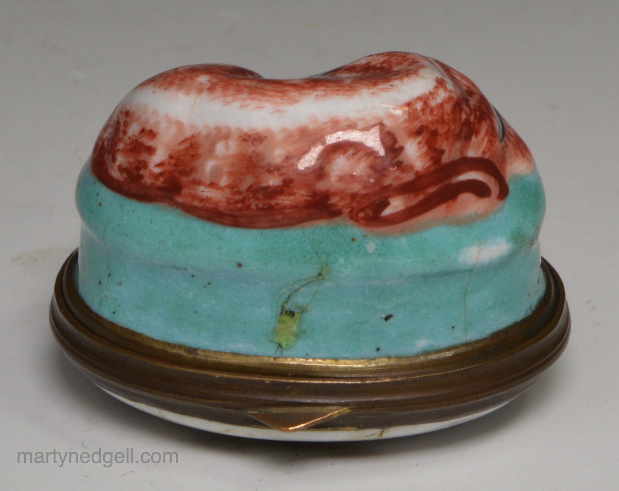 / Bilston enamel patch box moulded with a bull, circa 1780