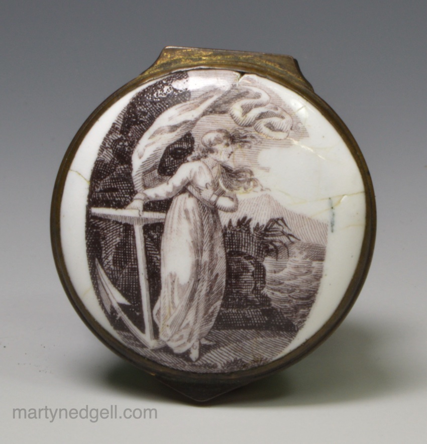 / Bilston enamel patch box printed with the allegorical figure of Hope, circa 1780