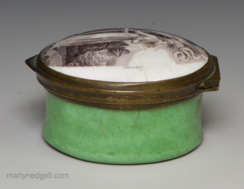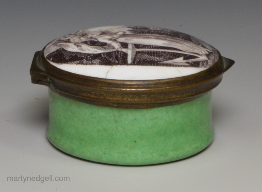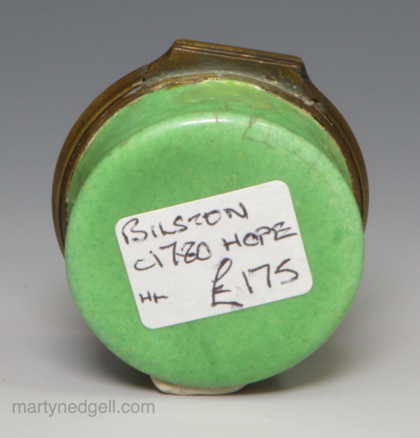 Bilston enamel patch box printed with the allegorical figure of Hope, circa 1780