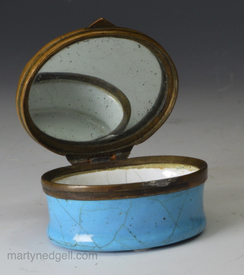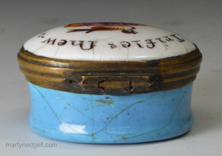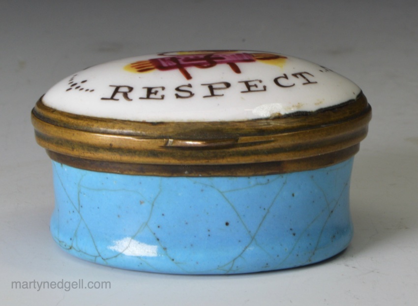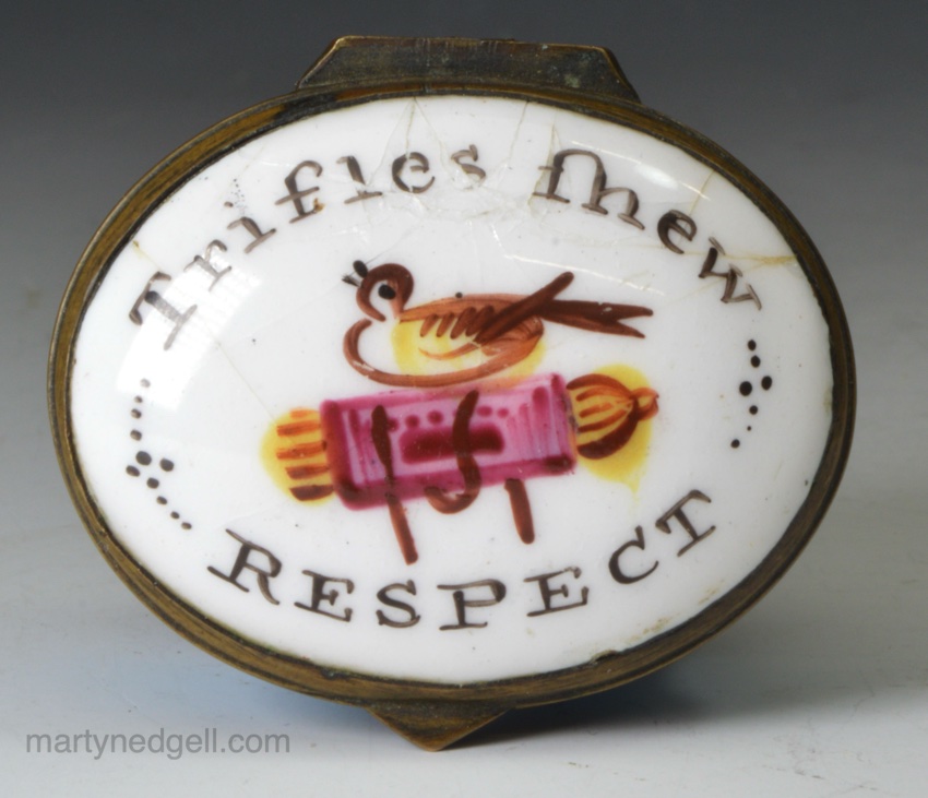 Bilston enamel patch box ‘Trifle shew RESPECT’, circa 1780