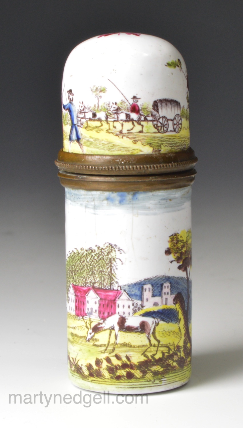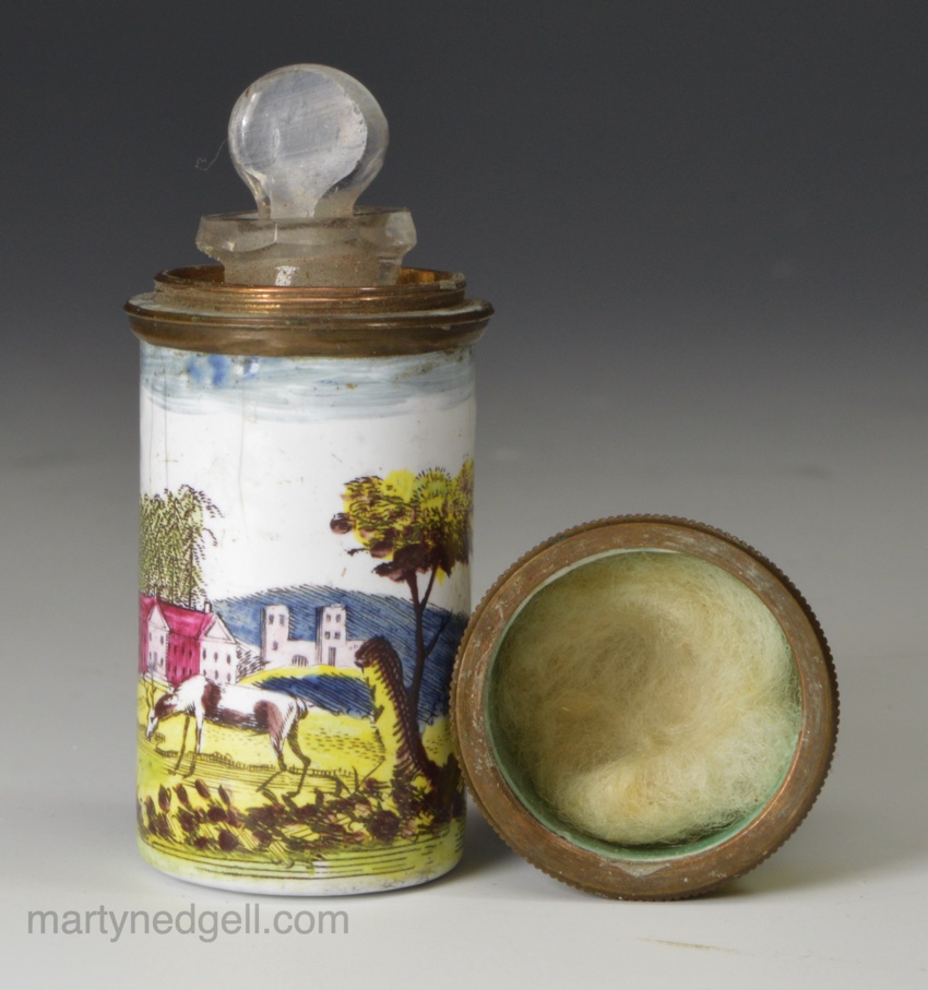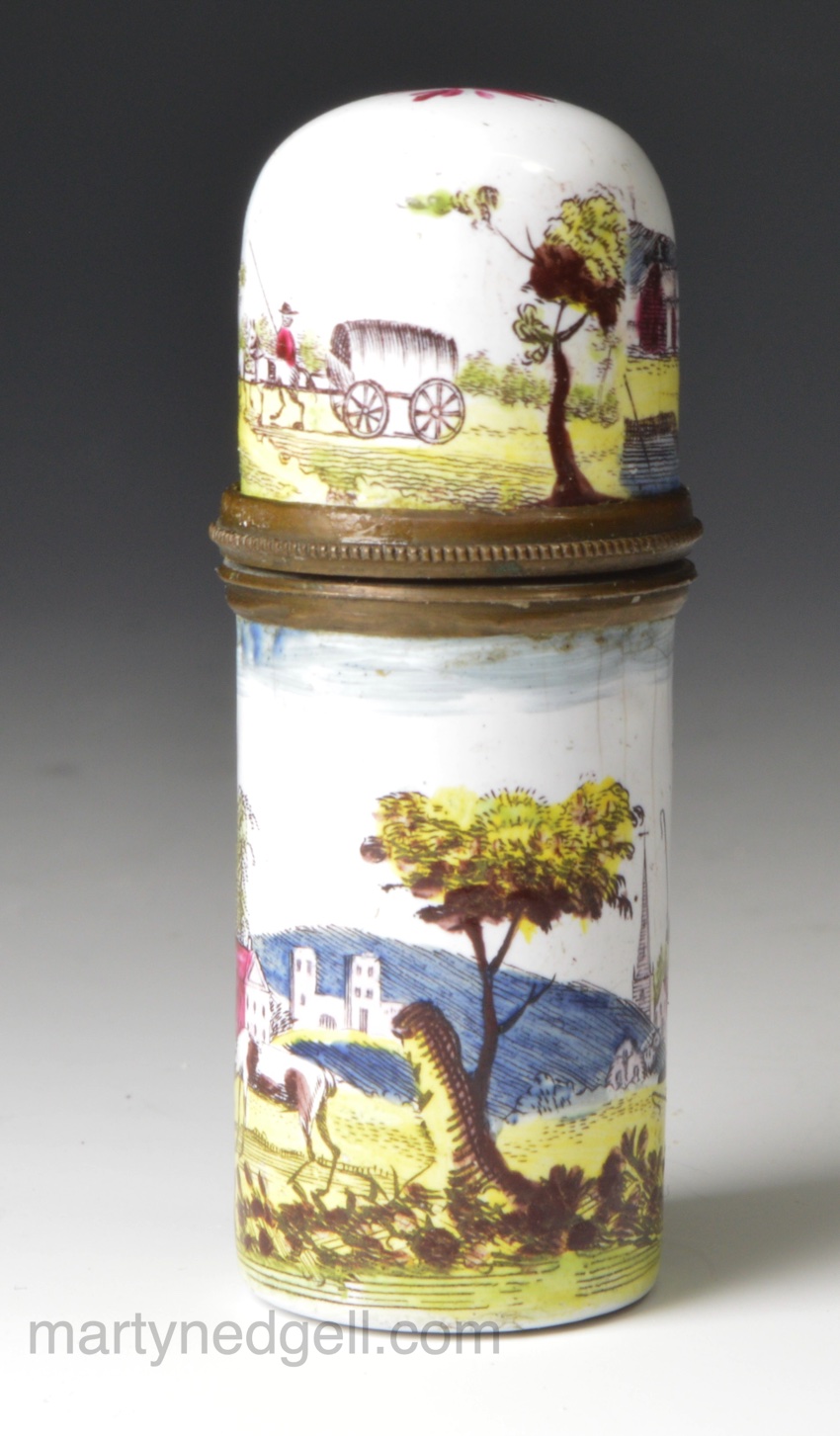 / Bilston enamel scent bottle printed with rural scenes, circa 1770