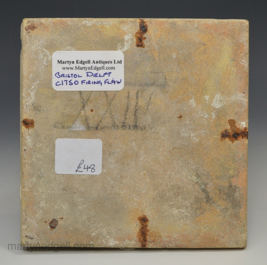 Bristol delft tile decorated with a landscape scene, circa 1750