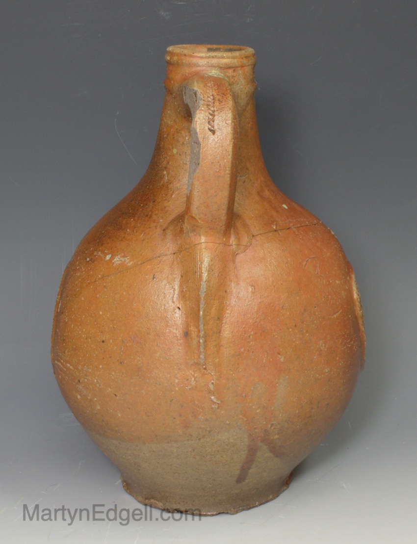 German brown saltglaze stoneware bellarmine jug decorated with a spread eagle, circa 1600