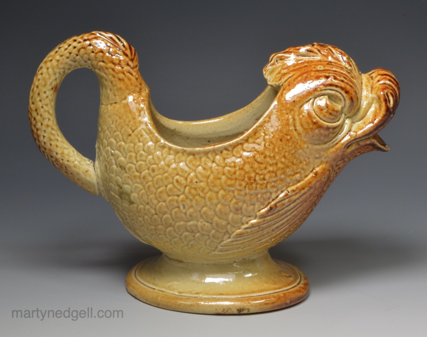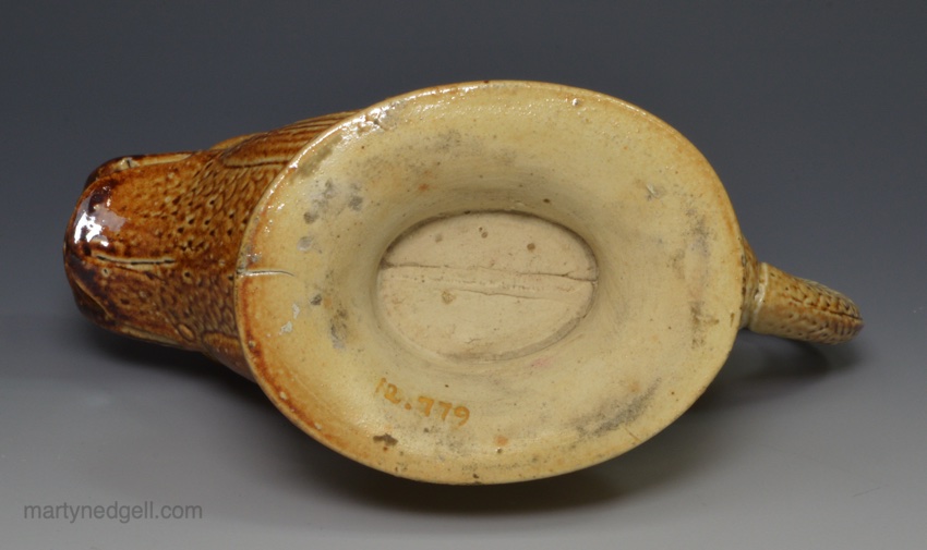 / Brown saltglaze stoneware sauce boat, circa 1840 probably Brampton Derbyshire