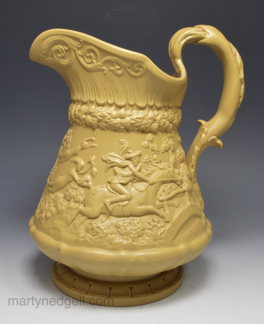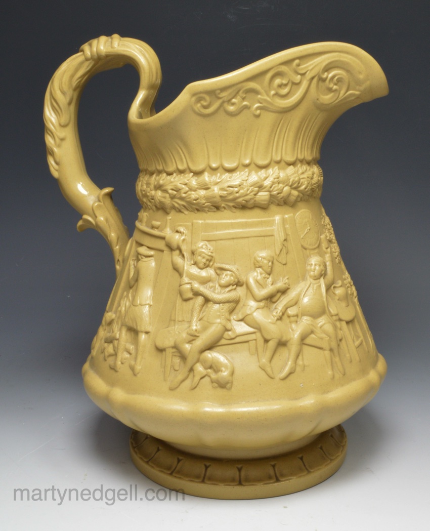 Buff stoneware relief moulded jug Tam O’Shanter, circa 1840 William Ridgway Staffordshire