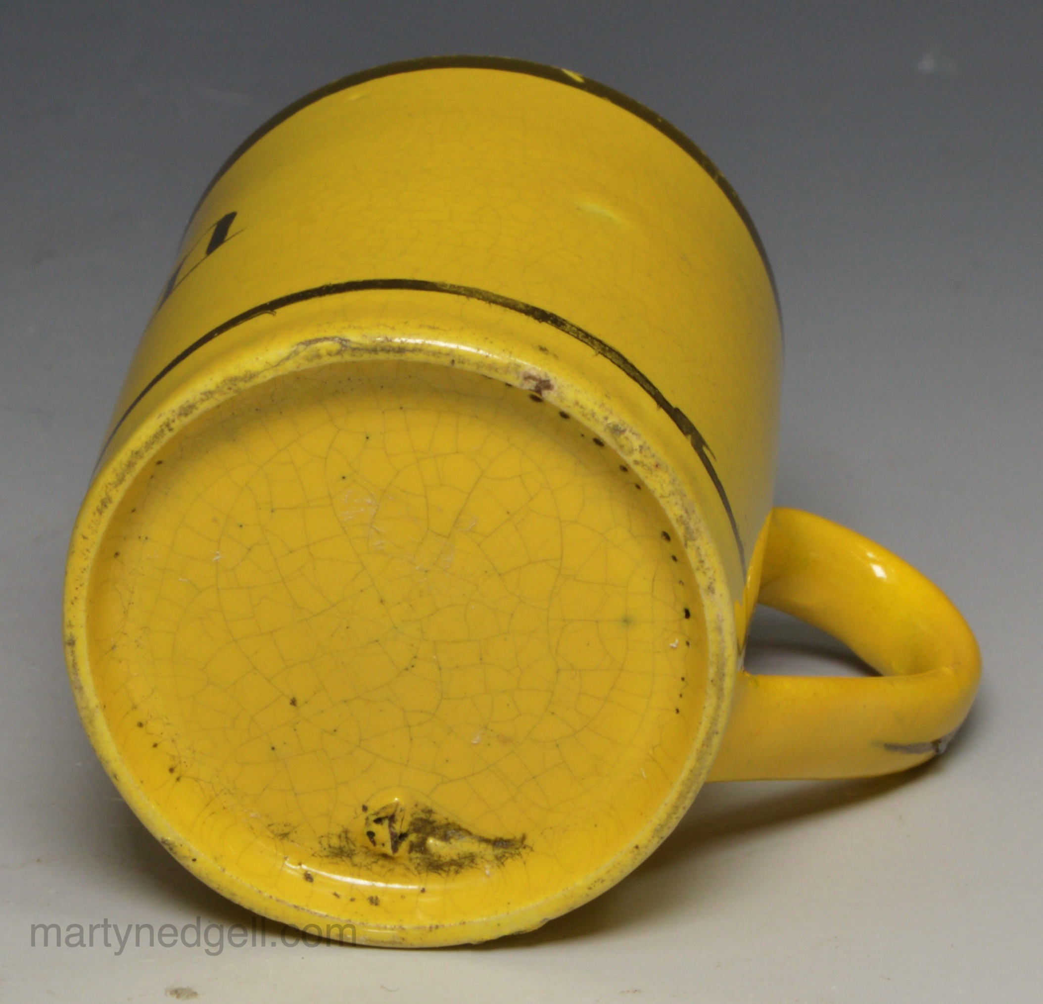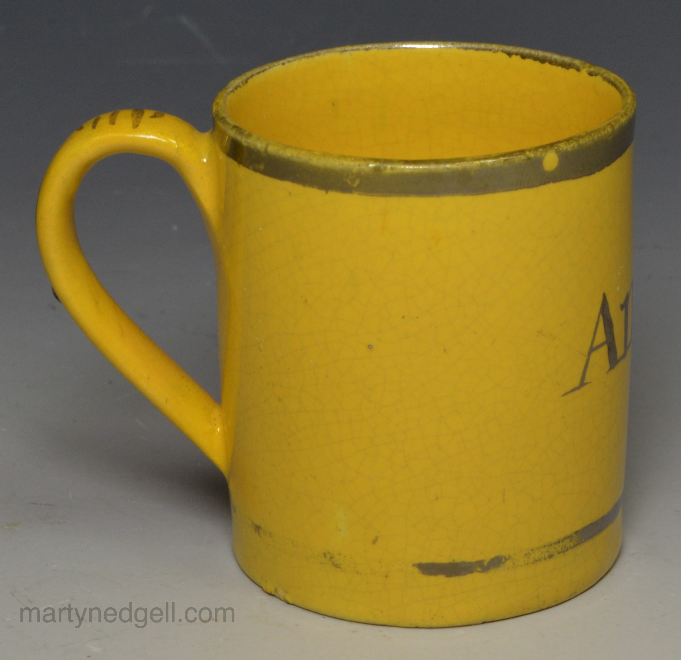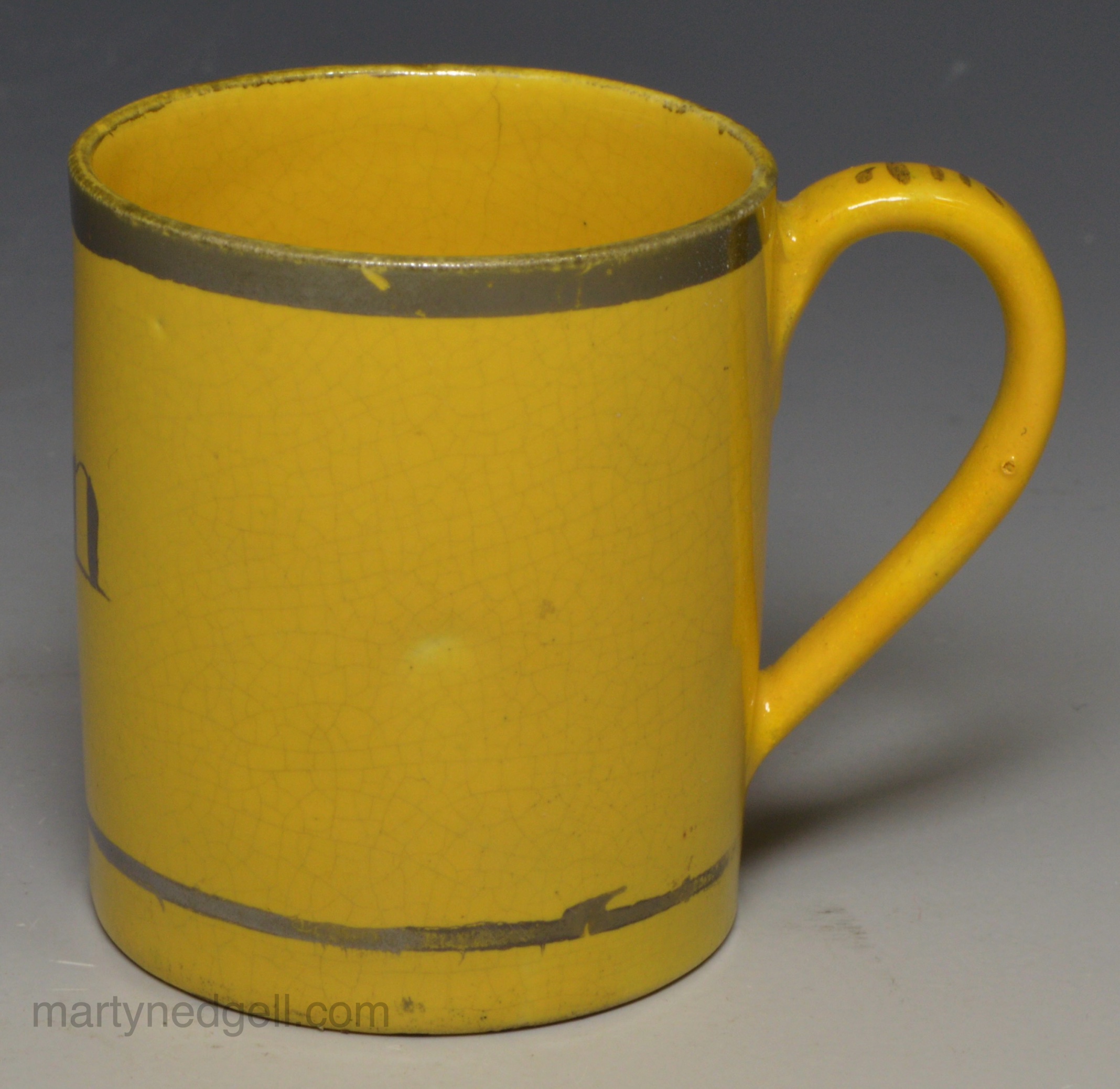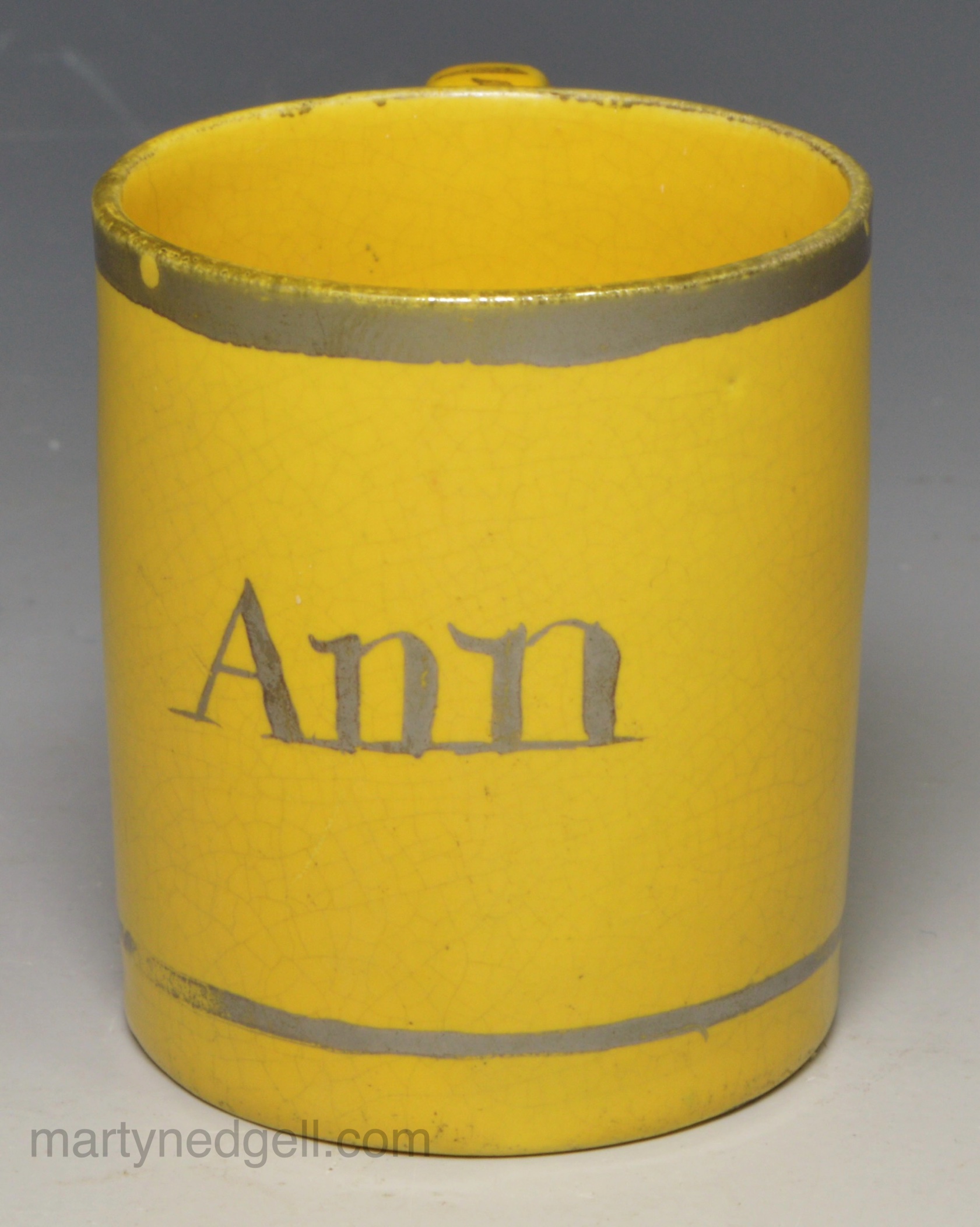 Canary pottery child’s mug ‘ANN’, circa 1820