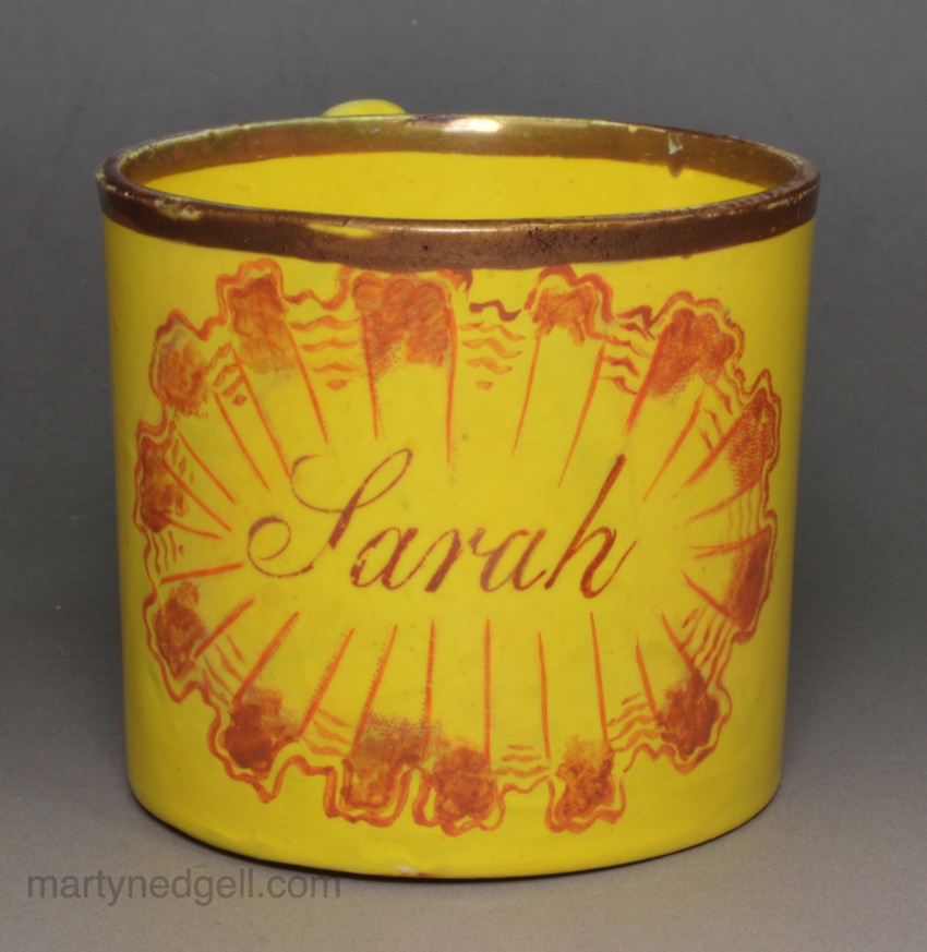 / Canary yellow child’s mug ‘Sarah’, circa 1820