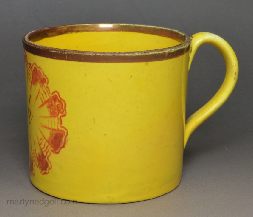 Canary yellow child’s mug ‘Sarah’, circa 1820