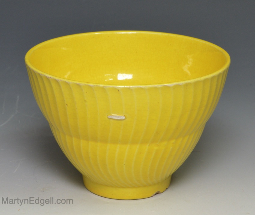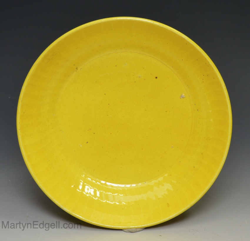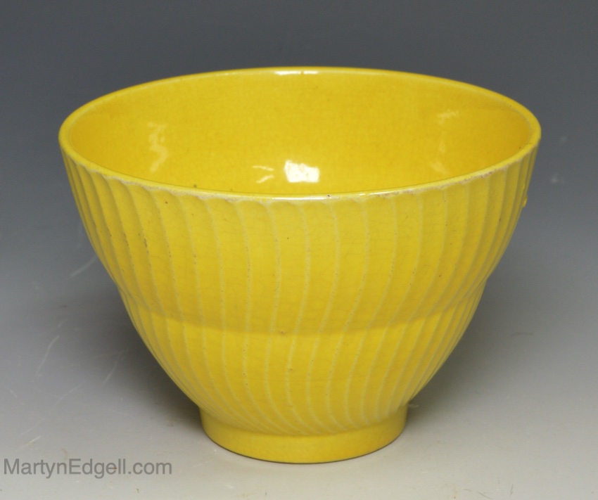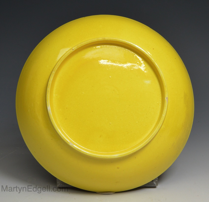 Canary yellow pottery teabowl and saucer, circa 1830