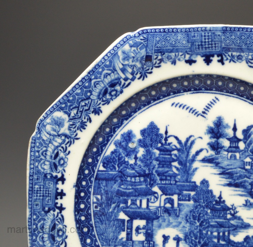 Caughley porcelain plate printed with a blue Chinese pattern, circa 1790