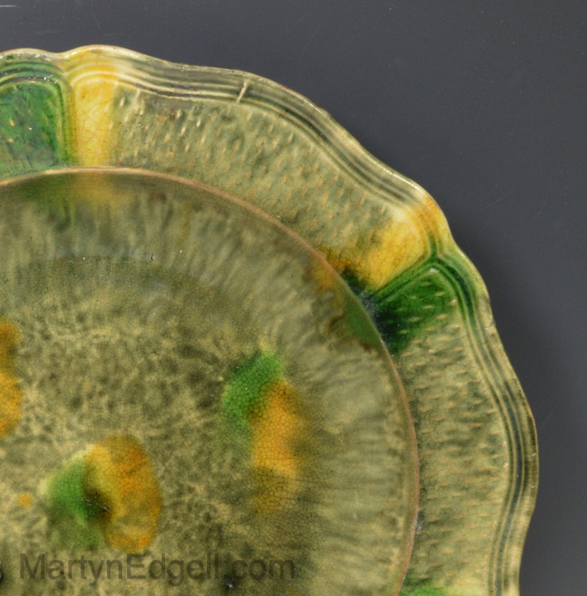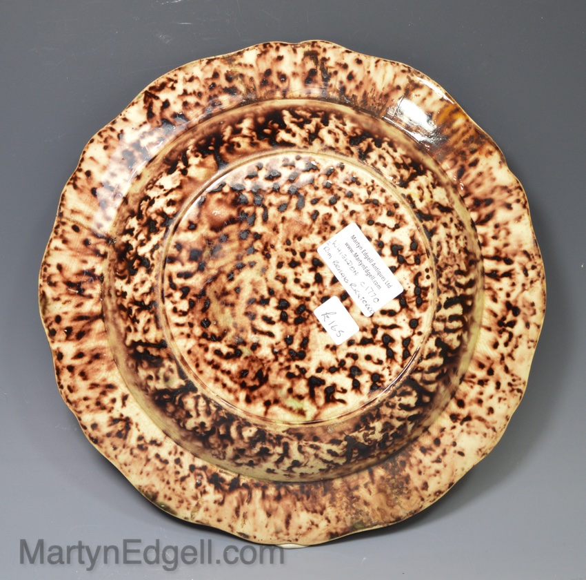 Creamware pottery plate decorated with Whieldon type colours under the glaze, circa 1770