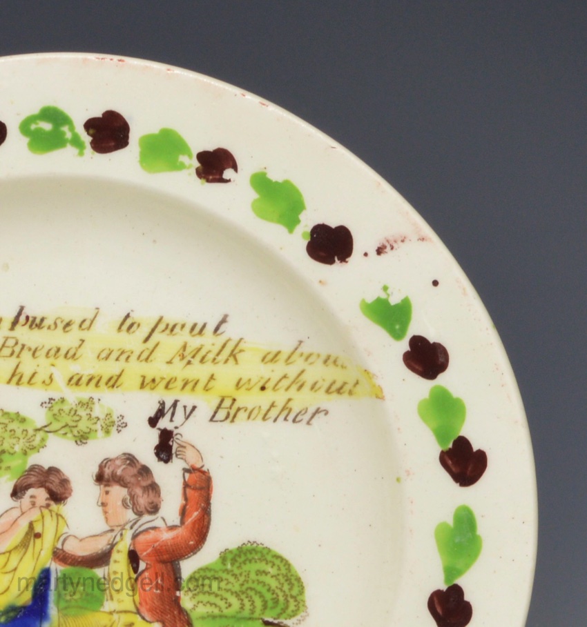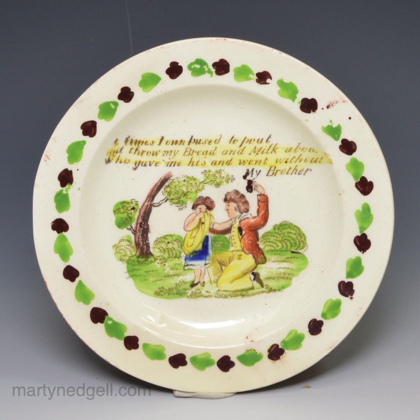 / Creamware pottery child’s plate ‘My Brother’, circa 1830