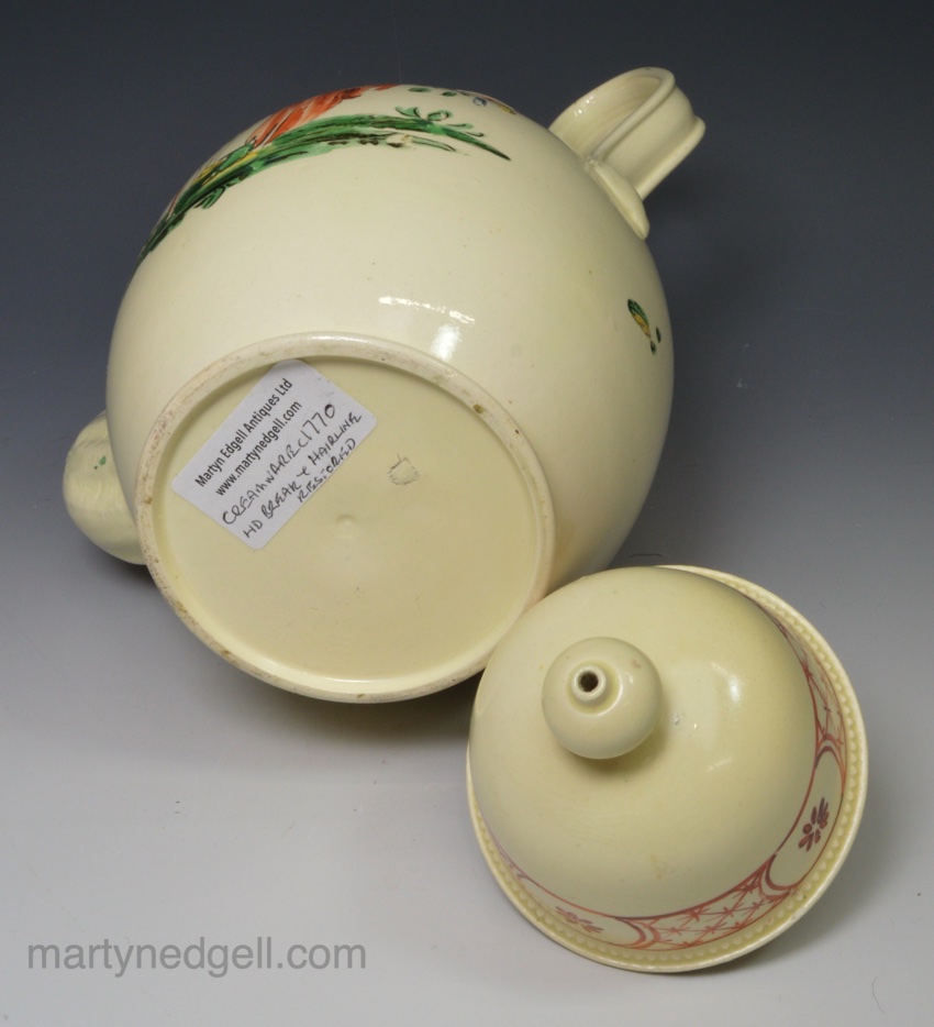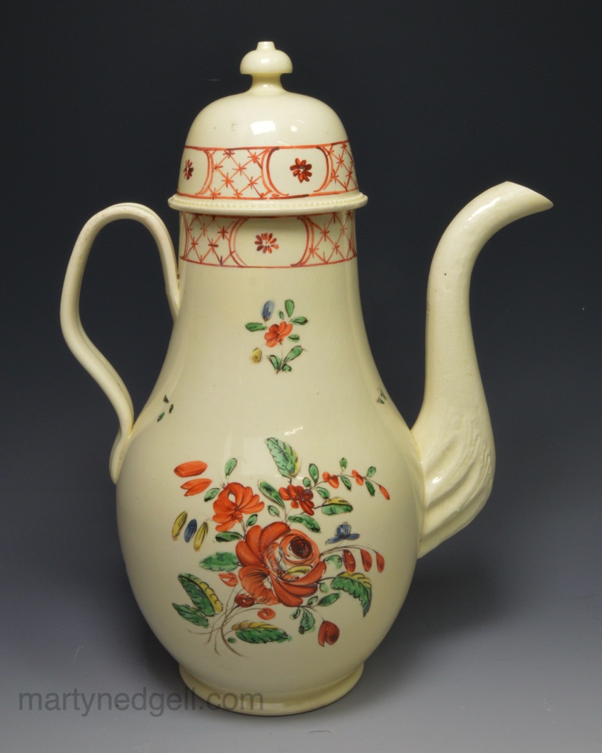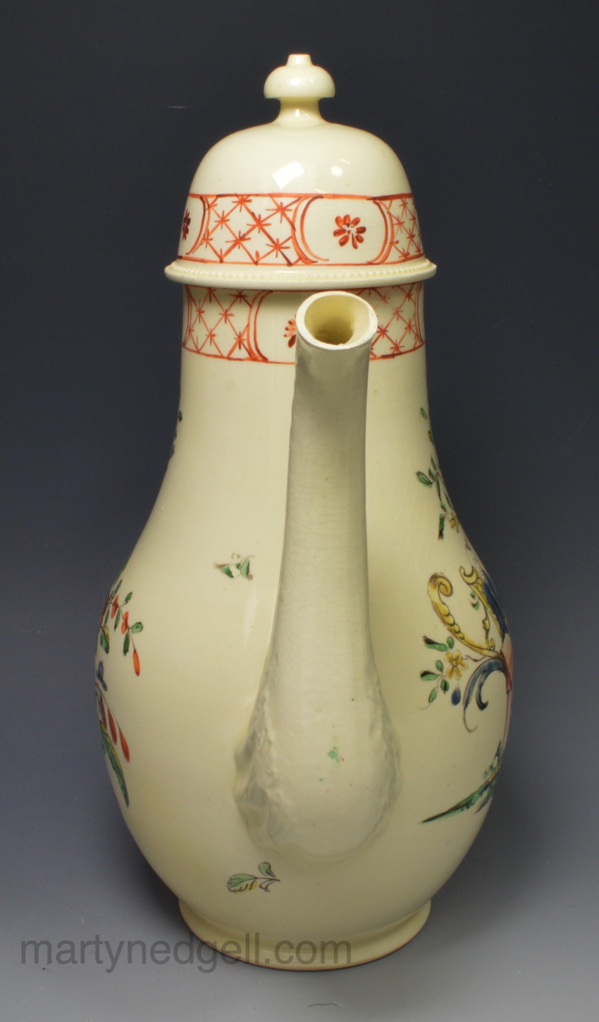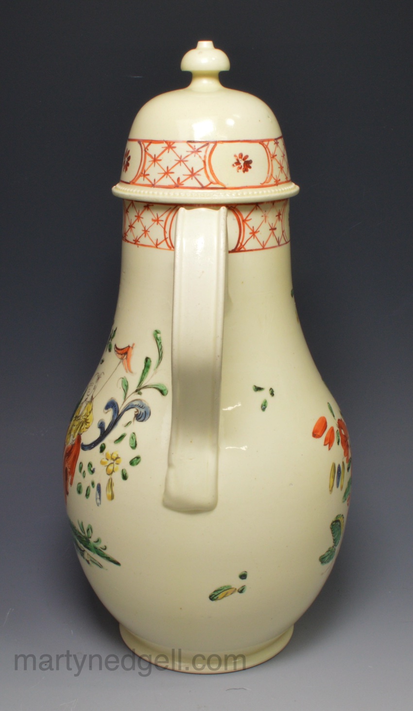 / Creamware pottery coffee pot decorated with a Chinese couple, circa 1770