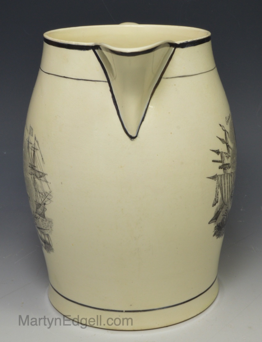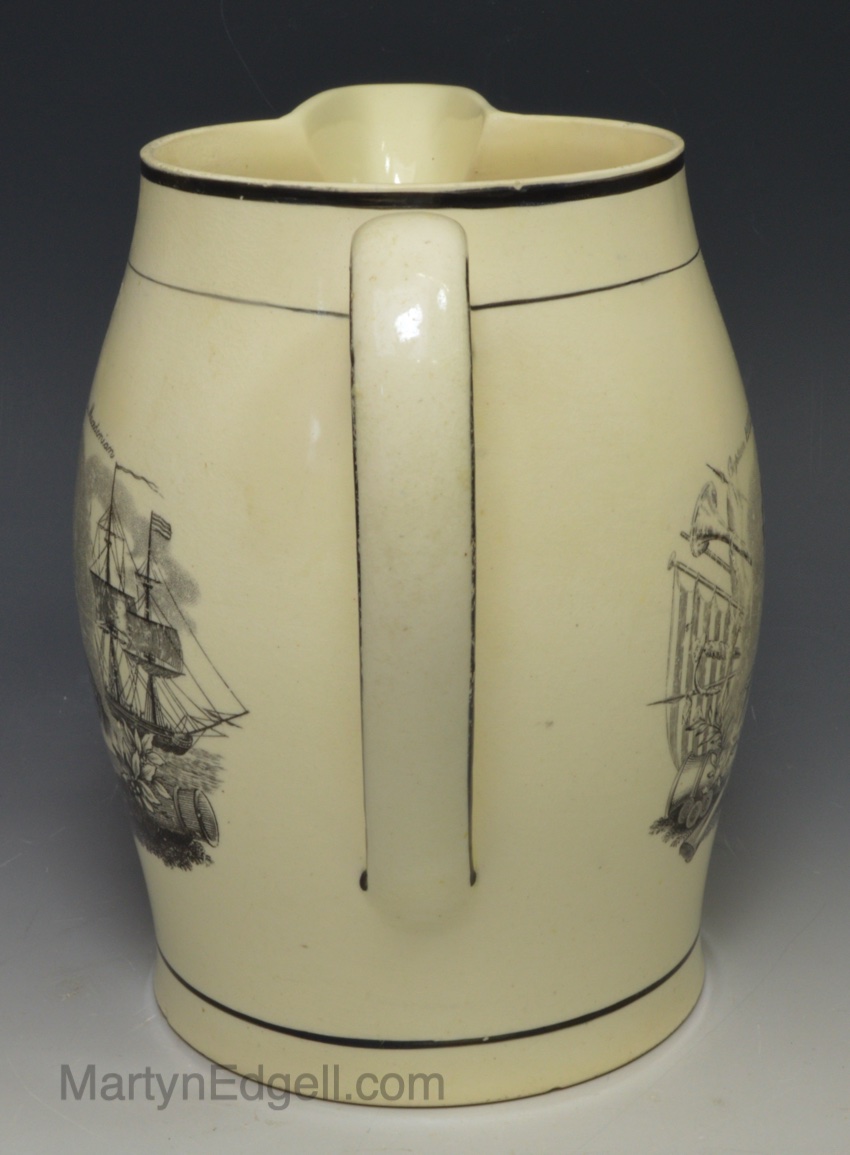 Creamware pottery jug commemorating Captain Jones and Hull, circa 1812