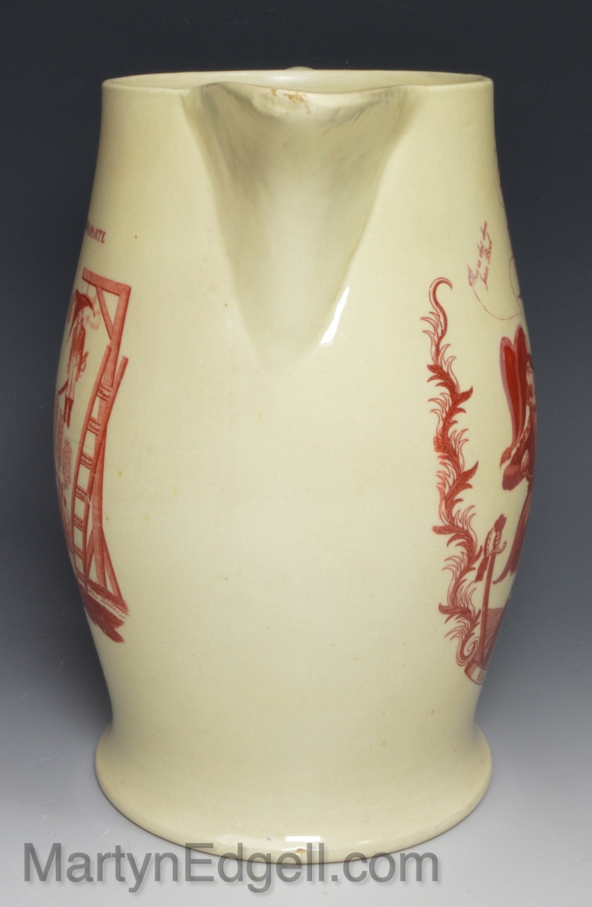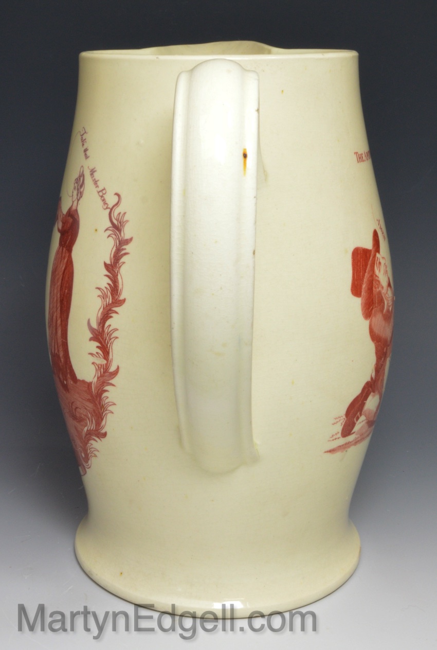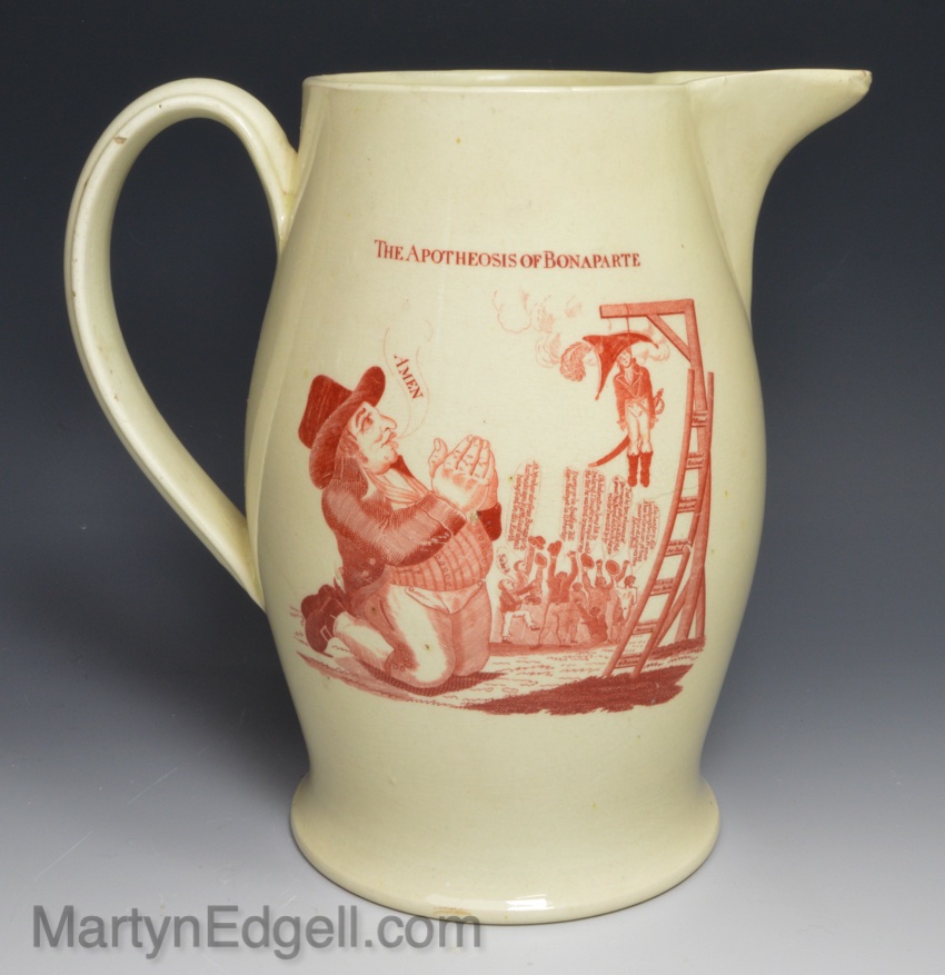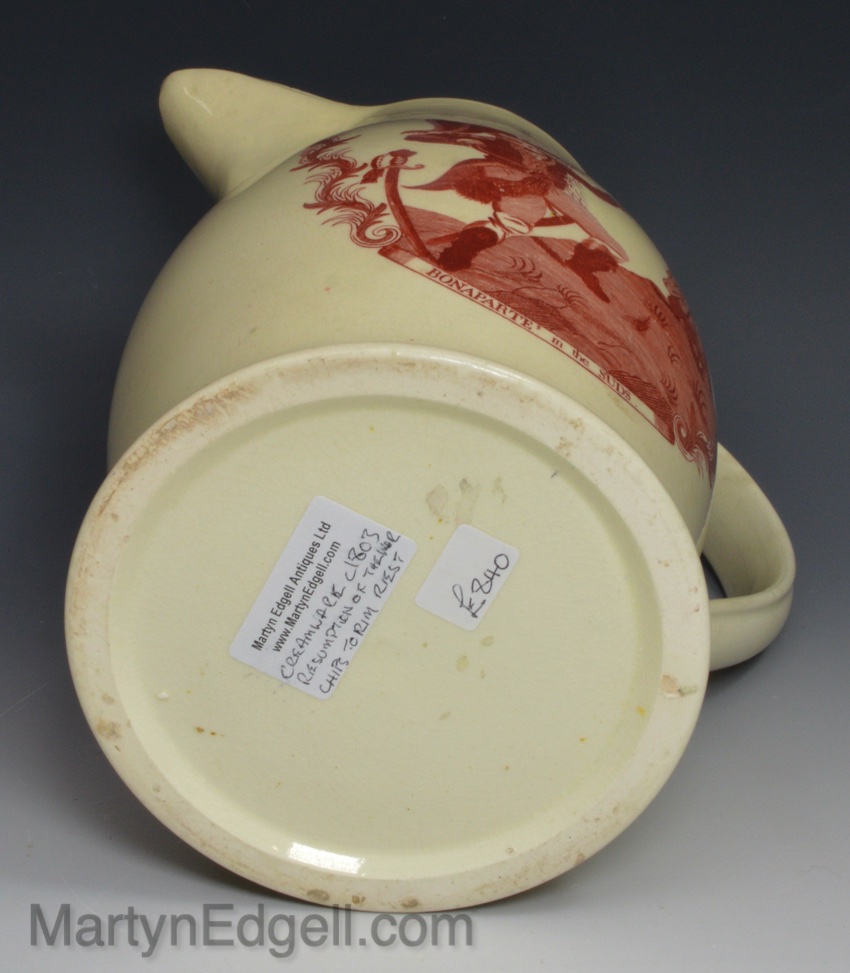 Creamware pottery jug decorated with satirical prints, the resumption of the Napoleonic war, circa 1803