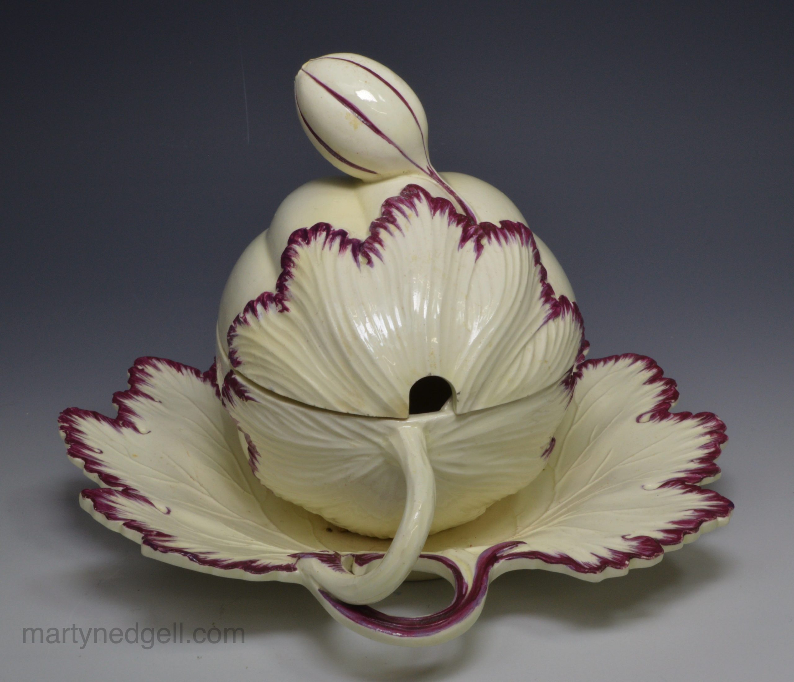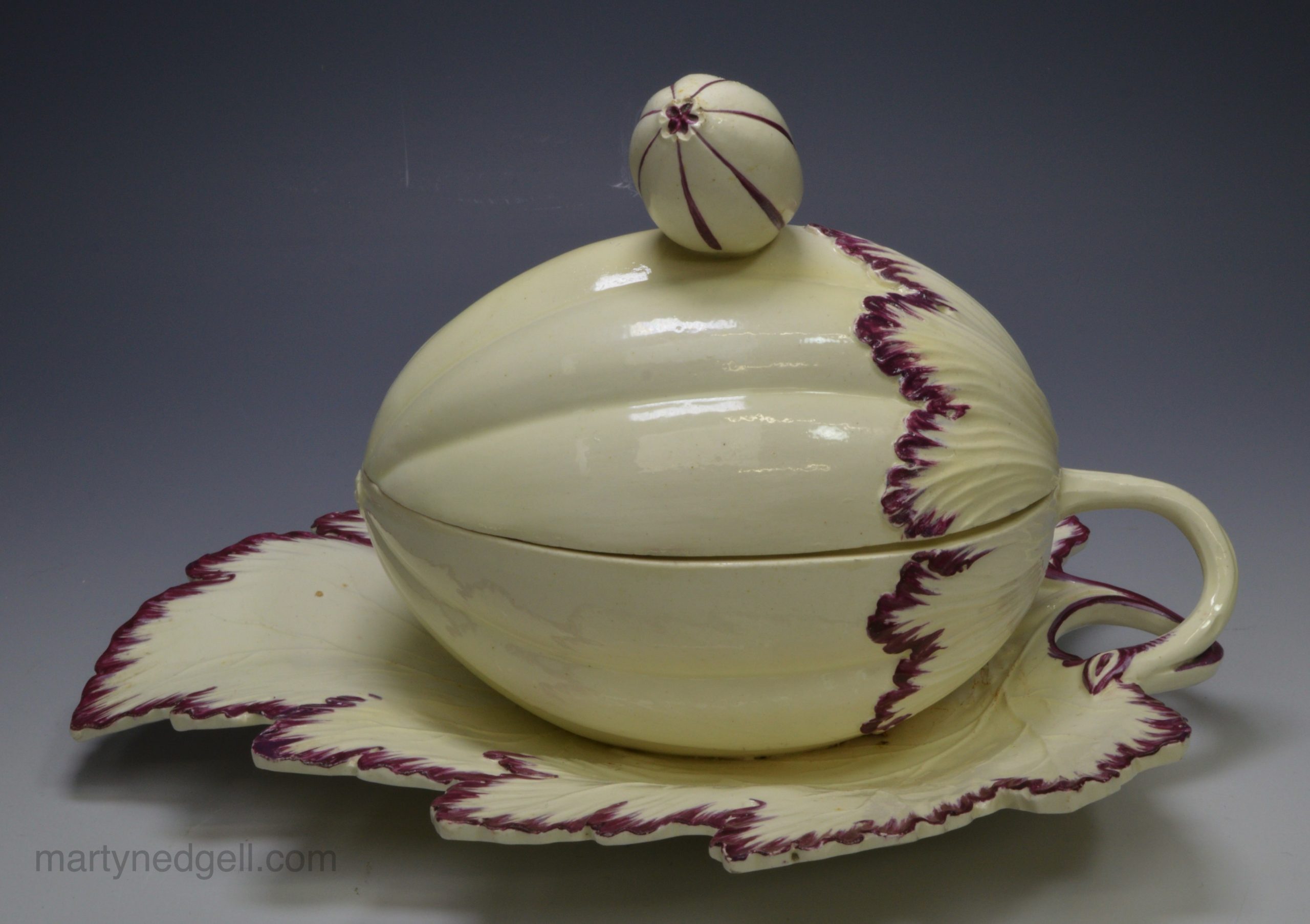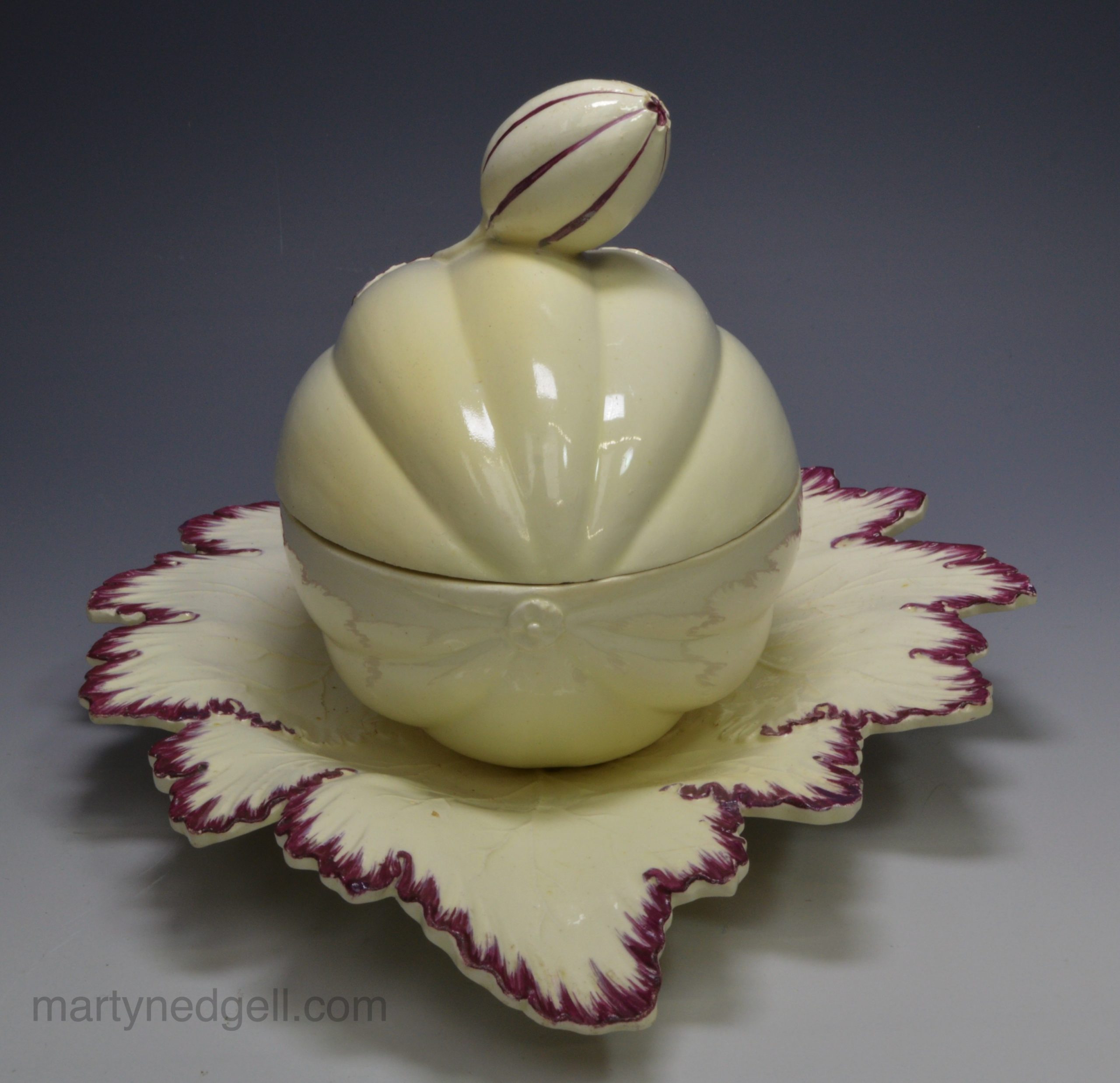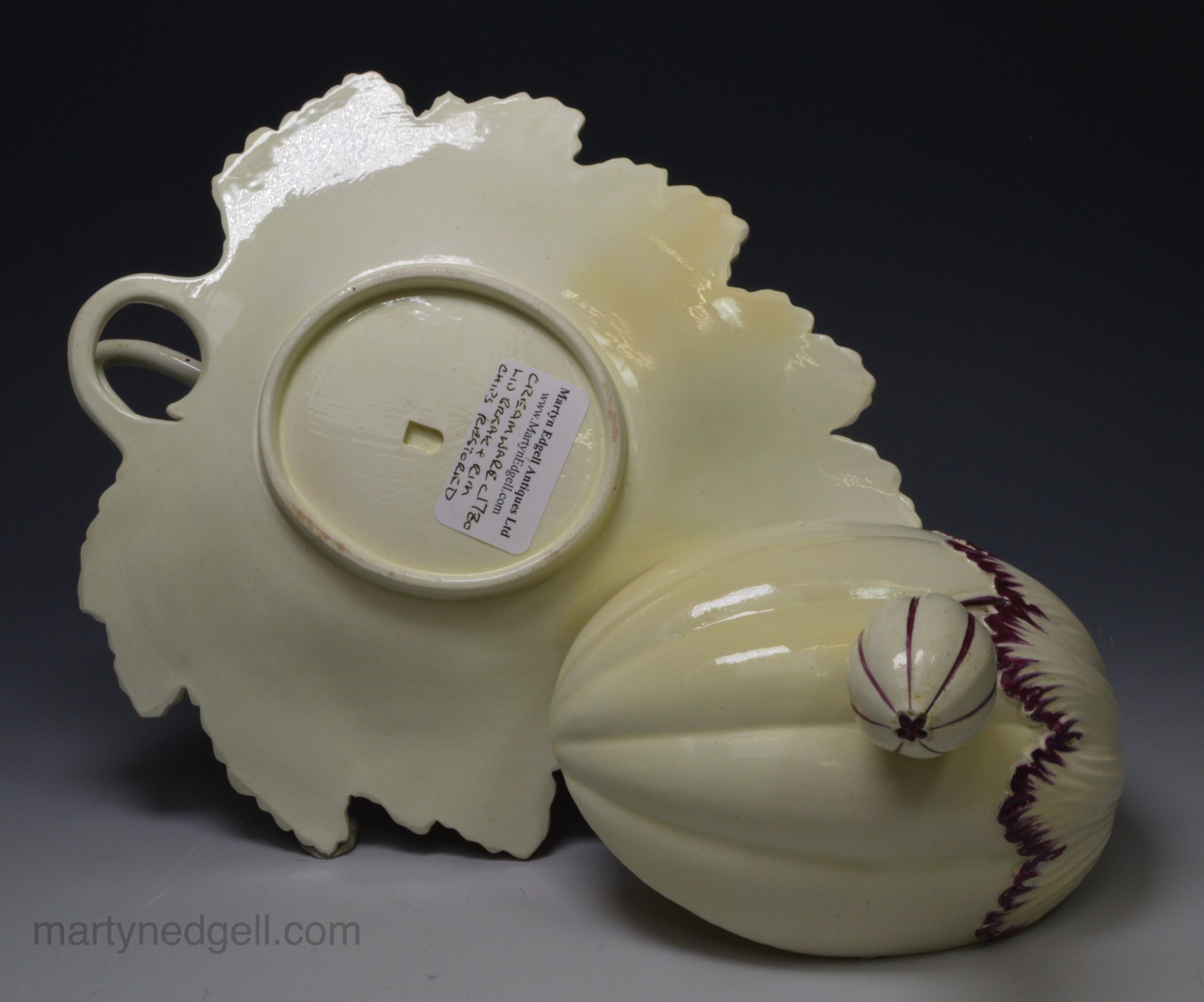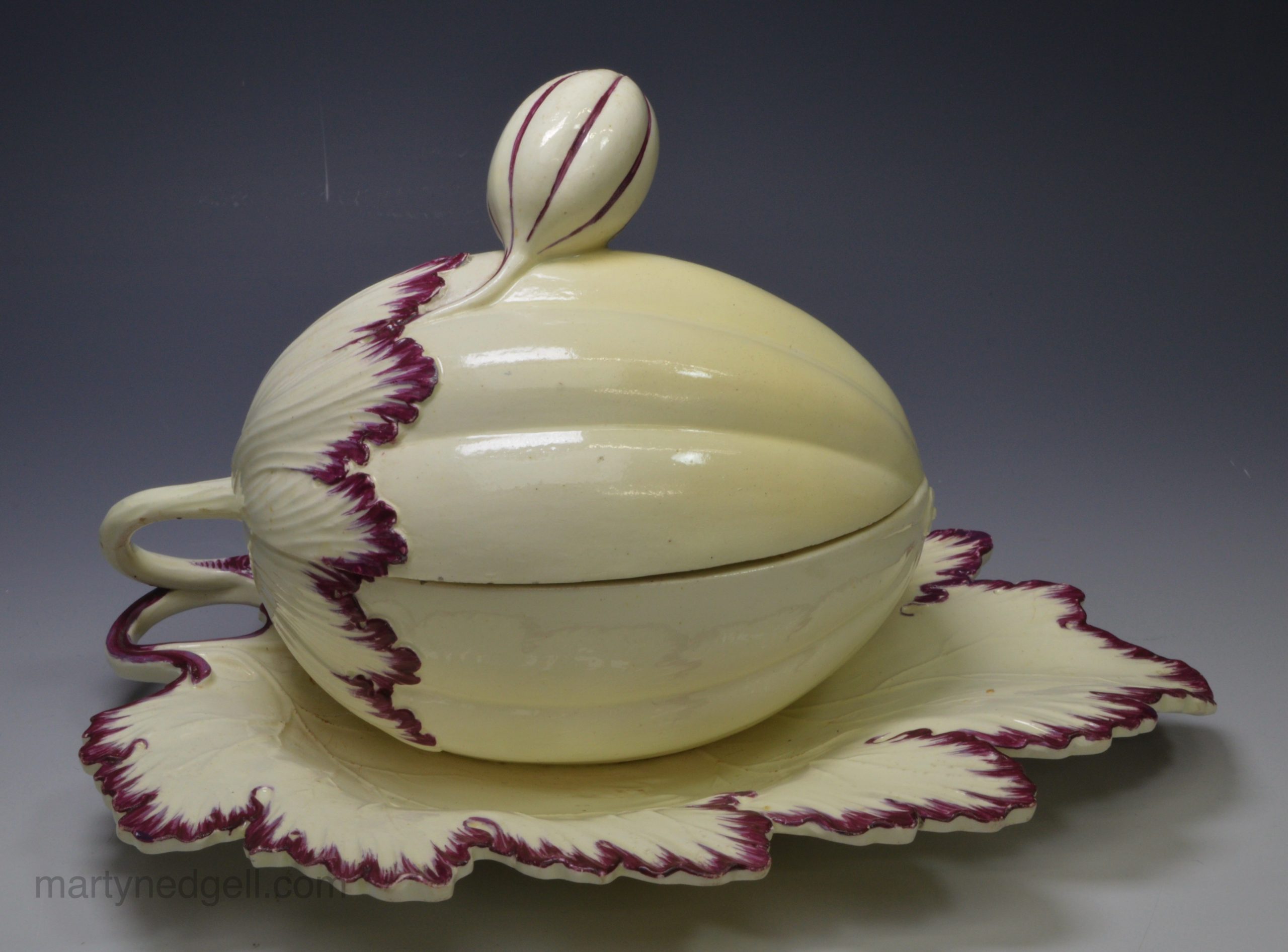 / Creamware pottery melon tureen with an integrated stand, circa 1780