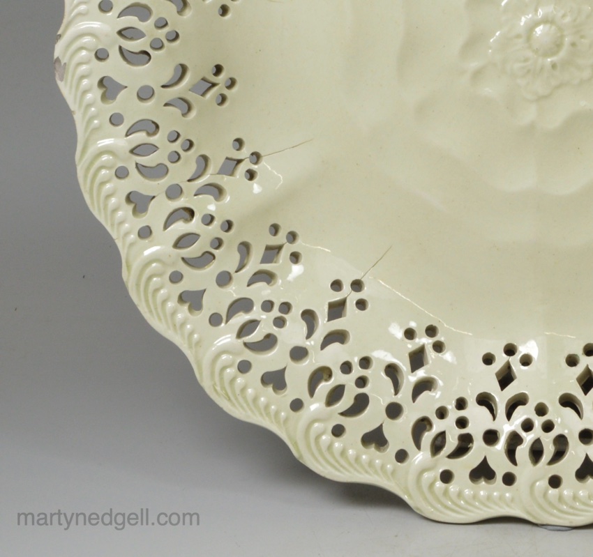 Condition: Minute rim chip and firing cracks to some of the inner piercings, see pictures