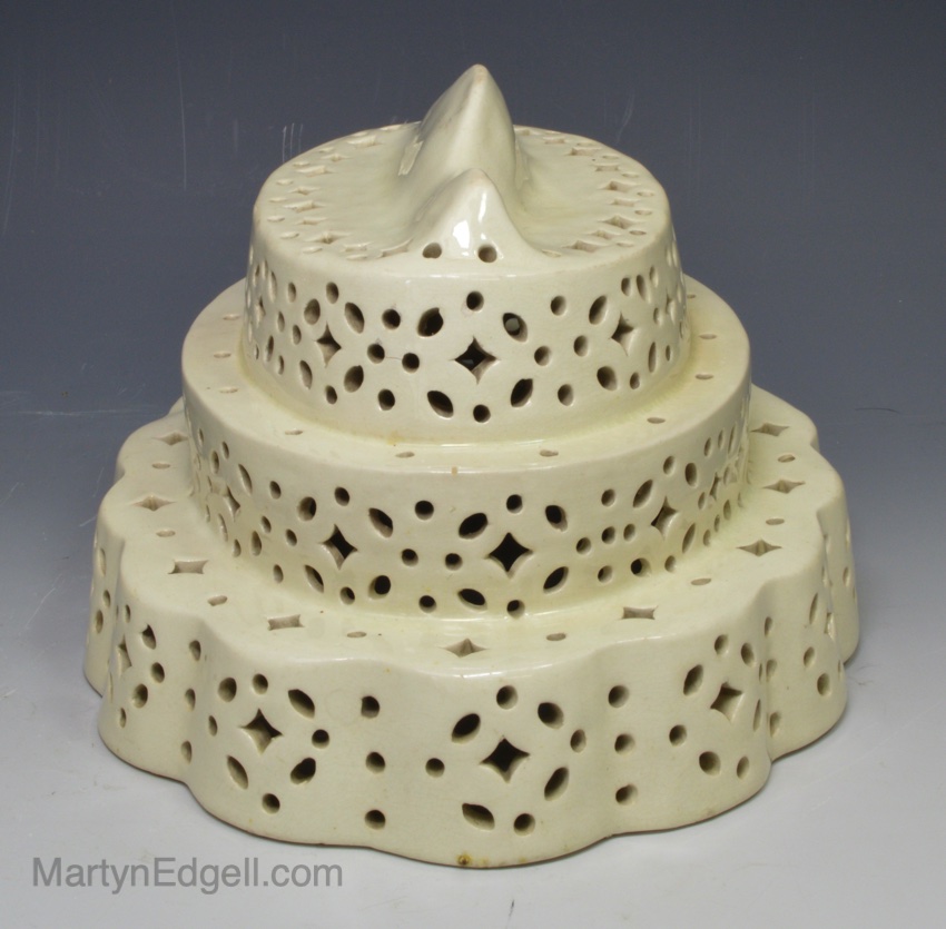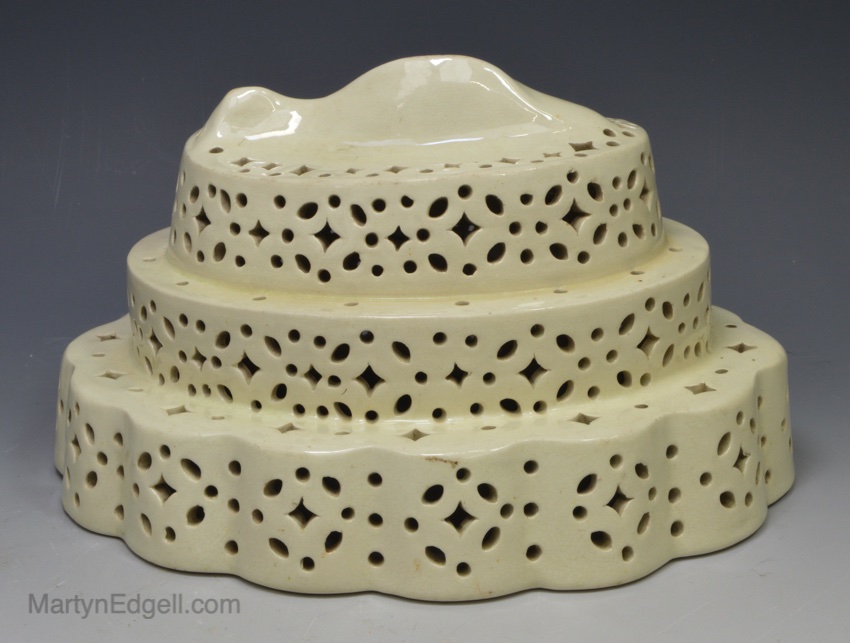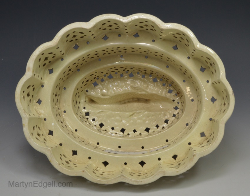 / Creamware pottery pierced fish curd mould, circa 1790