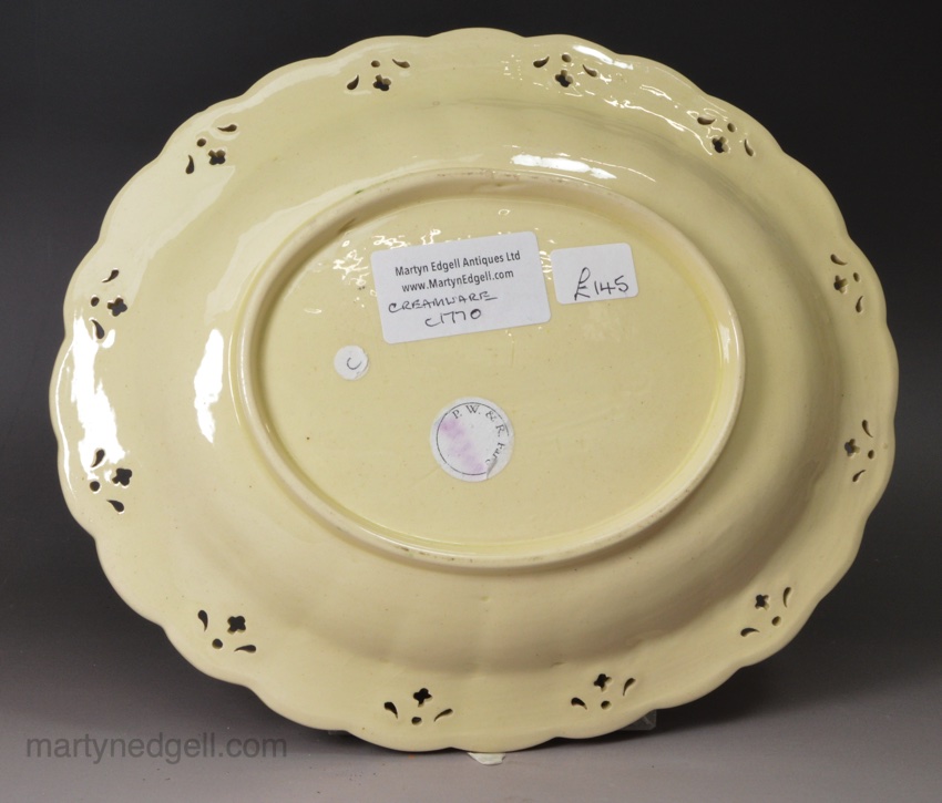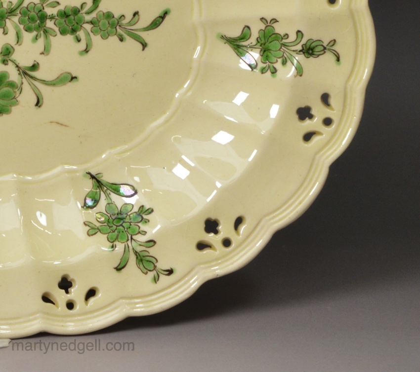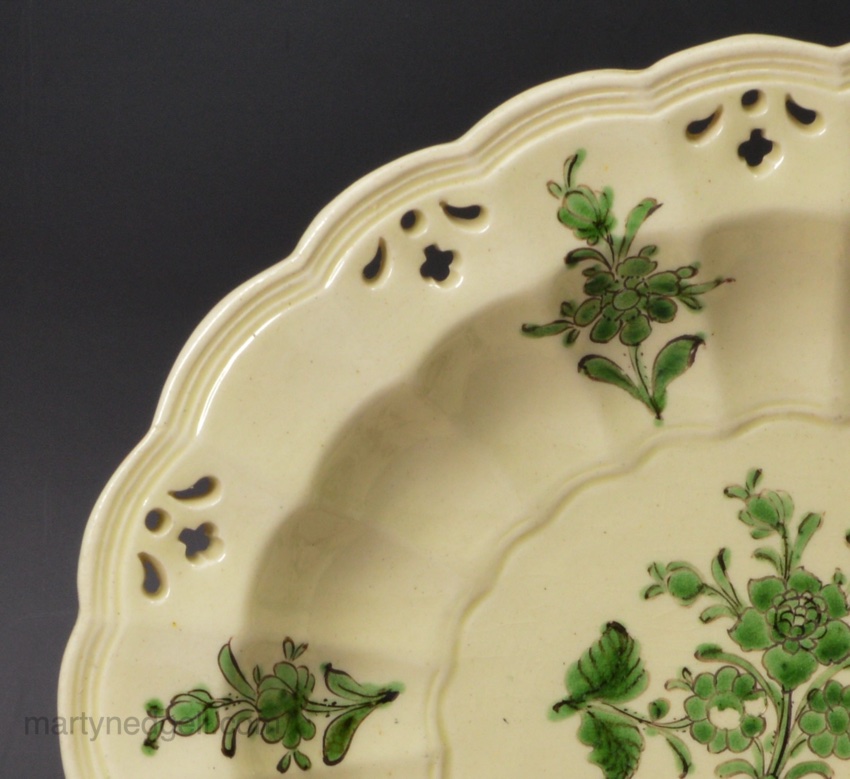 Creamware pottery pierced stand decorated with green enamels, circa 1770