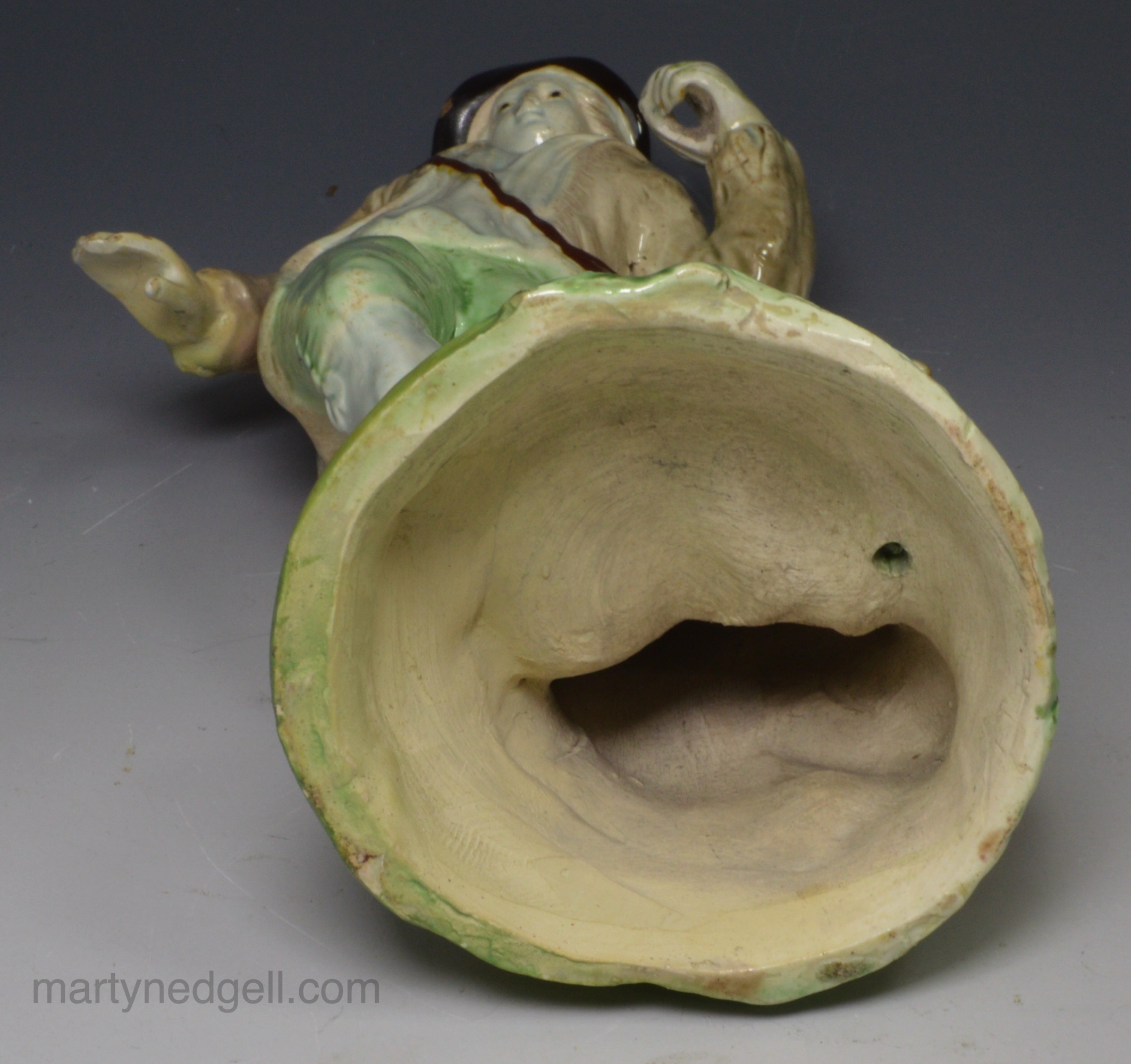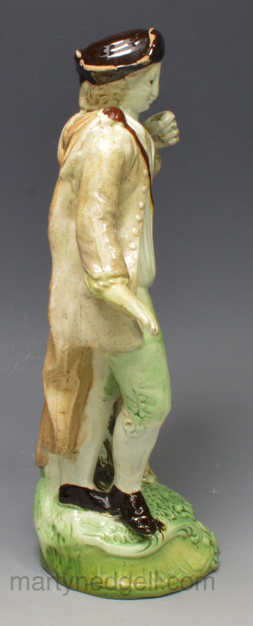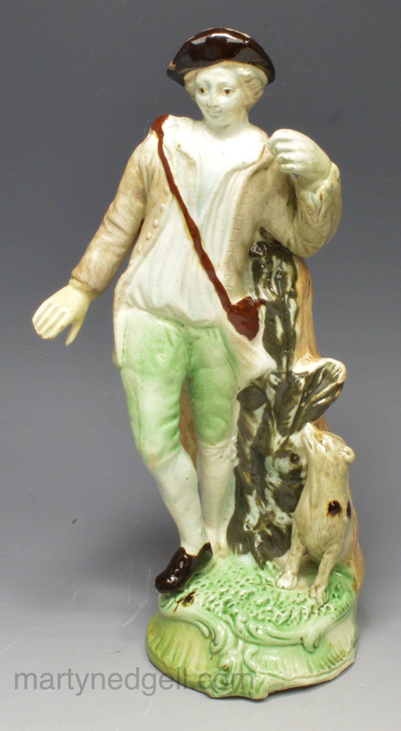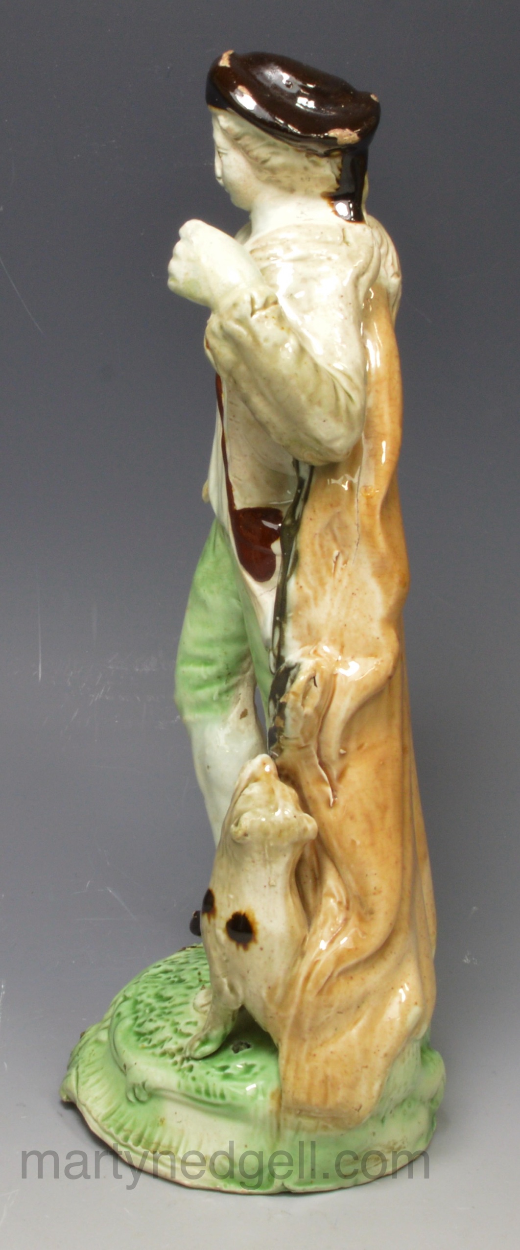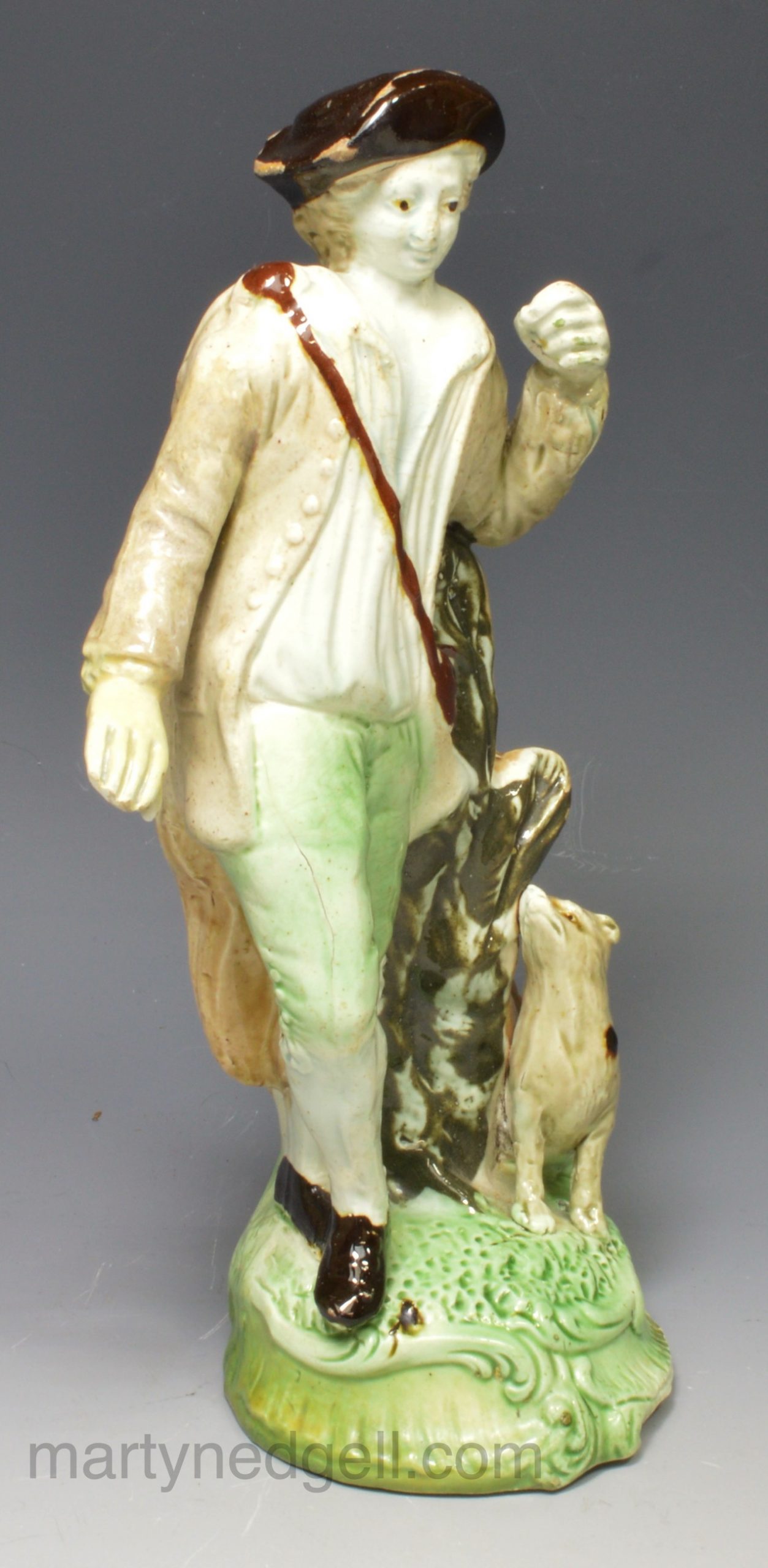 Creamware pottery Ralph Wood type figure of and man and dog, circa 1795
