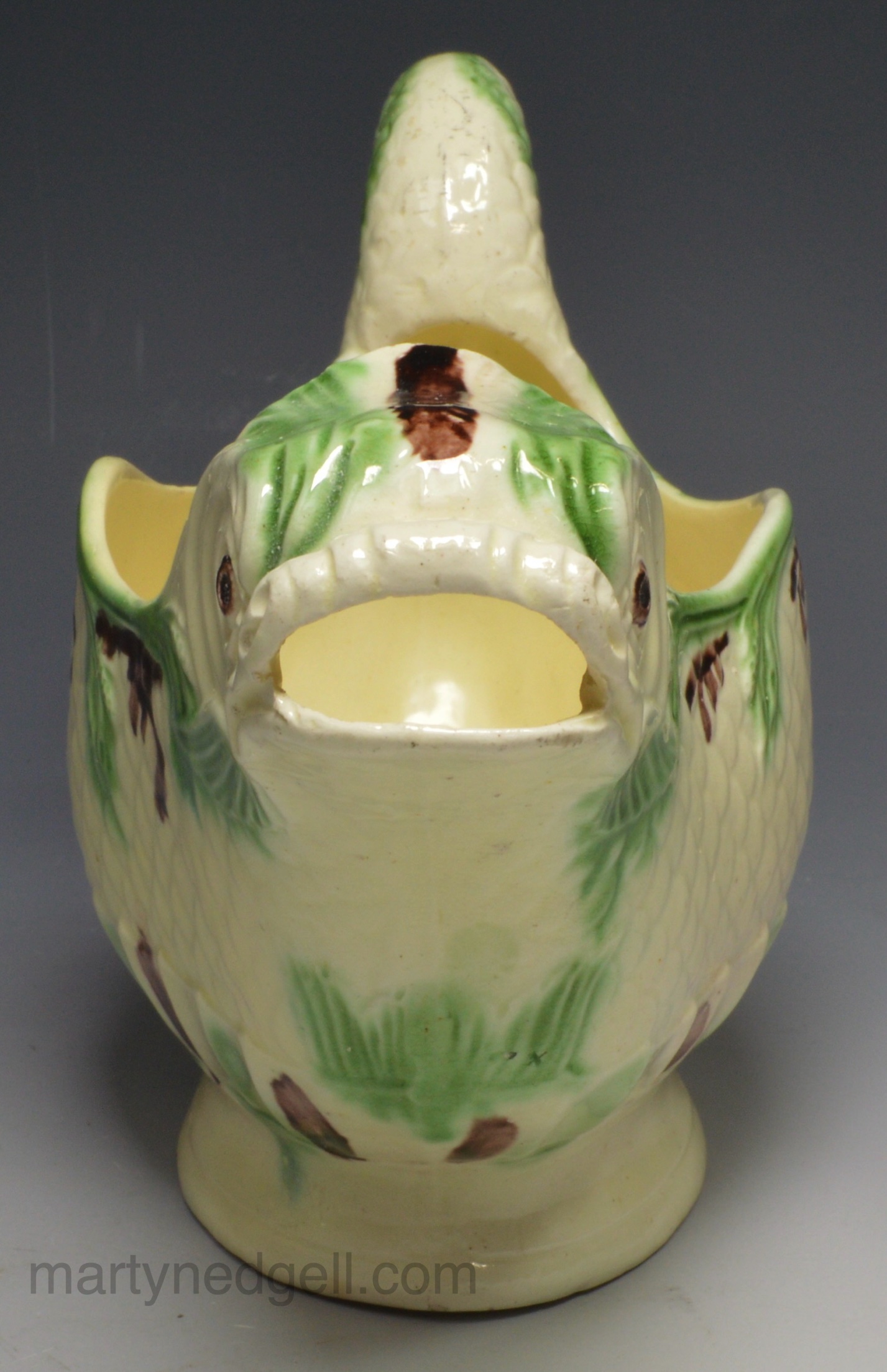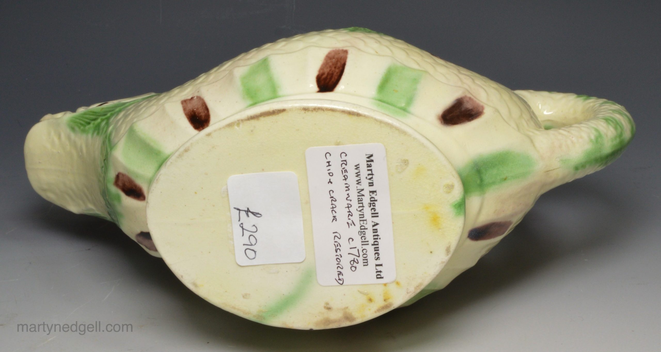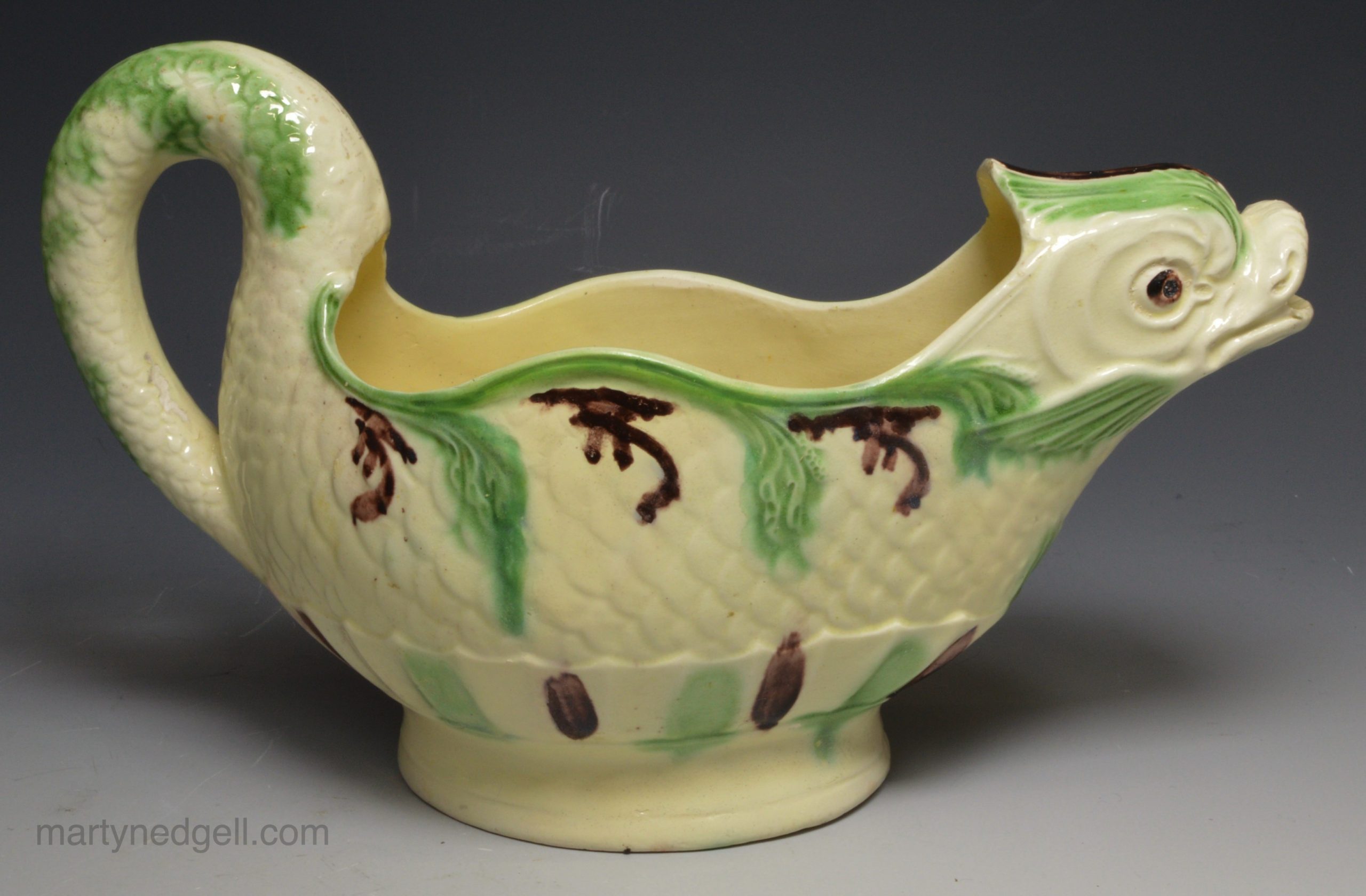 / Creamware pottery sauce boat moulded as a dolphin, circa 1780