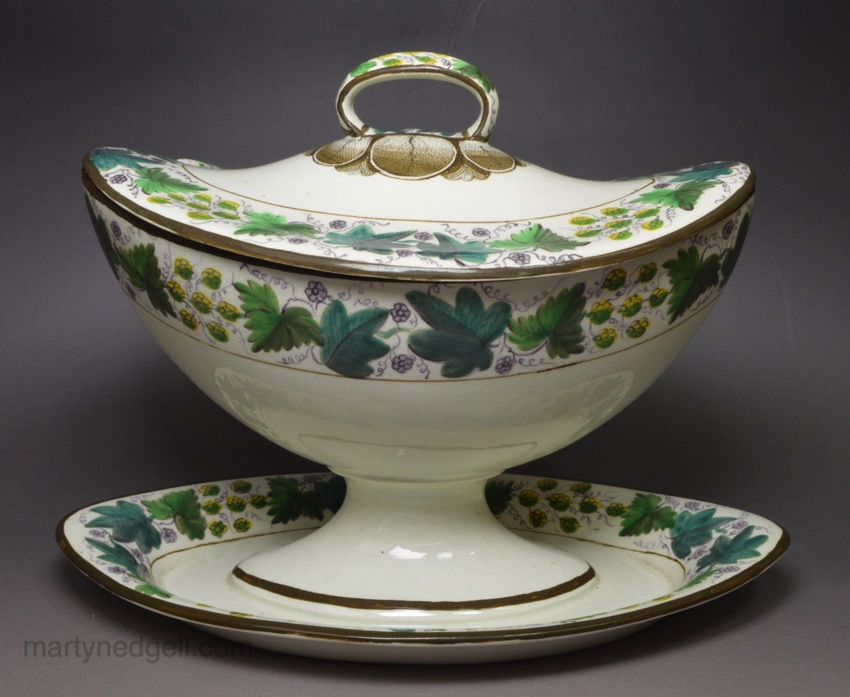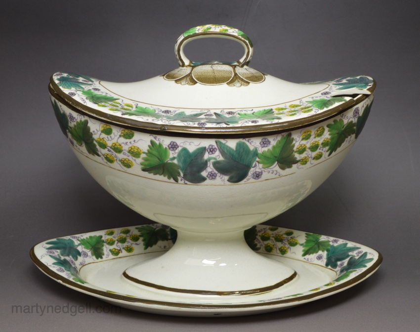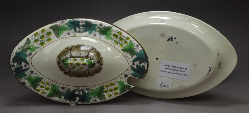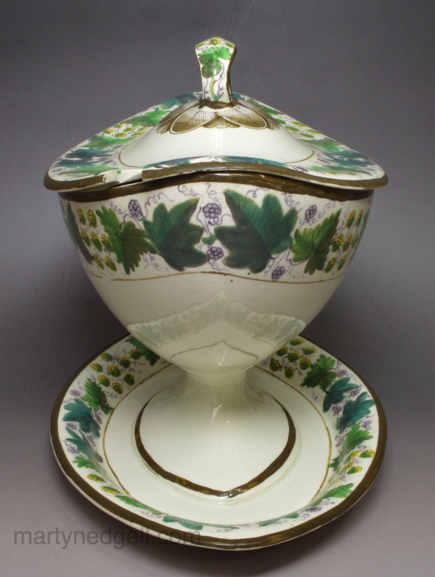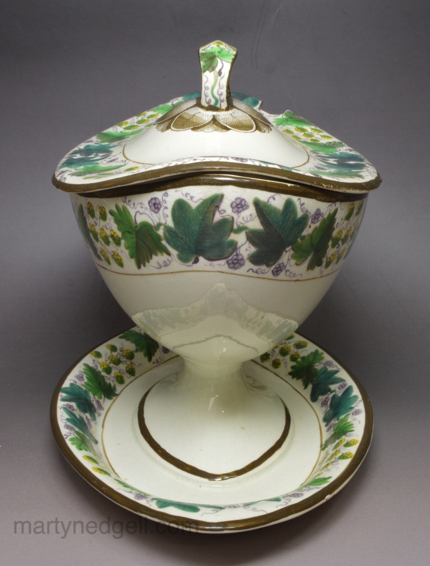 Creamware pottery sauce tureen with integral stand, circa 1790