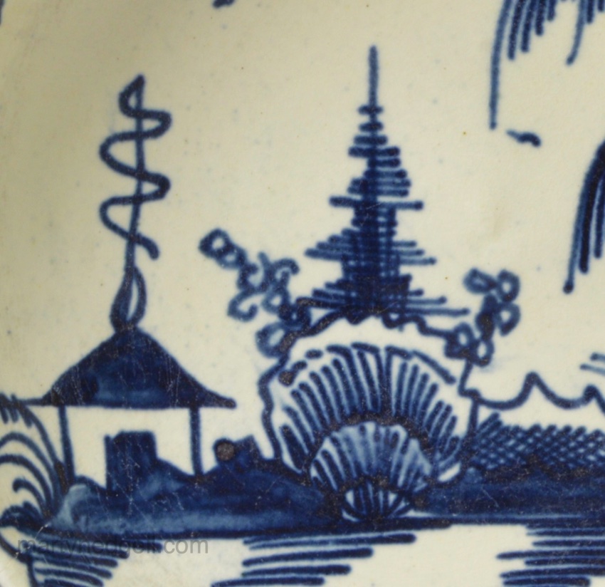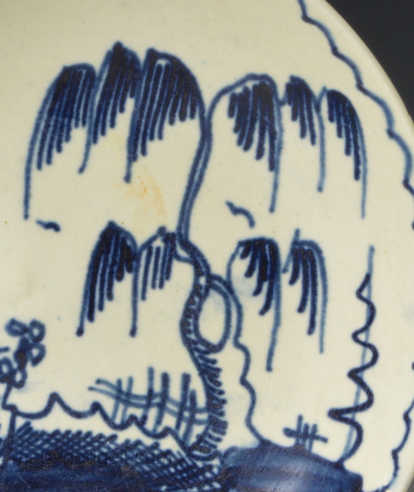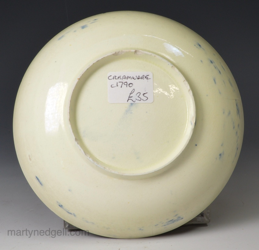 Creamware pottery saucer decorated with blue under the glaze, circa 1790