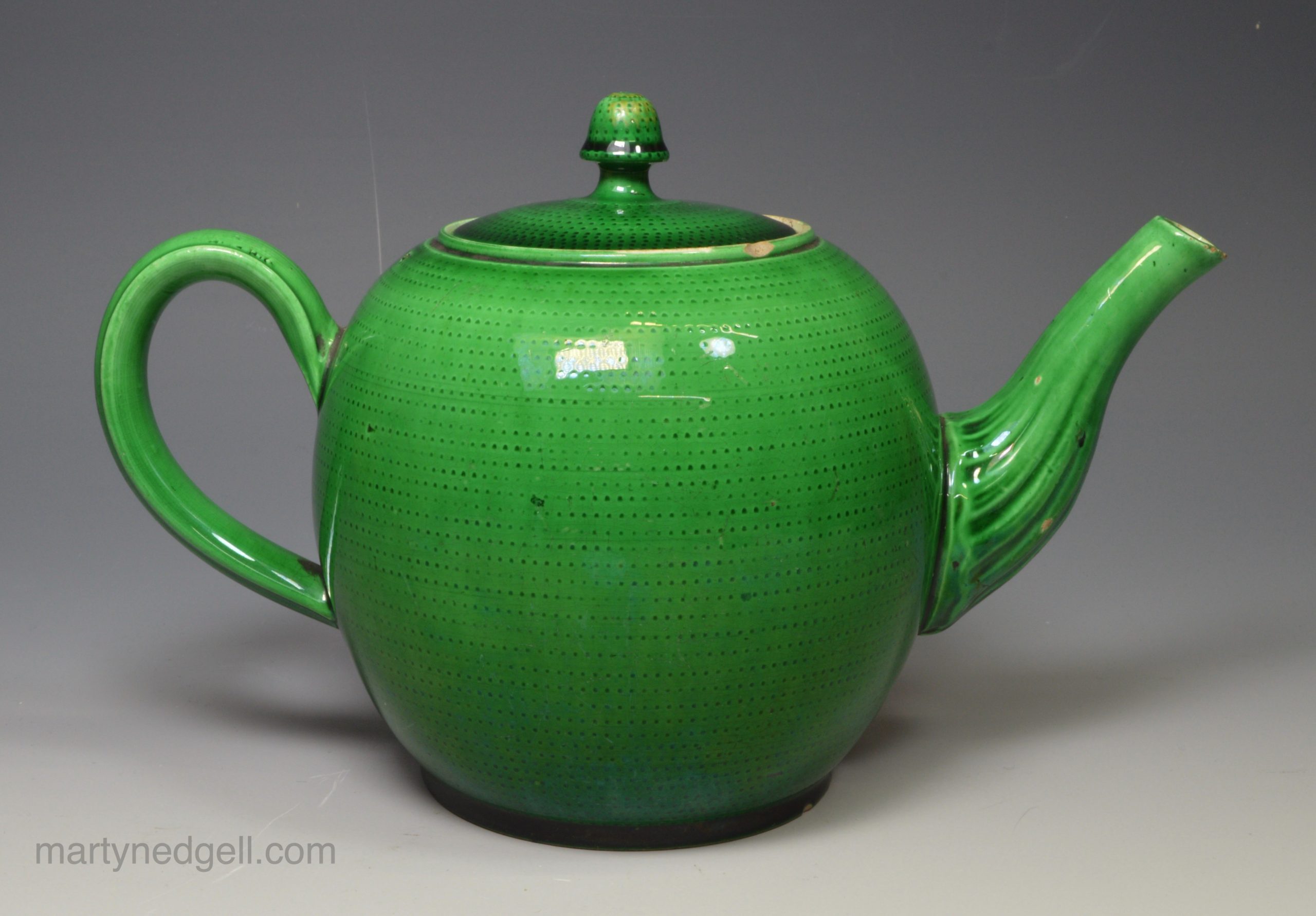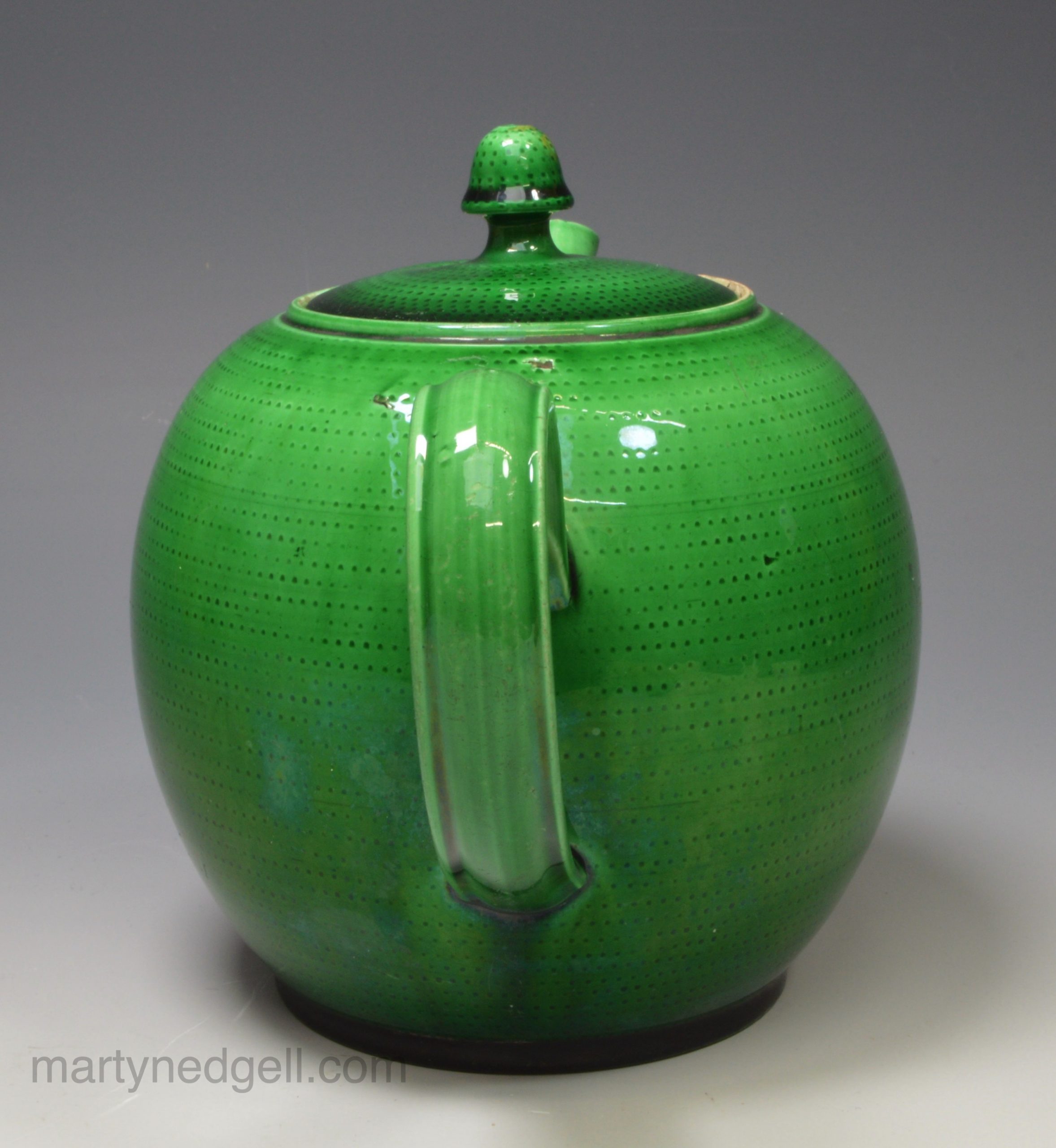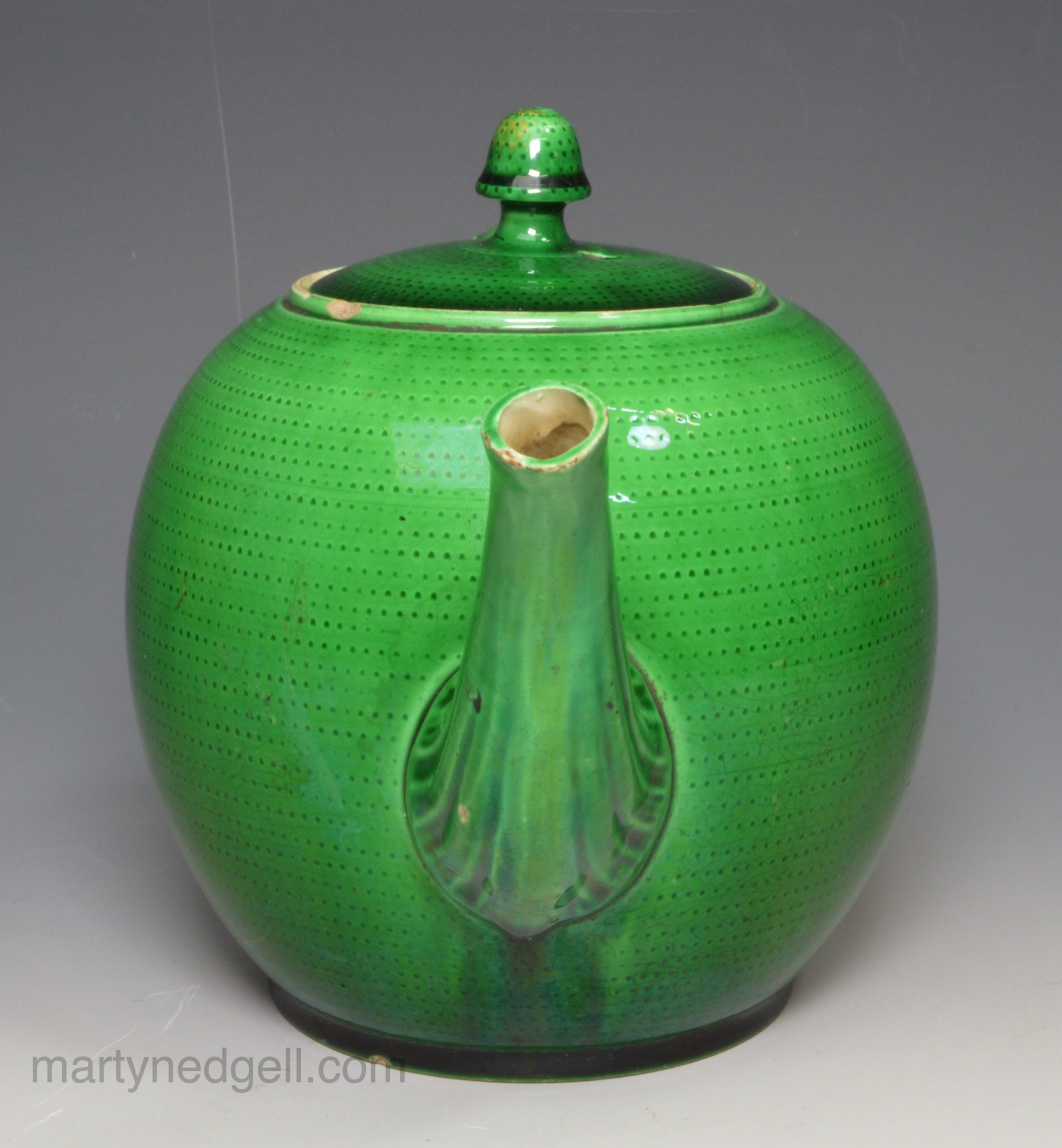 Creamware pottery teapot decorated with green glaze, circa 1770