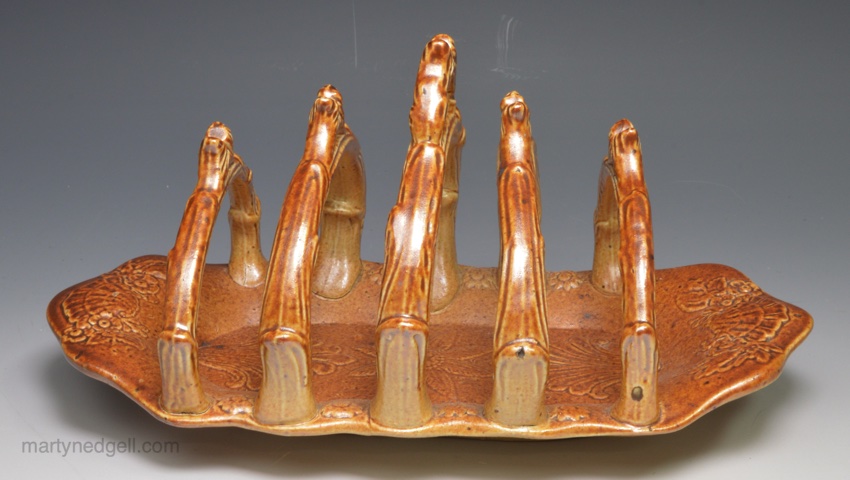 / Derbyshire brown saltglaze stoneware toast rack, circa 1840 Brampton Pottery