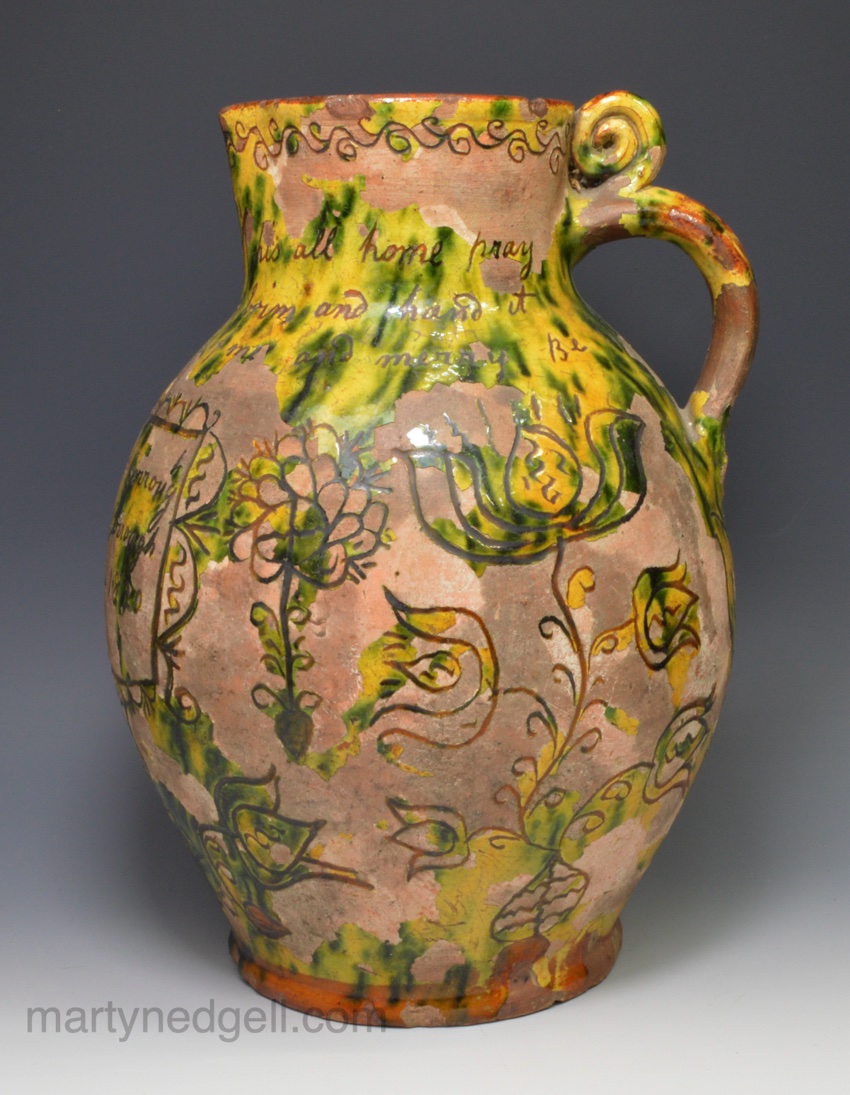 Donyatt pottery sgraffito jug, dated July 22nd 1830