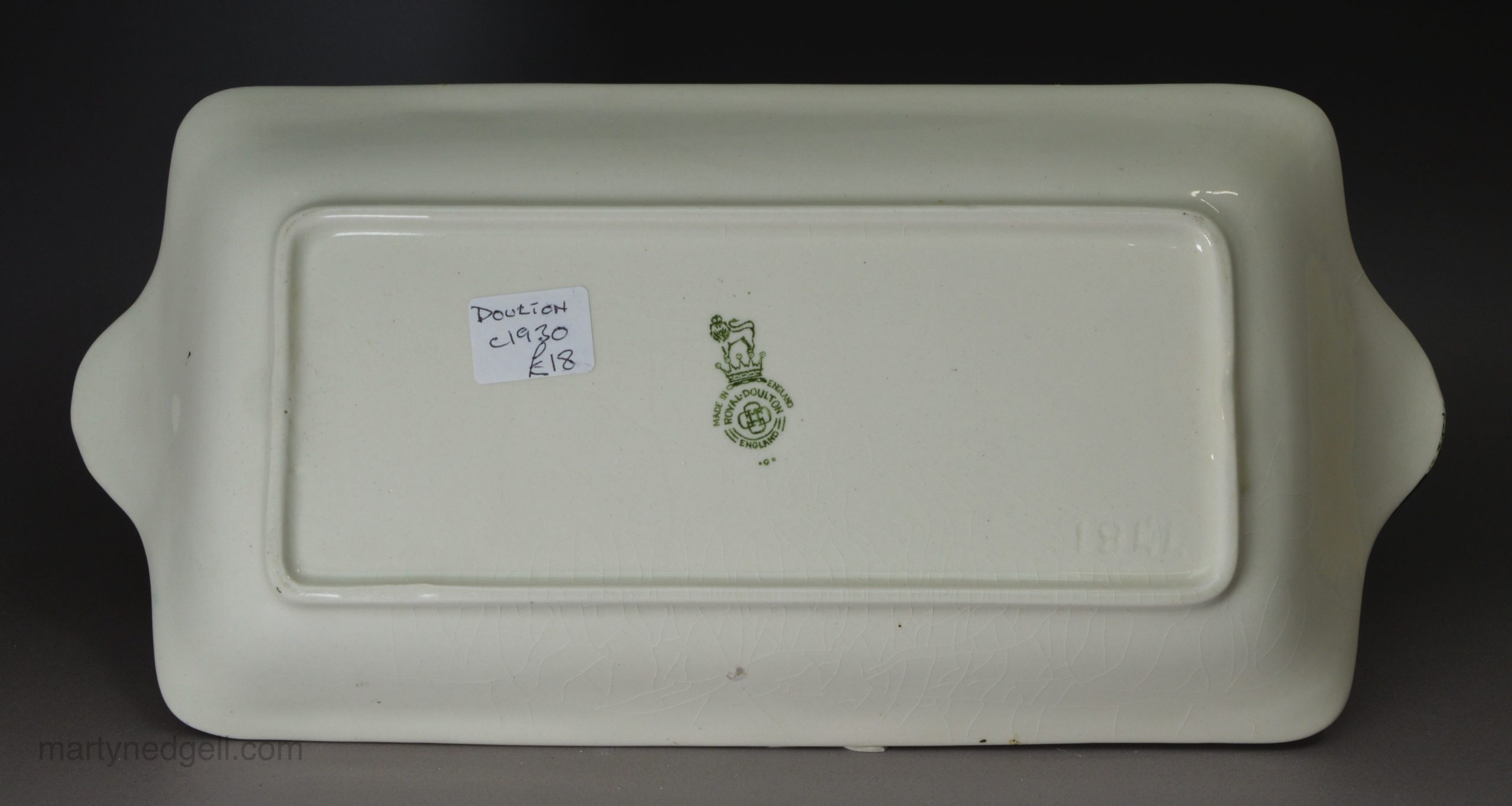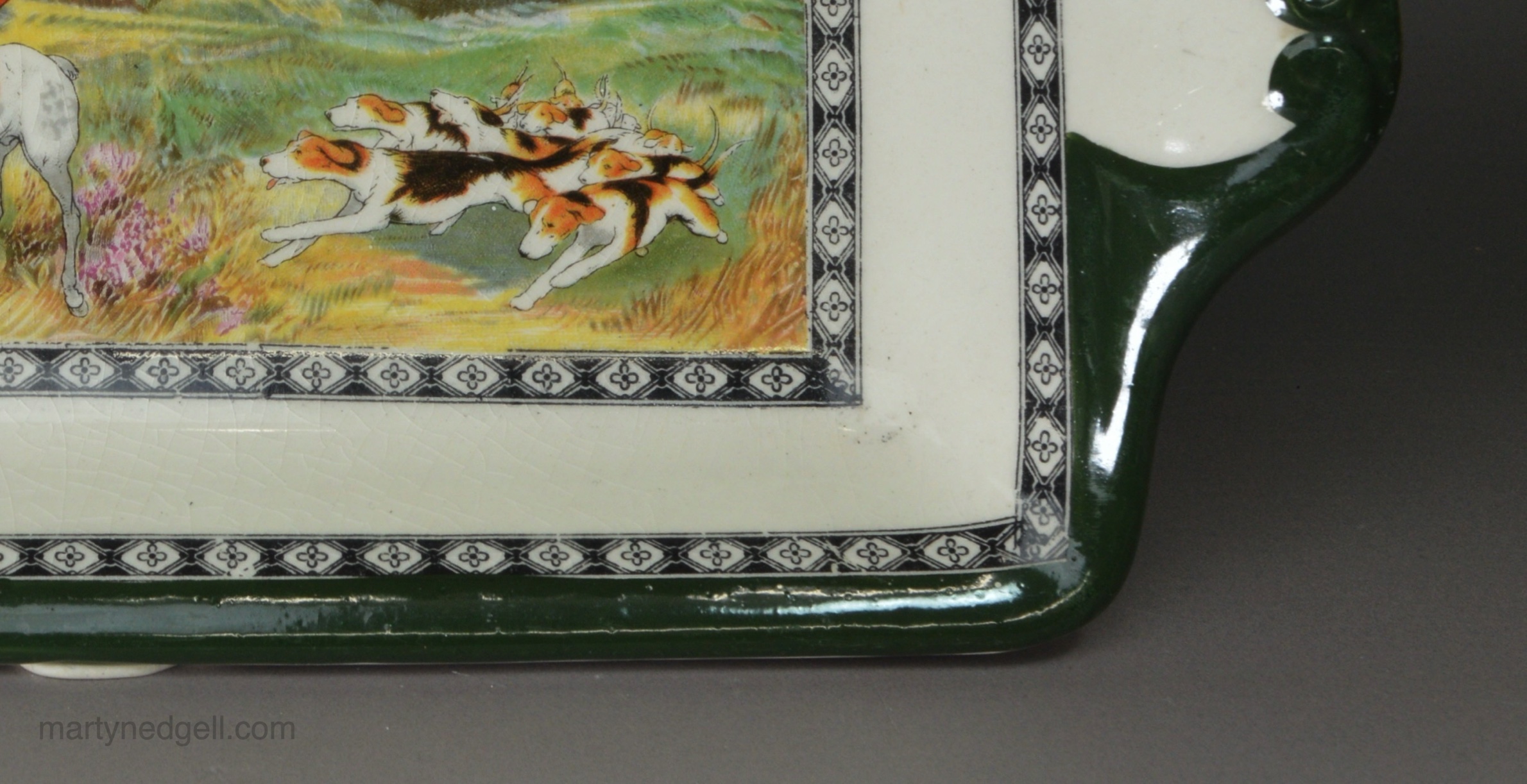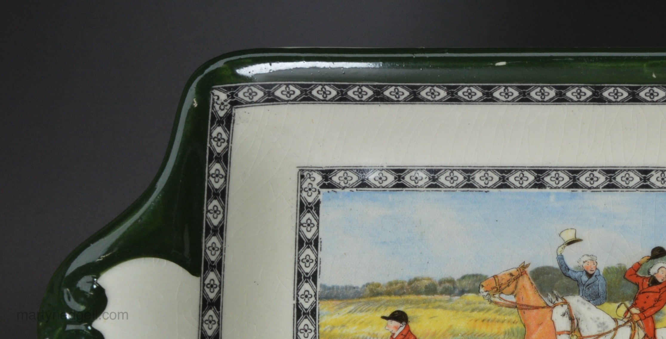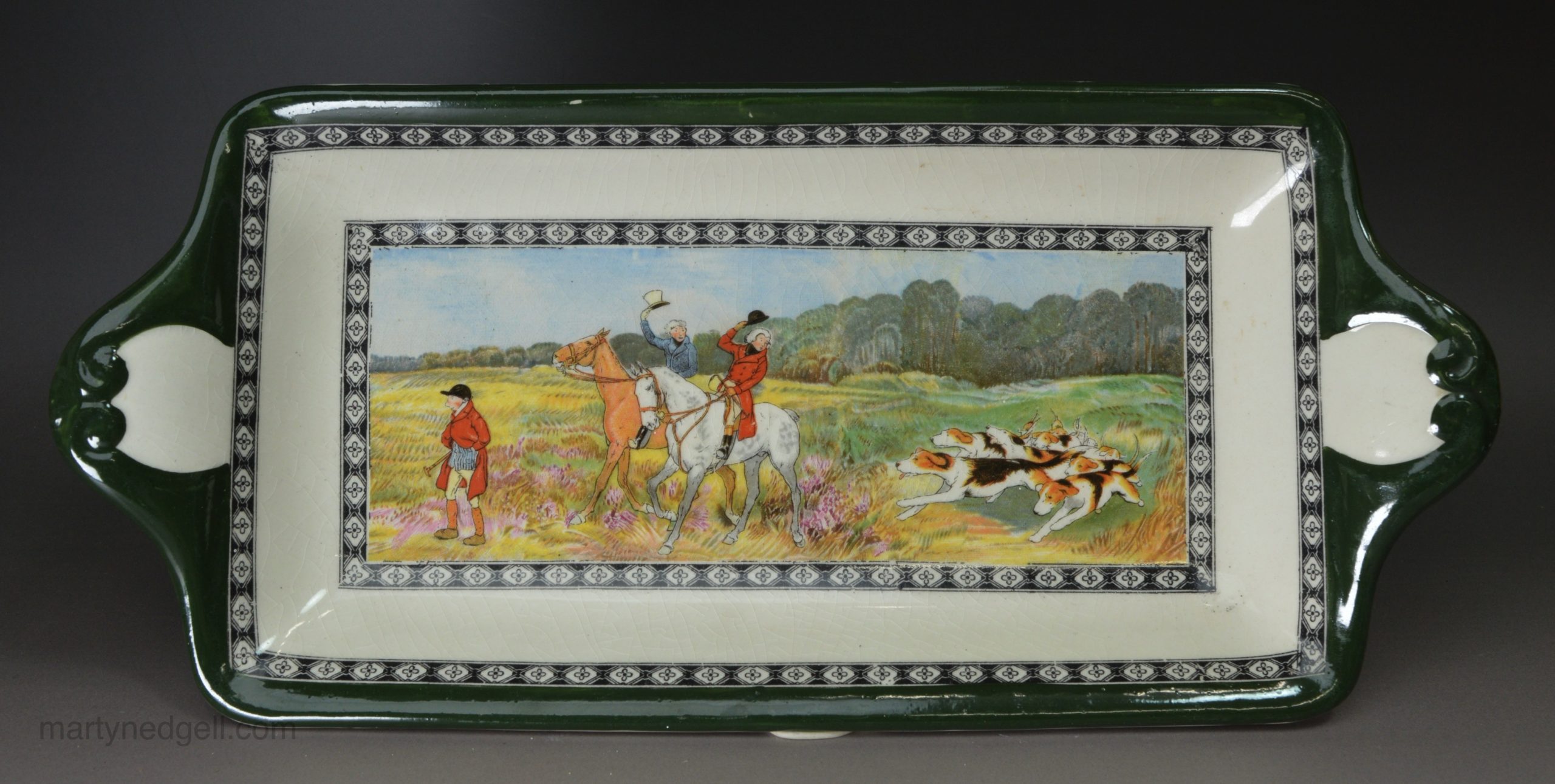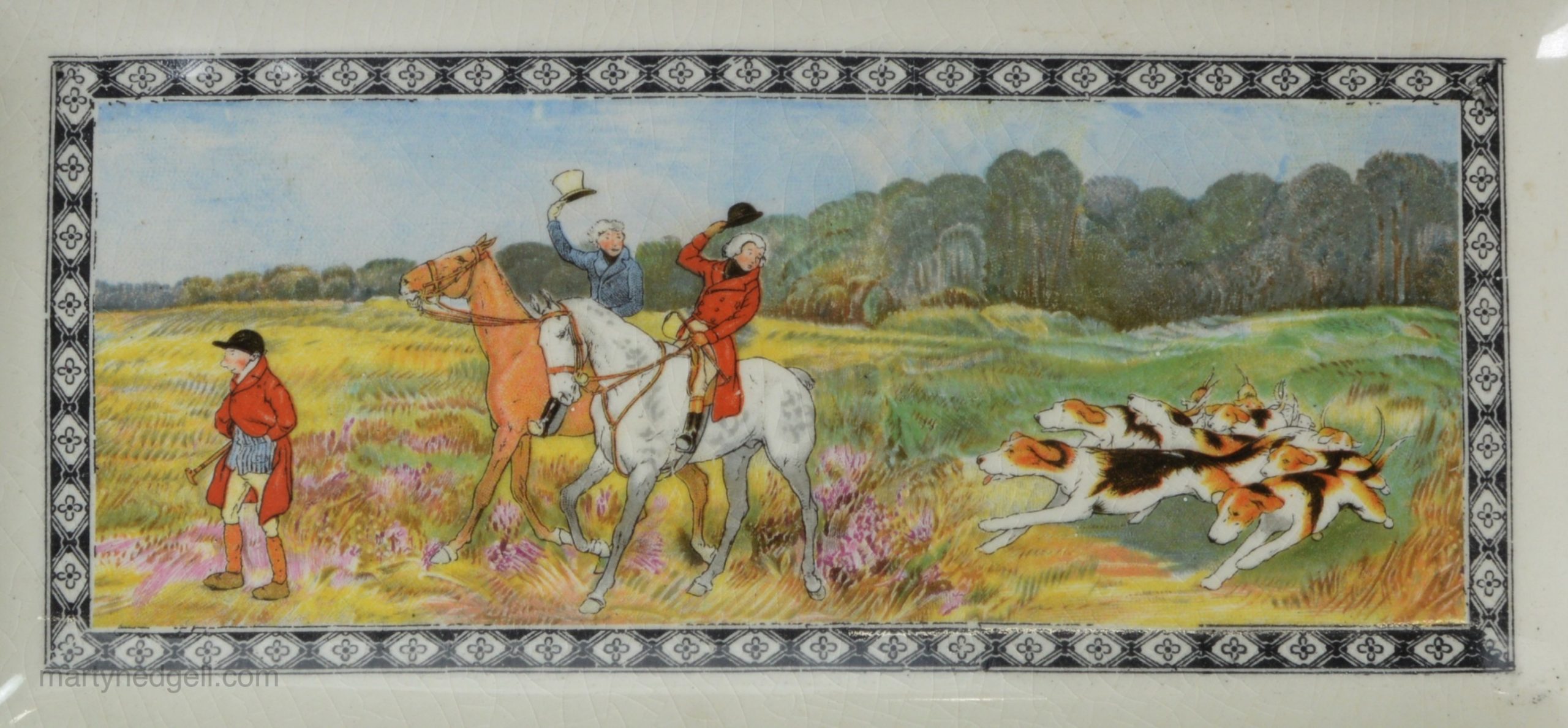 Doulton pottery tray with a fox hunting scene, circa 1930