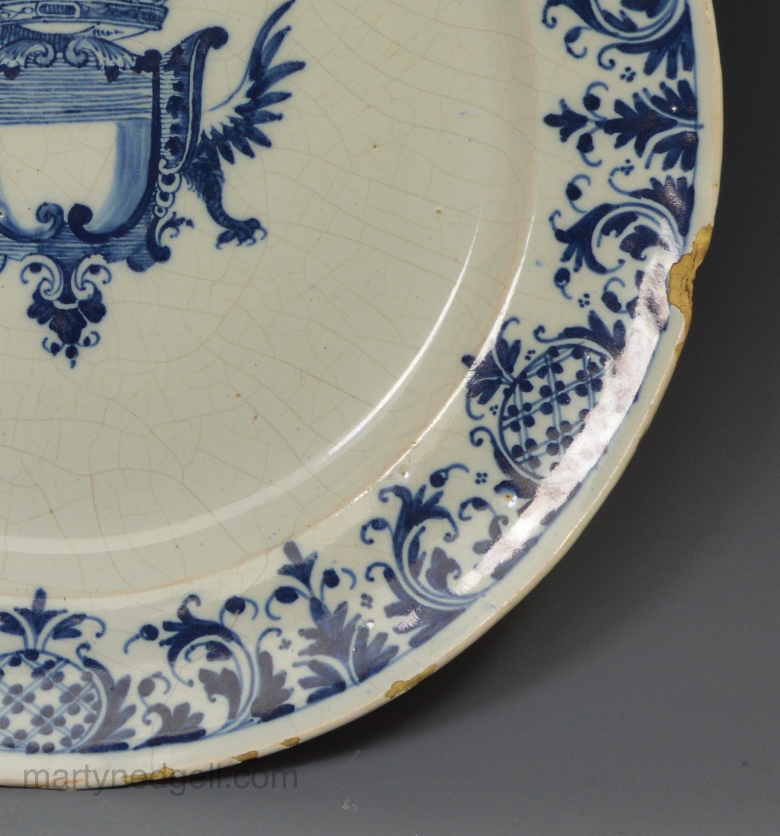 / Large Dutch Delft plate decorated with a crest, circa 1720