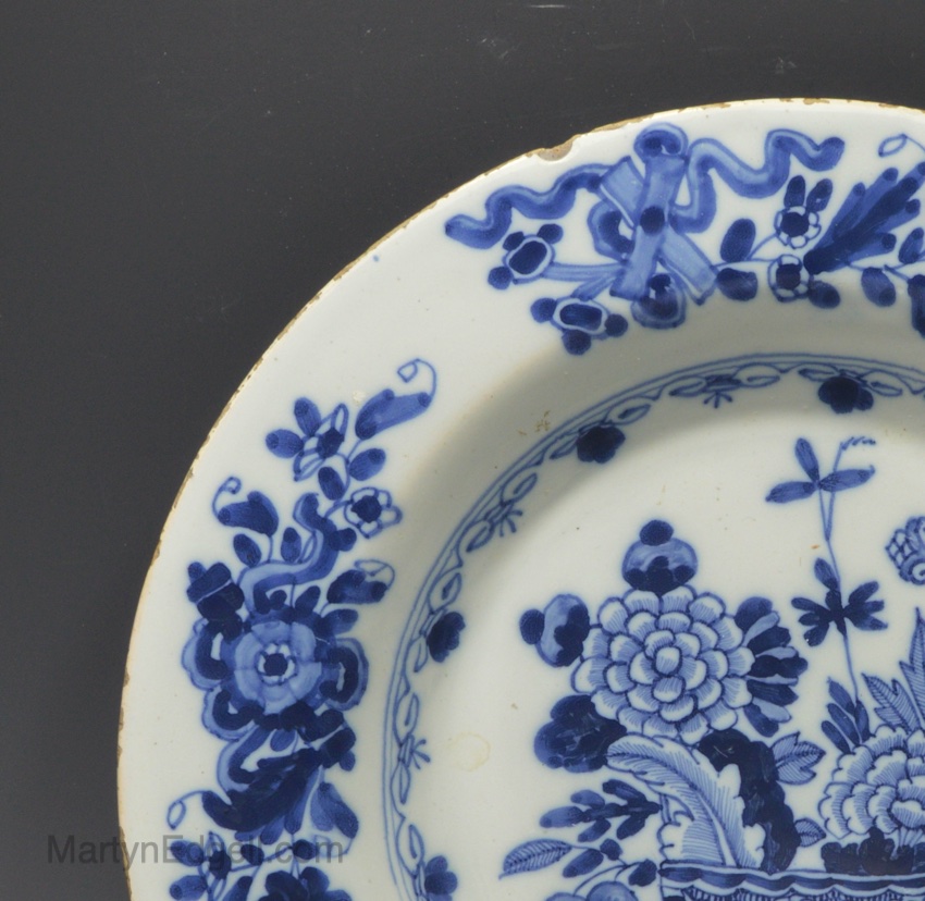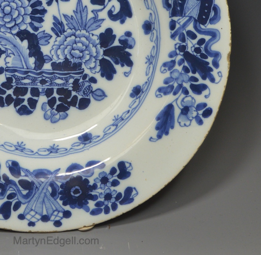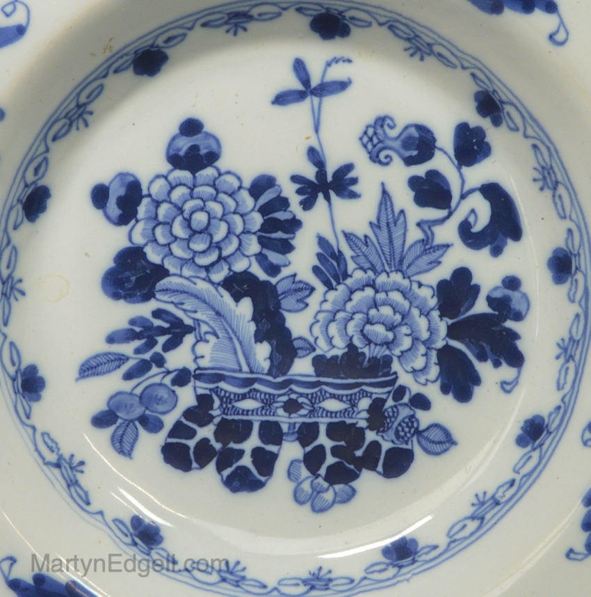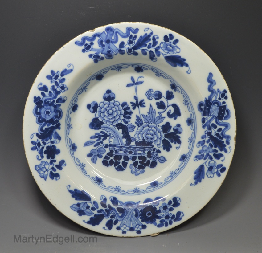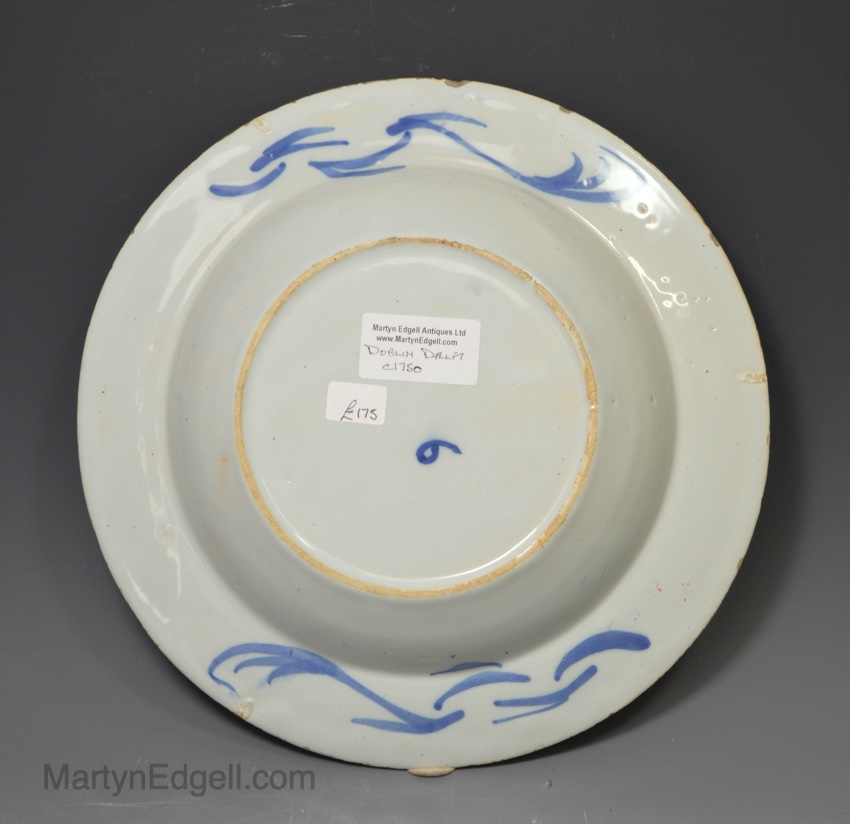 Dublin delft soup bowl painted in blue florals, circa 1750
