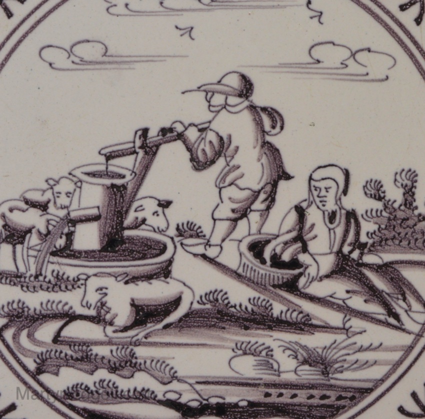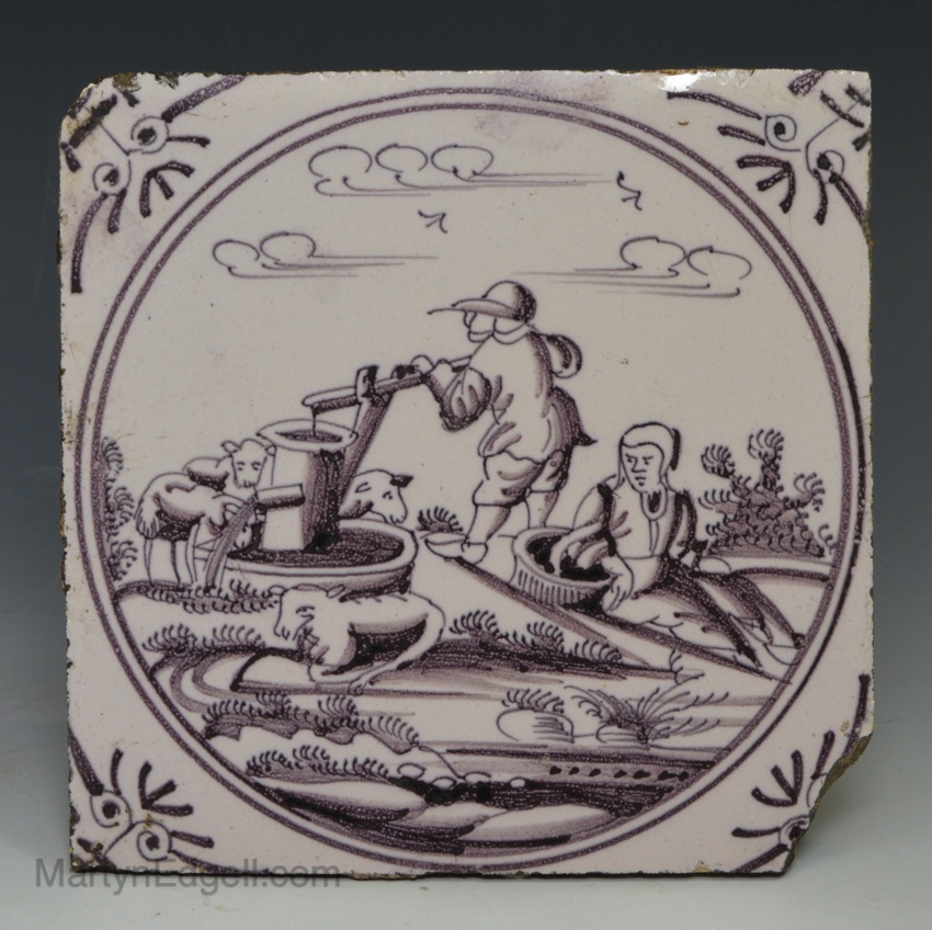 / Dutch Delft tile decorated in manganese, circa 1740