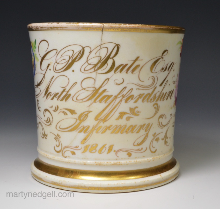 English porcelain mug G. P. Bate Esq. North Staffordshire Infirmary 1861
