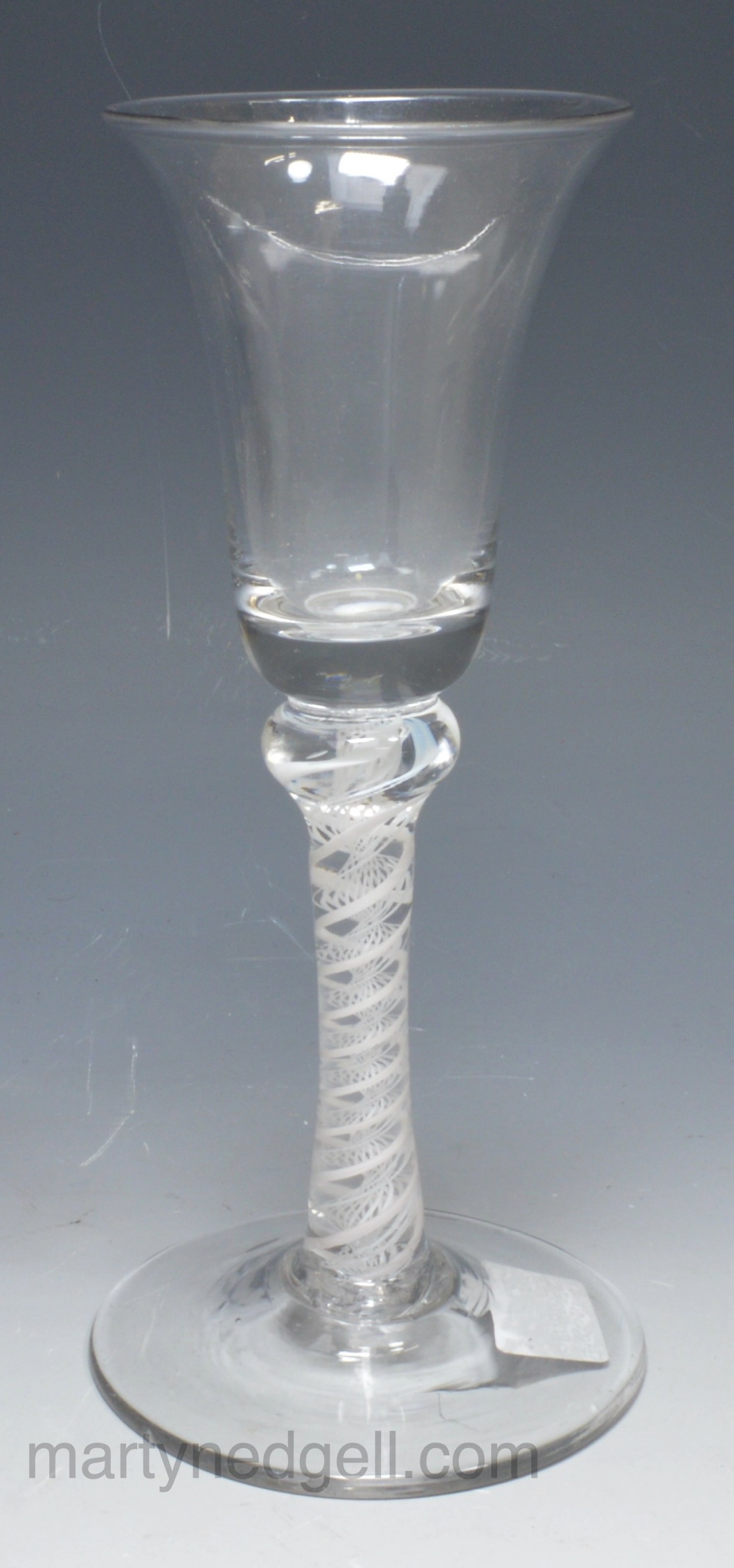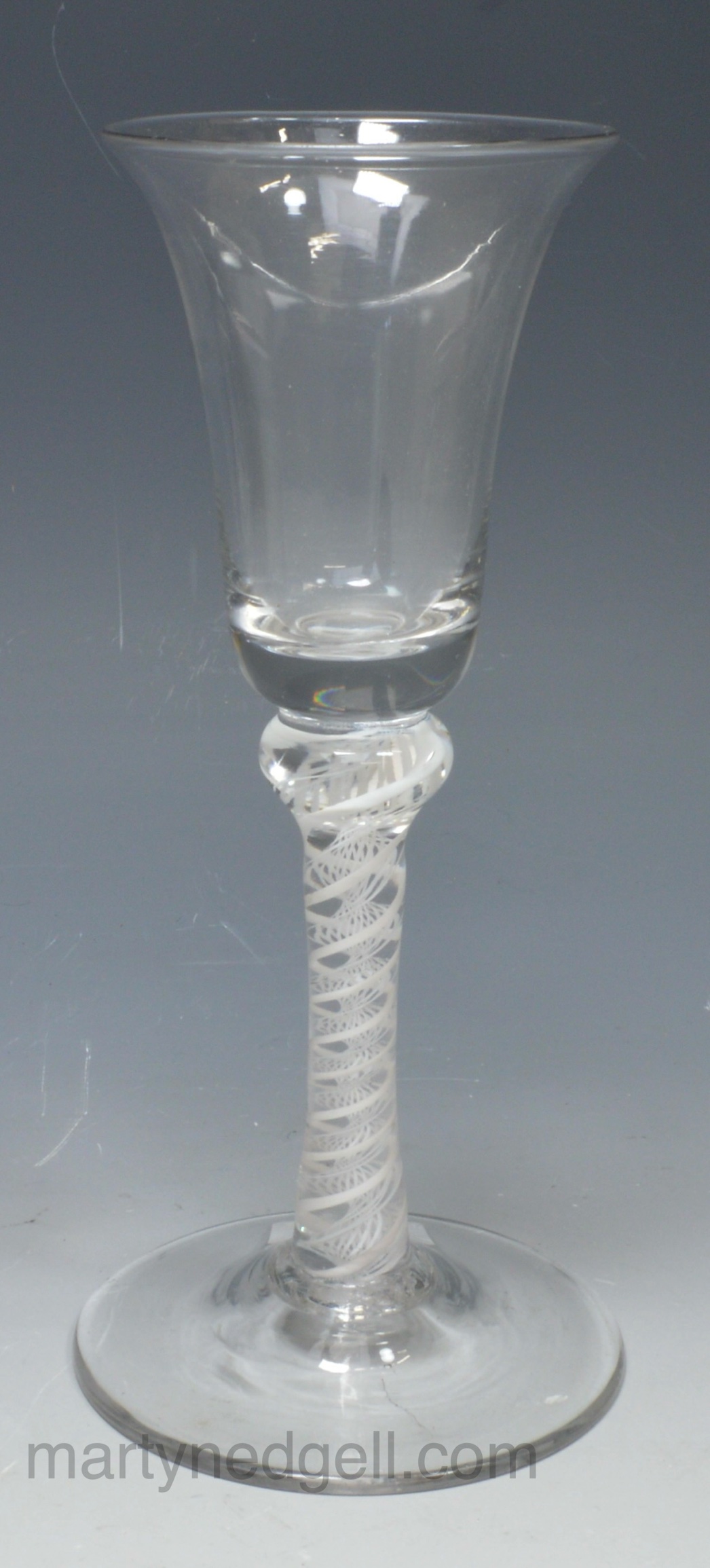 / English wine glass with an opaque white spiral in the stem, circa 1770