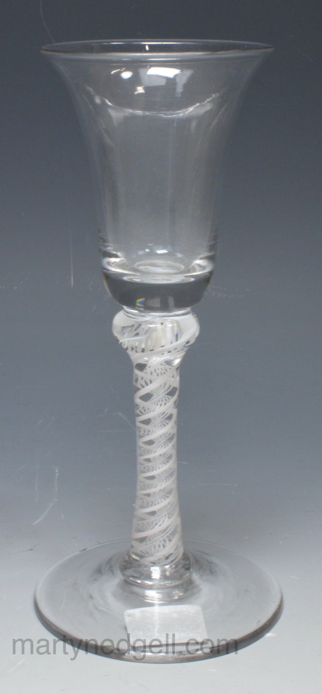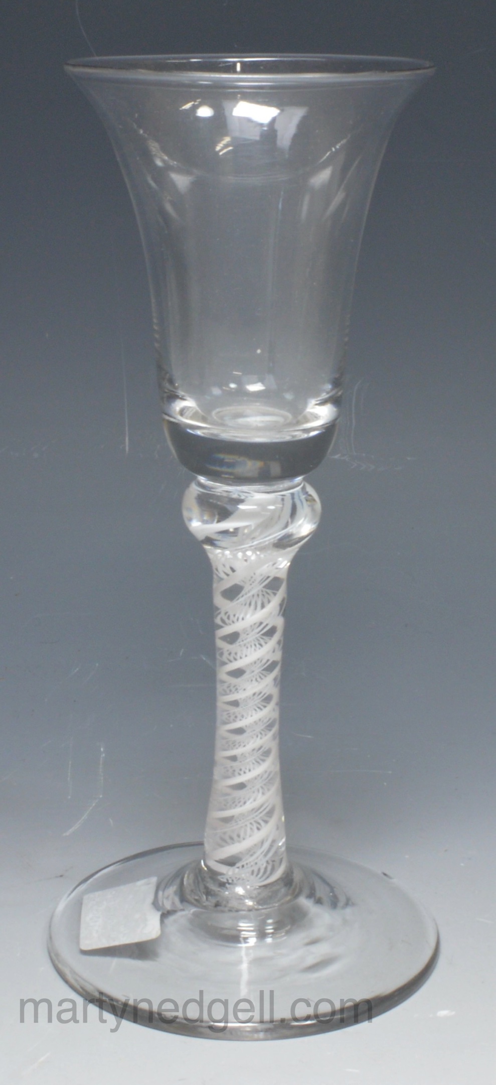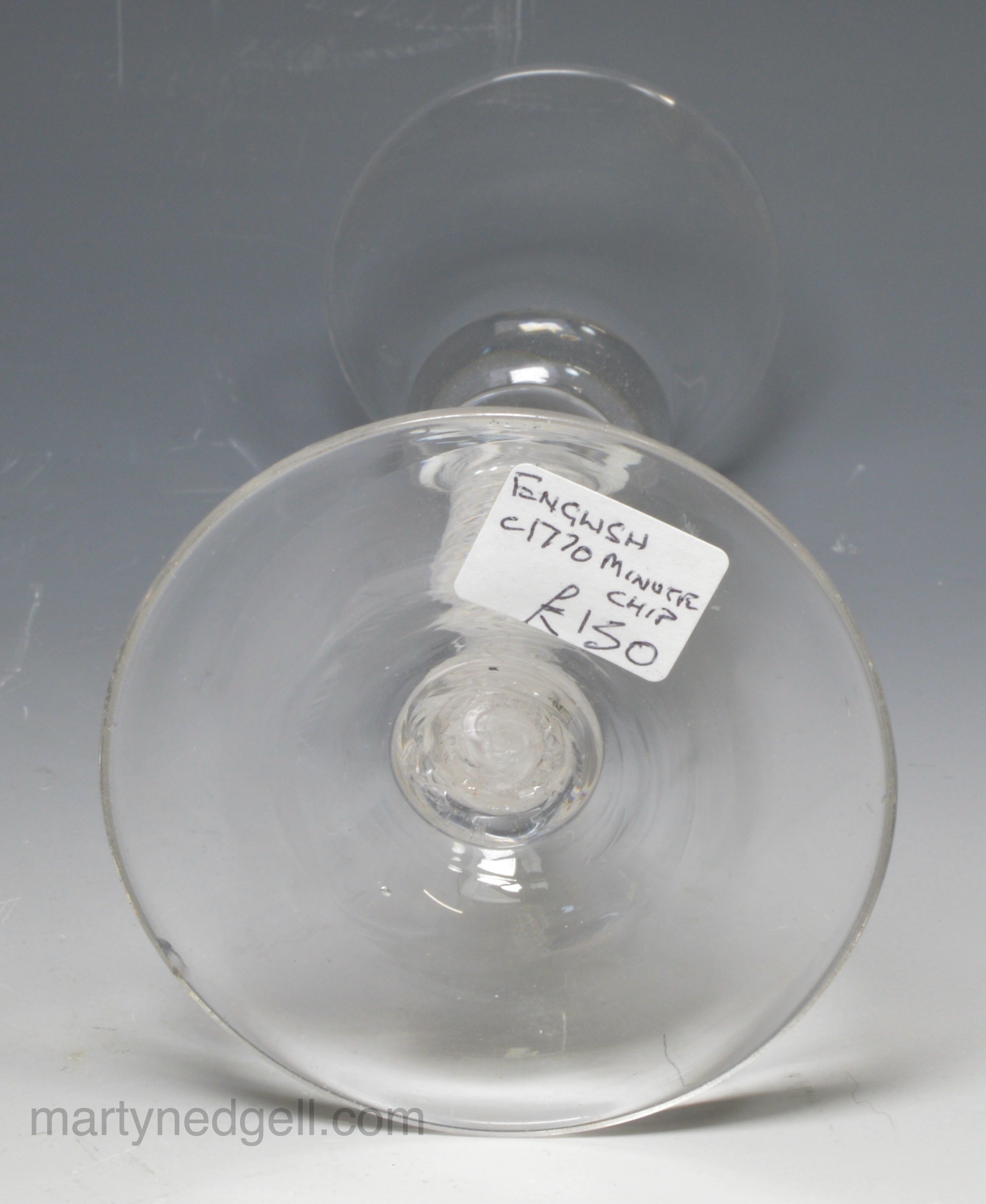 English wine glass with an opaque white spiral in the stem, circa 1770