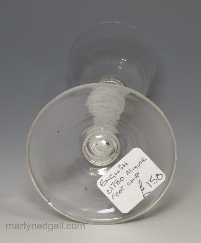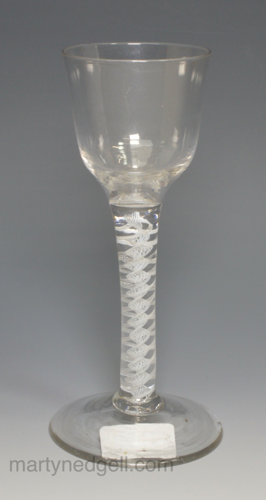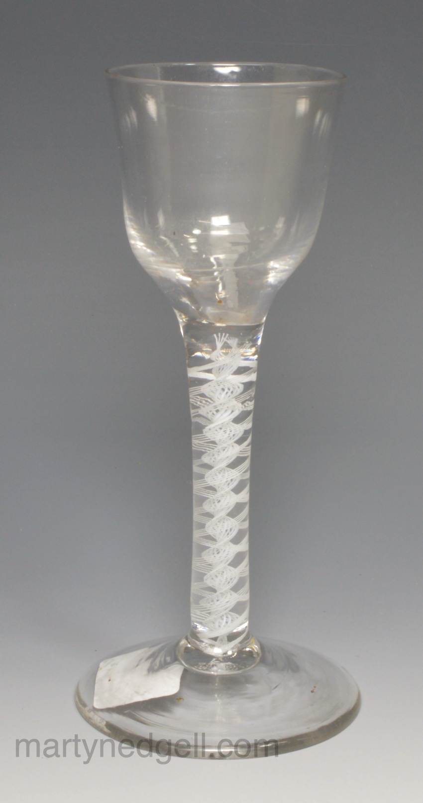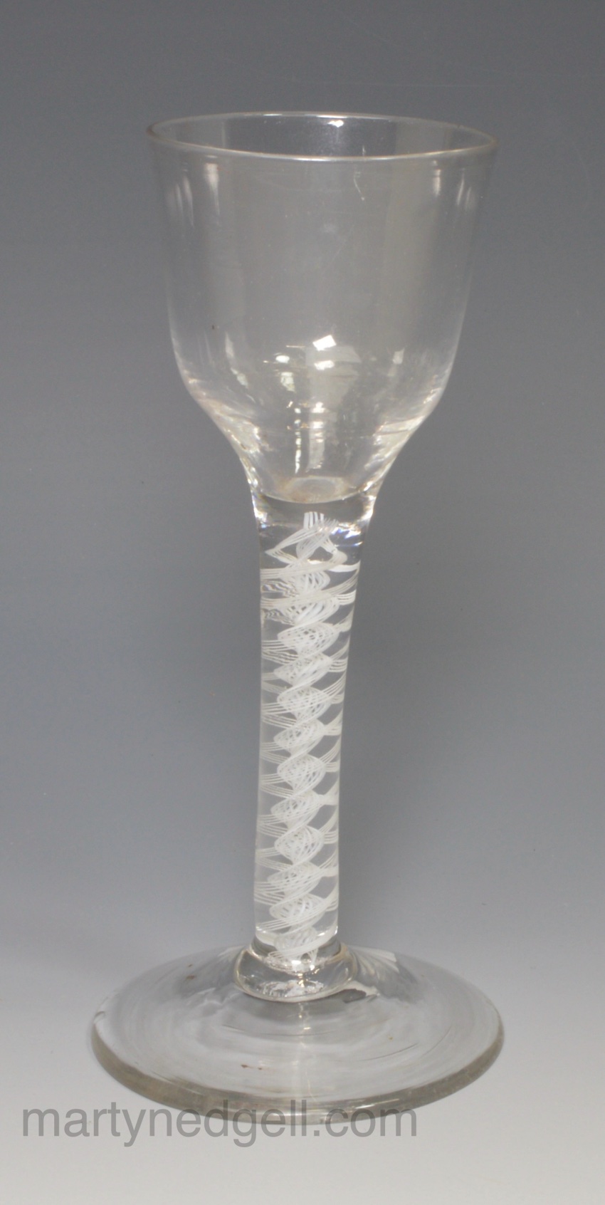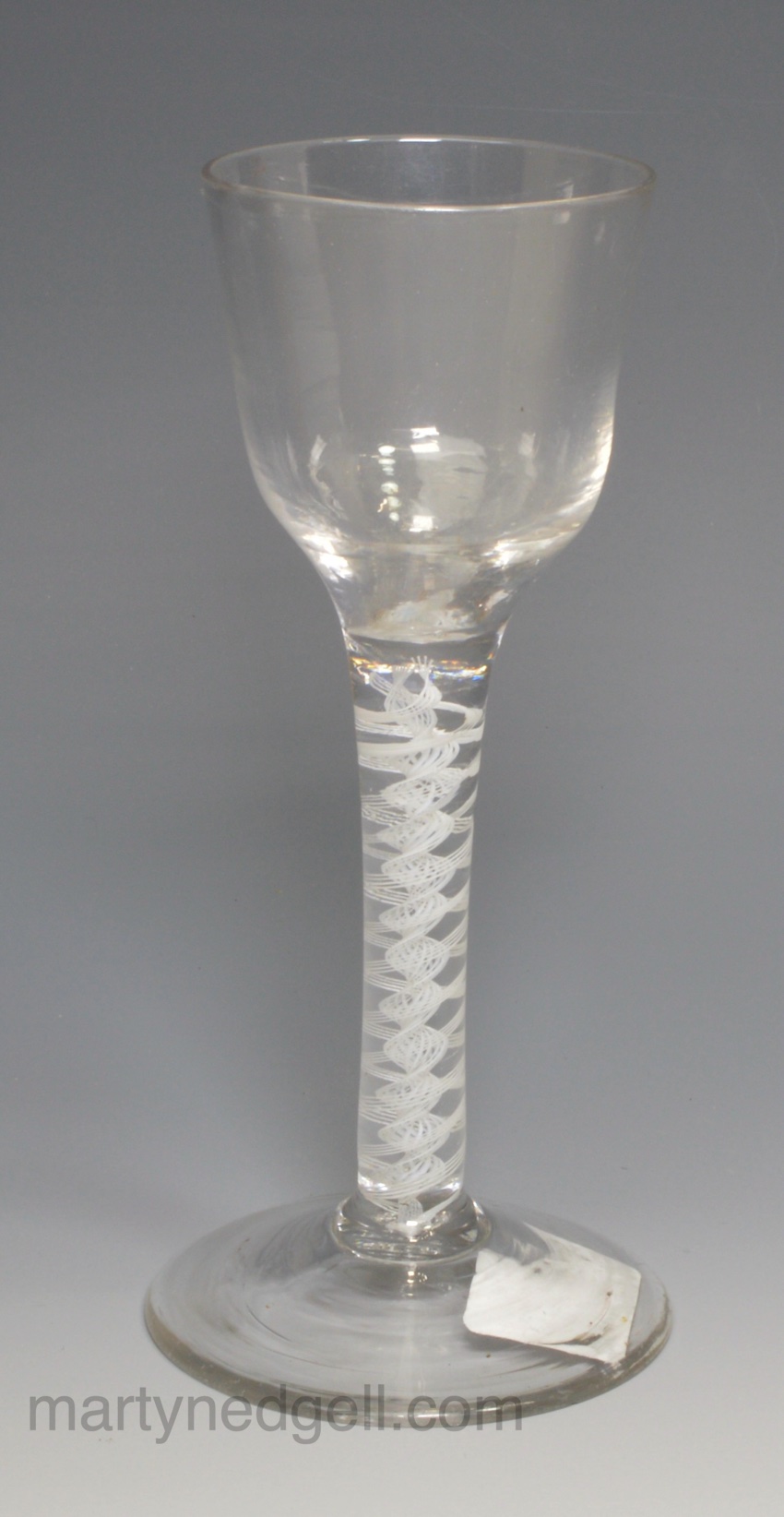 English wine glass with an opaque white spiral in the stem, circa 1780
