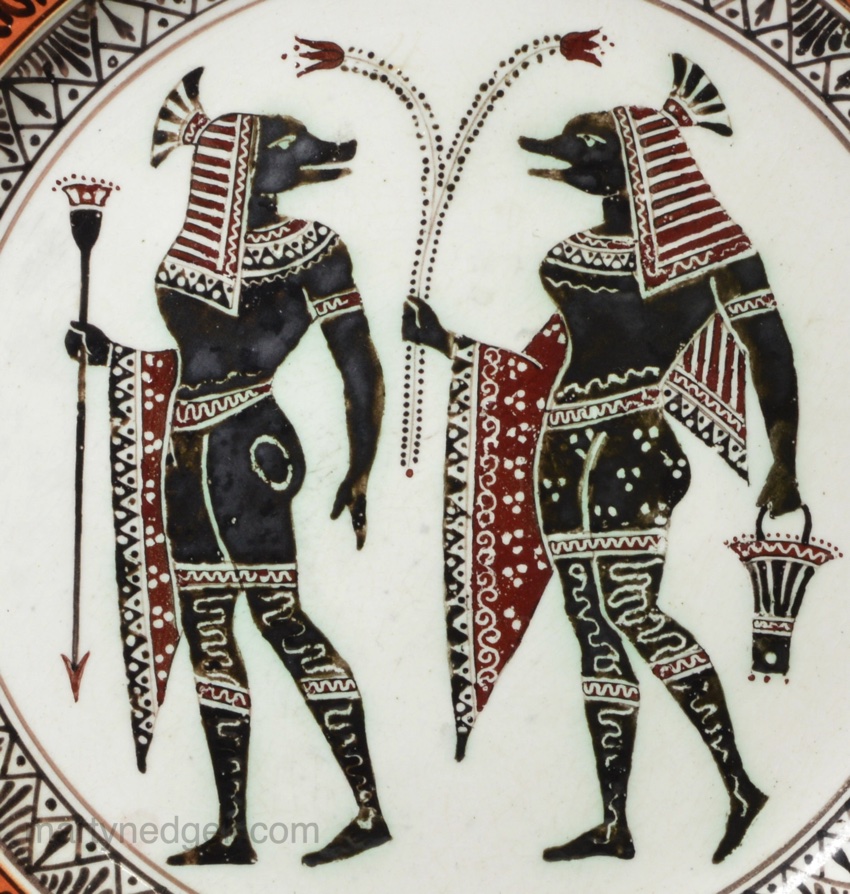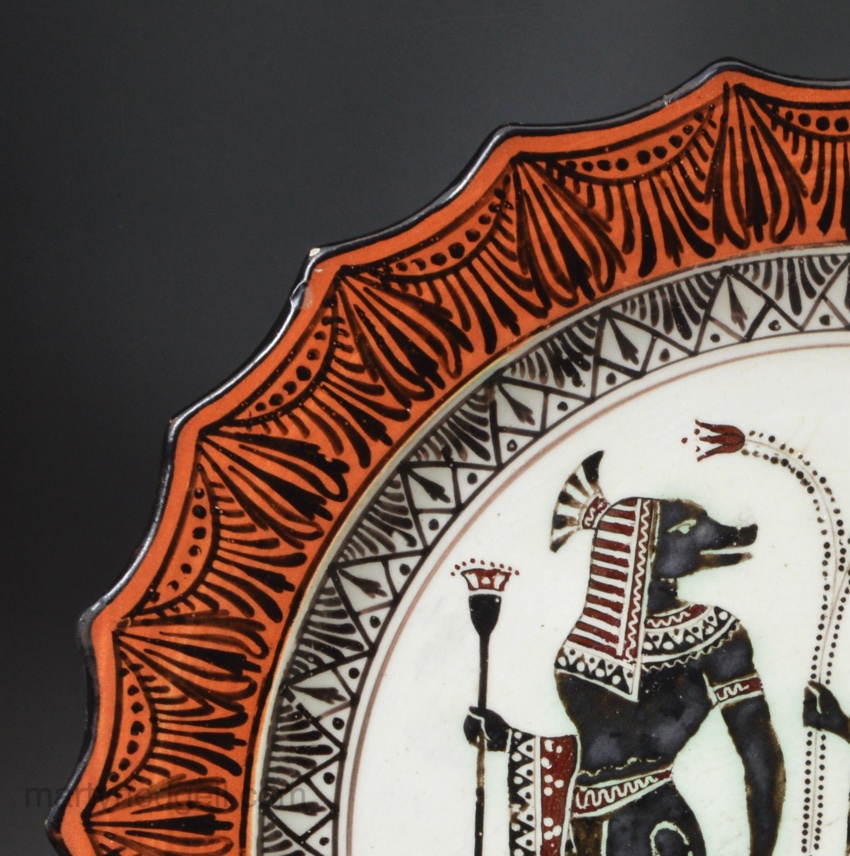 / Italian Gustiani Egyptian style decorated creamware pottery plate, circa 1880