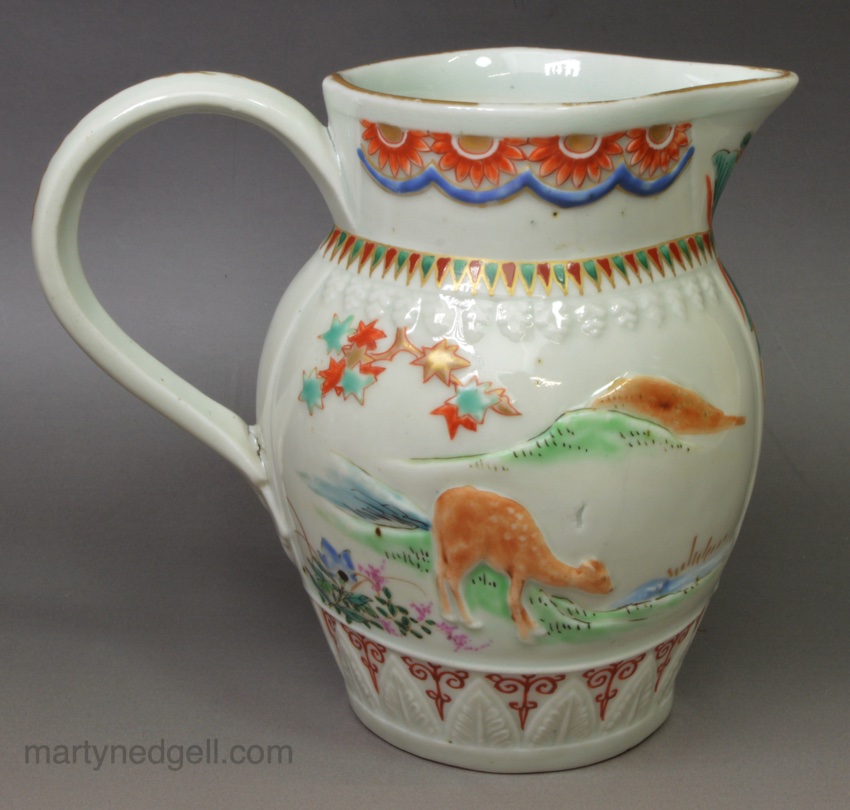 Japanese porcelain jug moulded in an English Prattware style, circa 1800