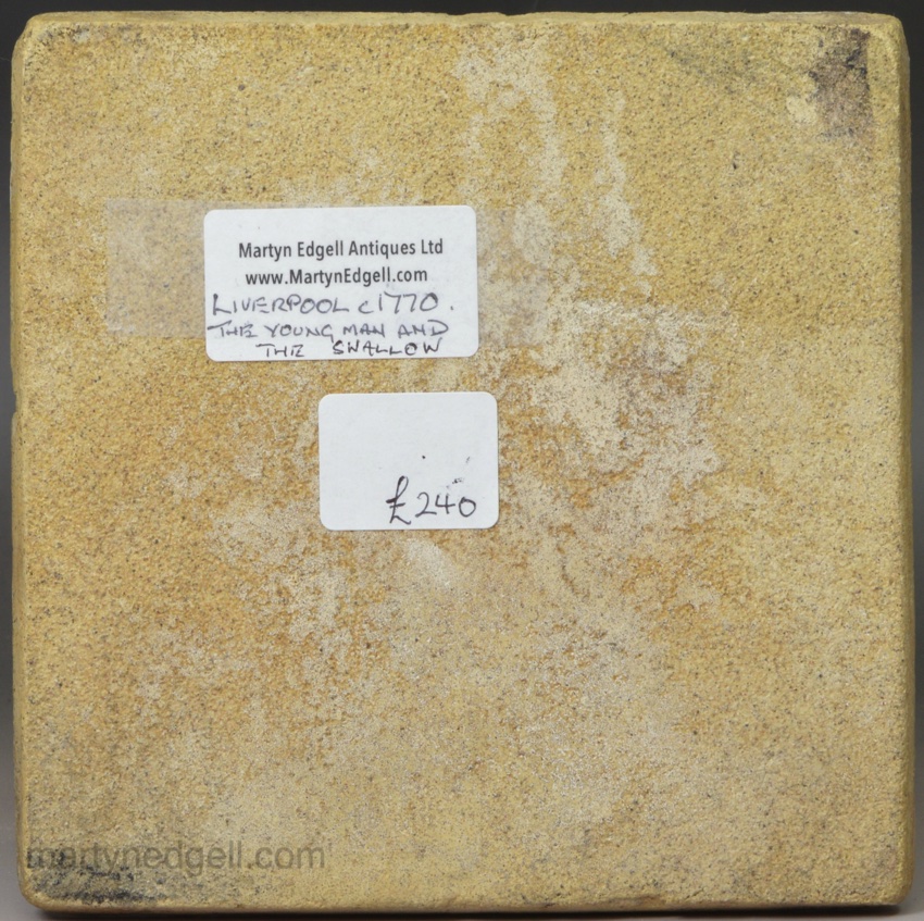 Liverpool delft Aesop’s Fable Sadler printed tile ‘The Young Man and the Swallow’, circa 1770