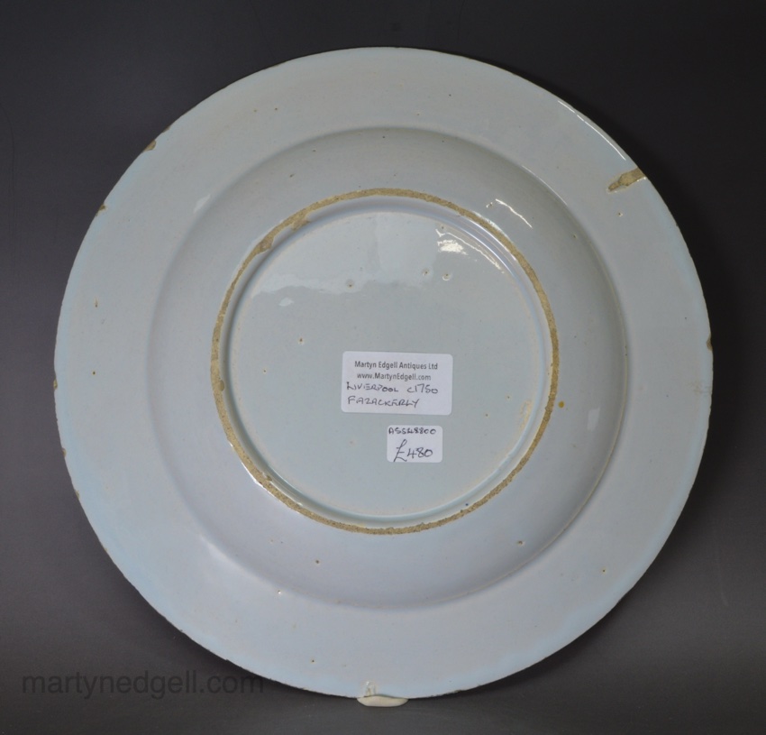 / Liverpool delft Fazackerly plate, circa 1750