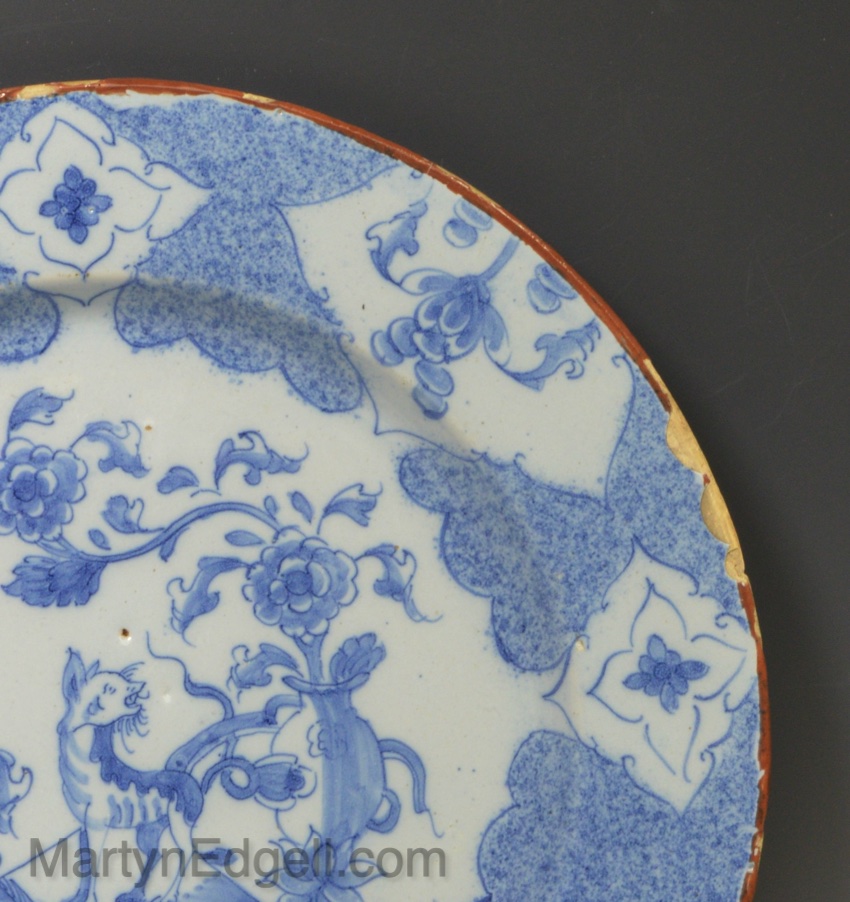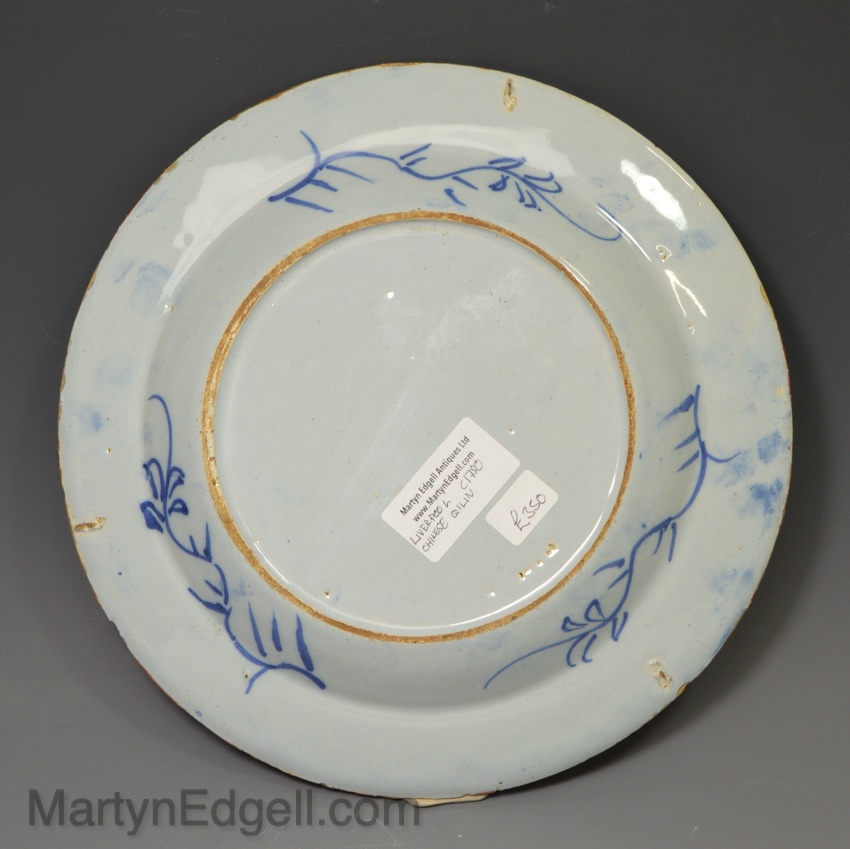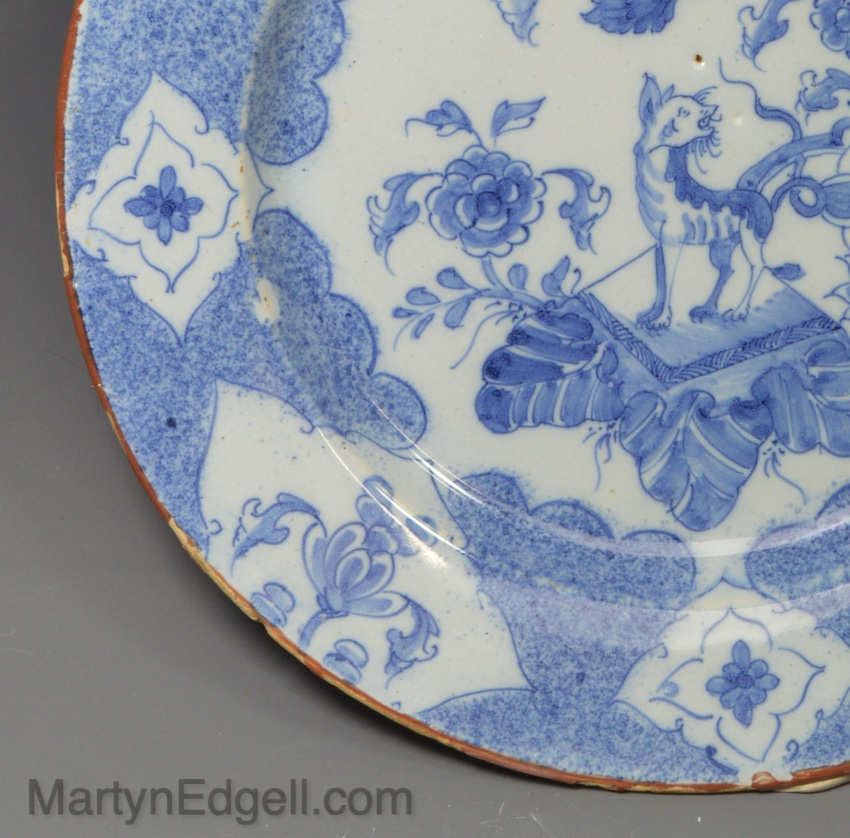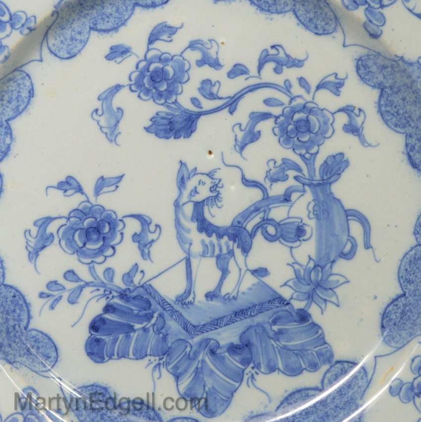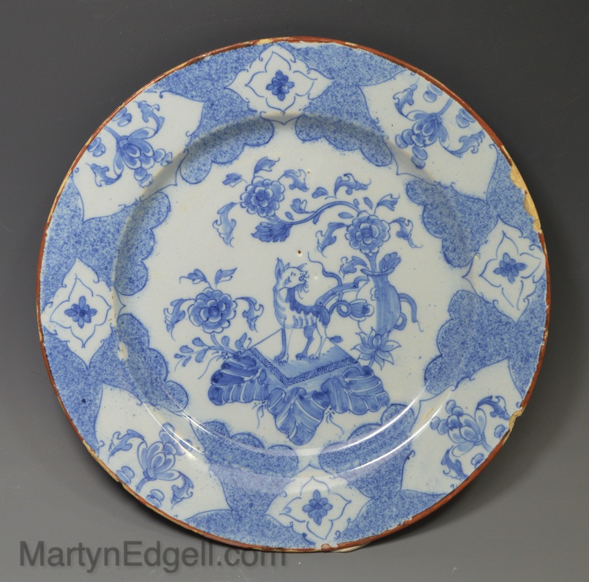 / Liverpool delft plate decorated with a Chinese Qilin, circa 1750