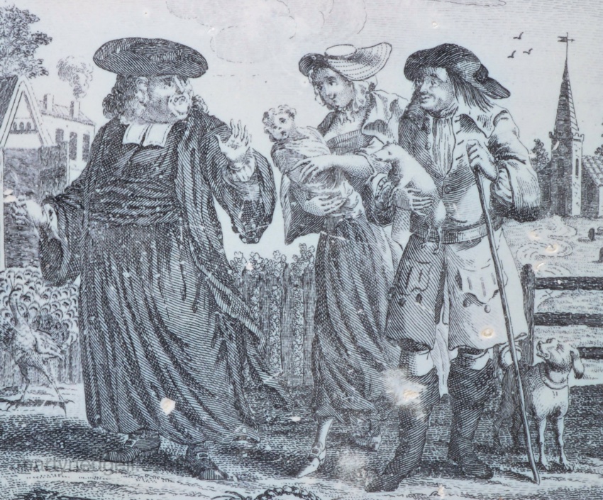 The Tythe Pig: The image shows a parson being prevented carrying off a piglet that has been selected for tithe payment by a farmer’s wife who insists that if the reverend is taking part of her flock then he must take one of her children, who she can presumably no longer afford to feed, as well.