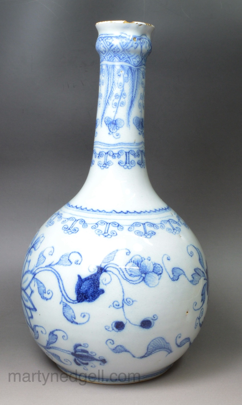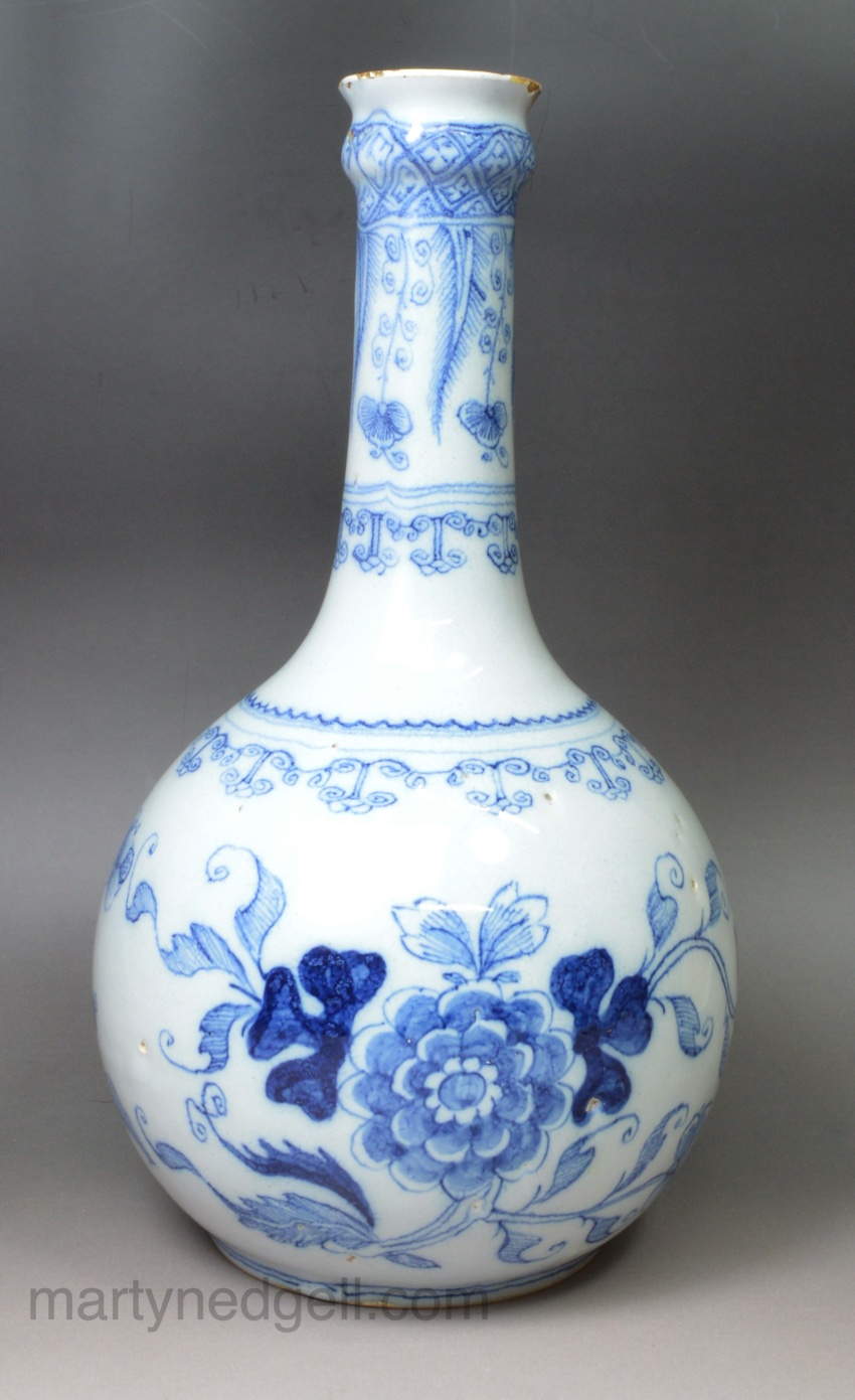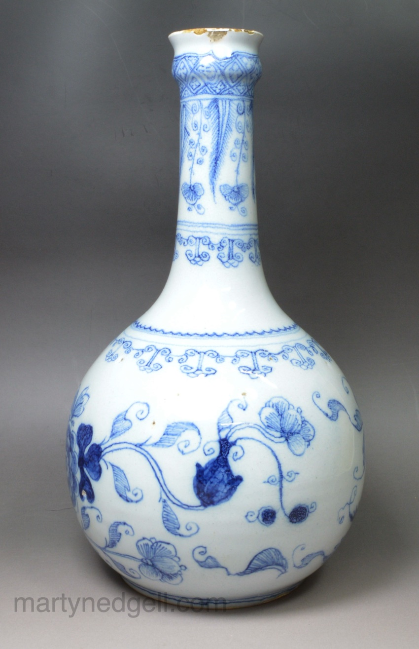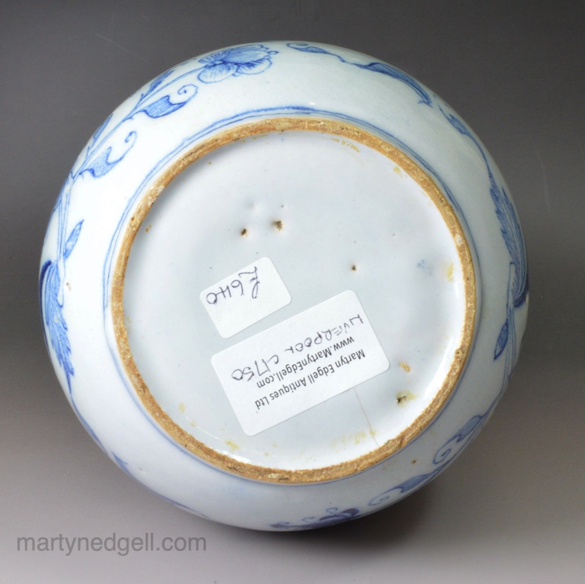 / Liverpool delft water bottle painted in blue, circa 1750