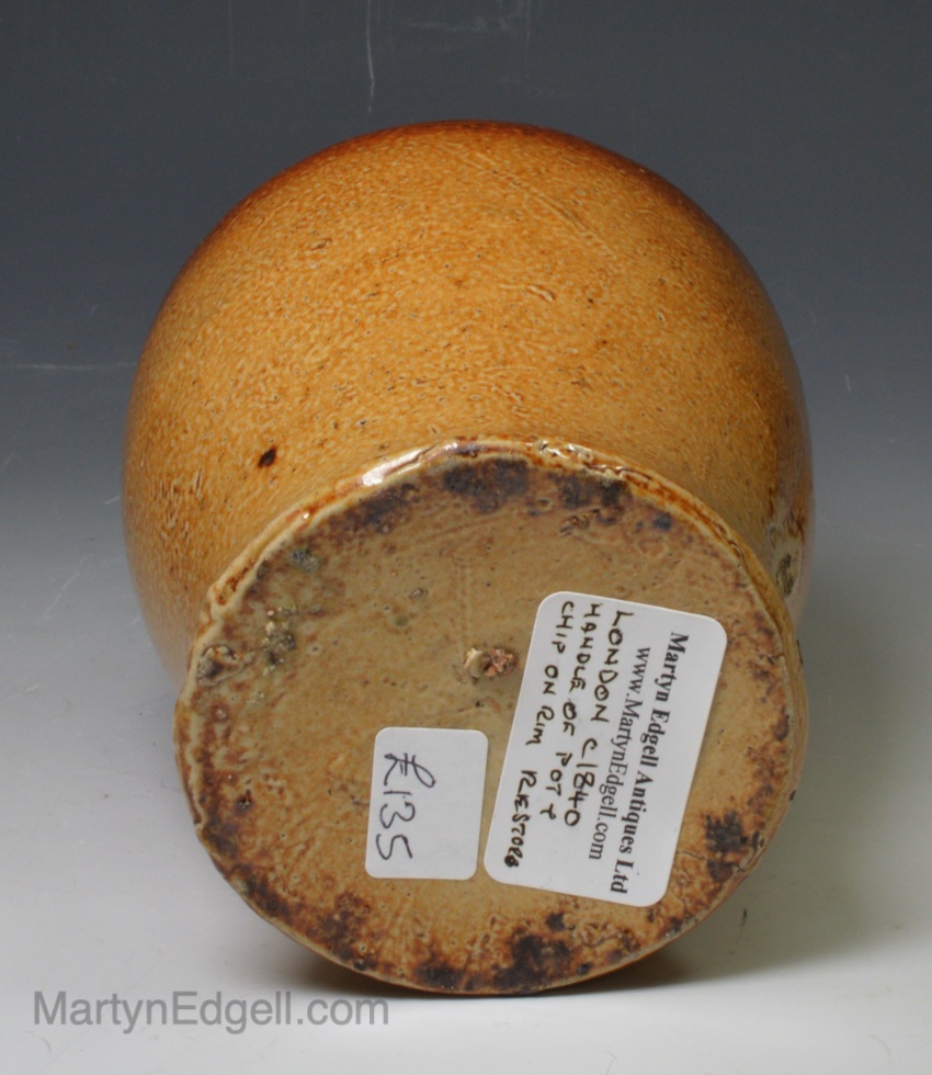 / London brown saltglaze stoneware money box, circa 1840
